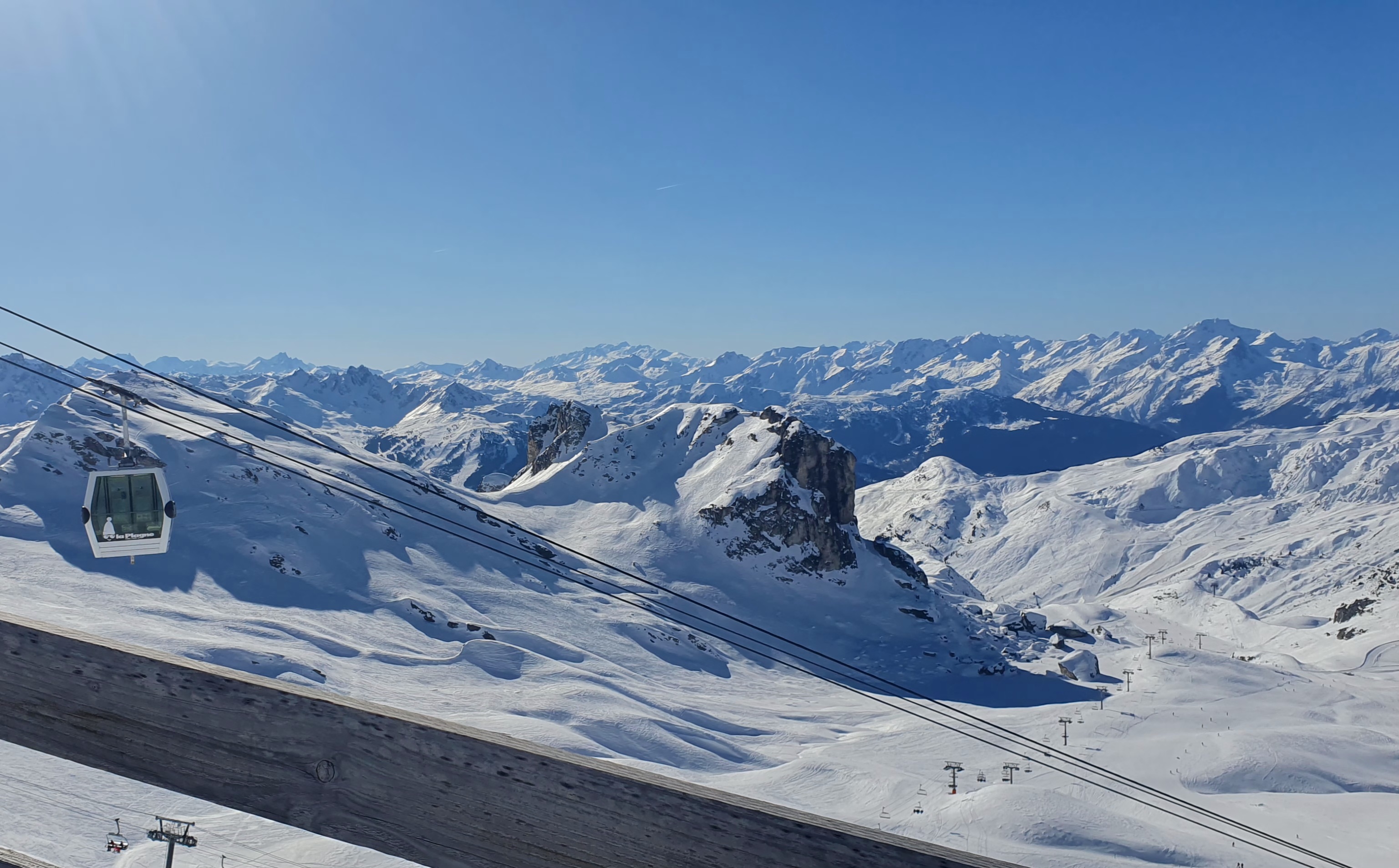 Magnifique panorama depuis le haut des télécabines, je suis impatient de revenir en été pour voir le même paysage sans neige également.