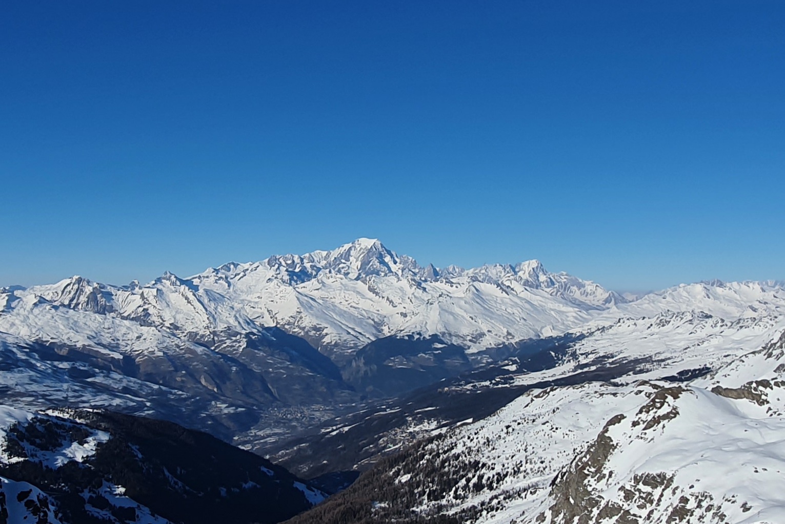 Paysage incroyable avec une vue imprenable sur les sommets de la Plagne mais aussi tout le parc de la Vanoise et le massif du Mont Blanc.