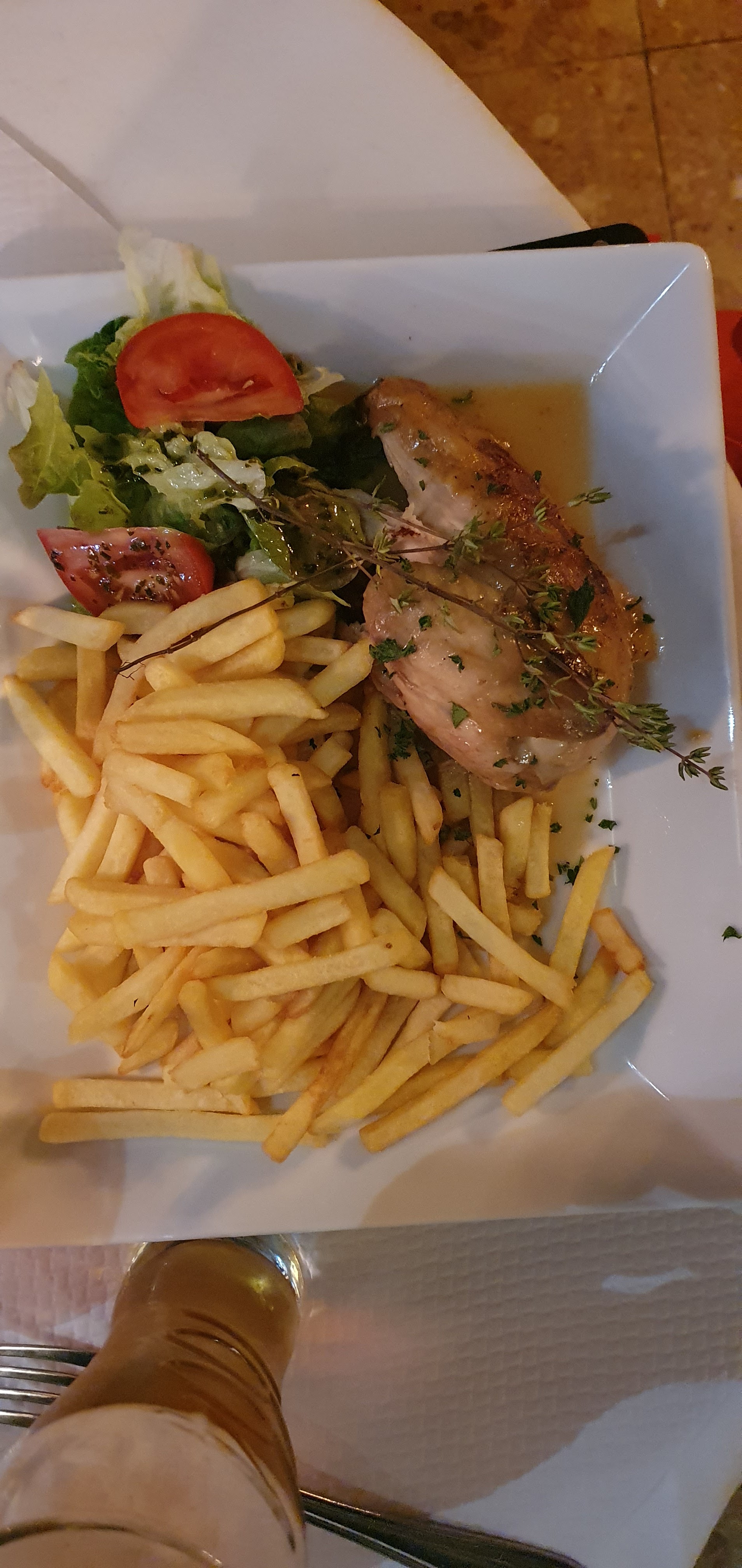 Pour un anniversaire, nous avons pris le menu (poulet thym et poisson du jour) et ce fut tout à fait satisfaisant ! En plus, l’ambiance est très agréable avec un bel intérieur typique de la région et un petit labyrinthe pour aller aux toilettes (bien indiqué pour autant !), c’est très amusant et charmant. J’ai aussi apprécié le service.
