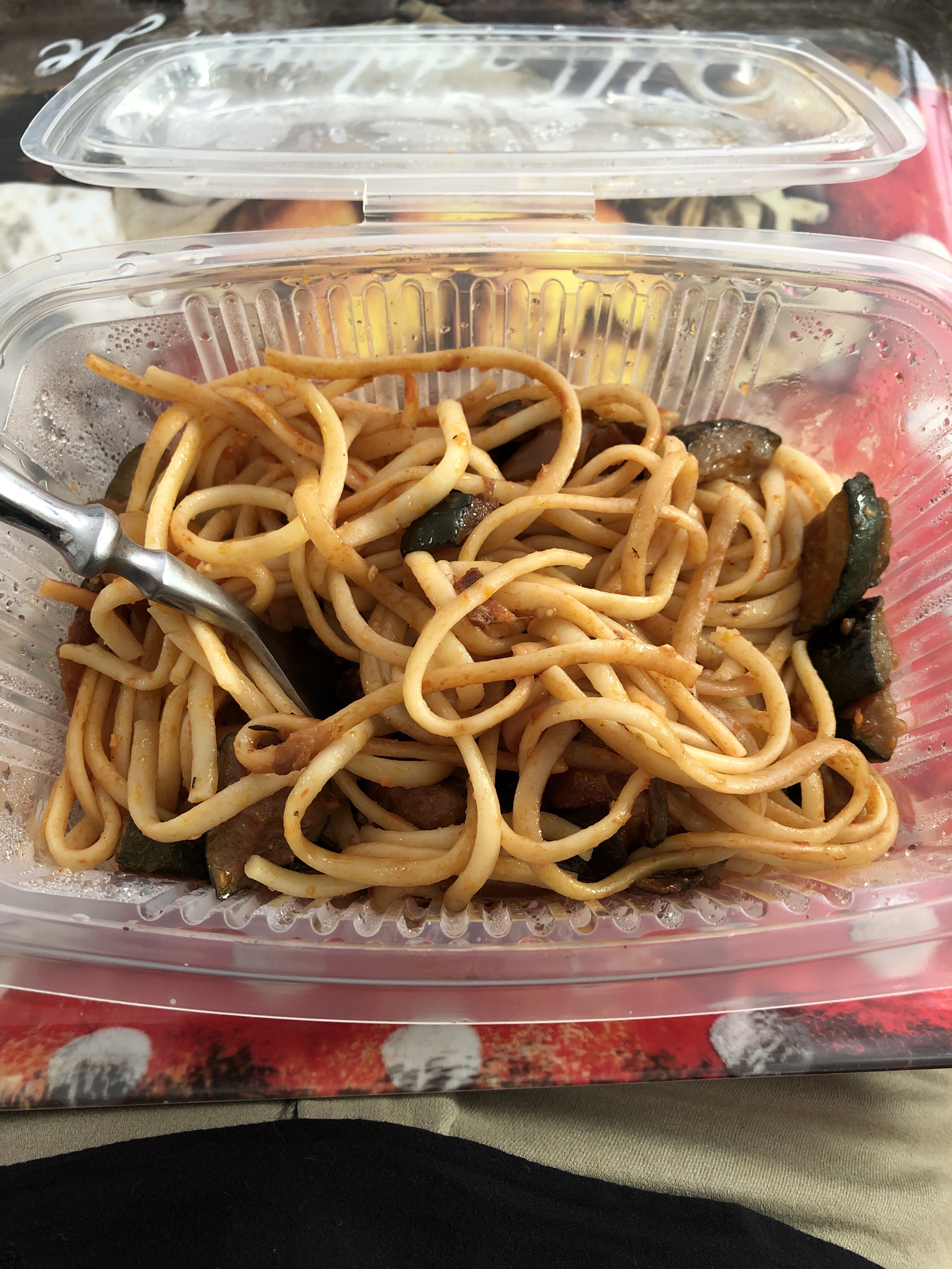 Un plat de pâtes aux légumes commandé à emporté, pâte baignant dans l huile sans le moindre goût, aucune saveur, quelques légumes aux gout inexistant. Le tout pour 14 euros.