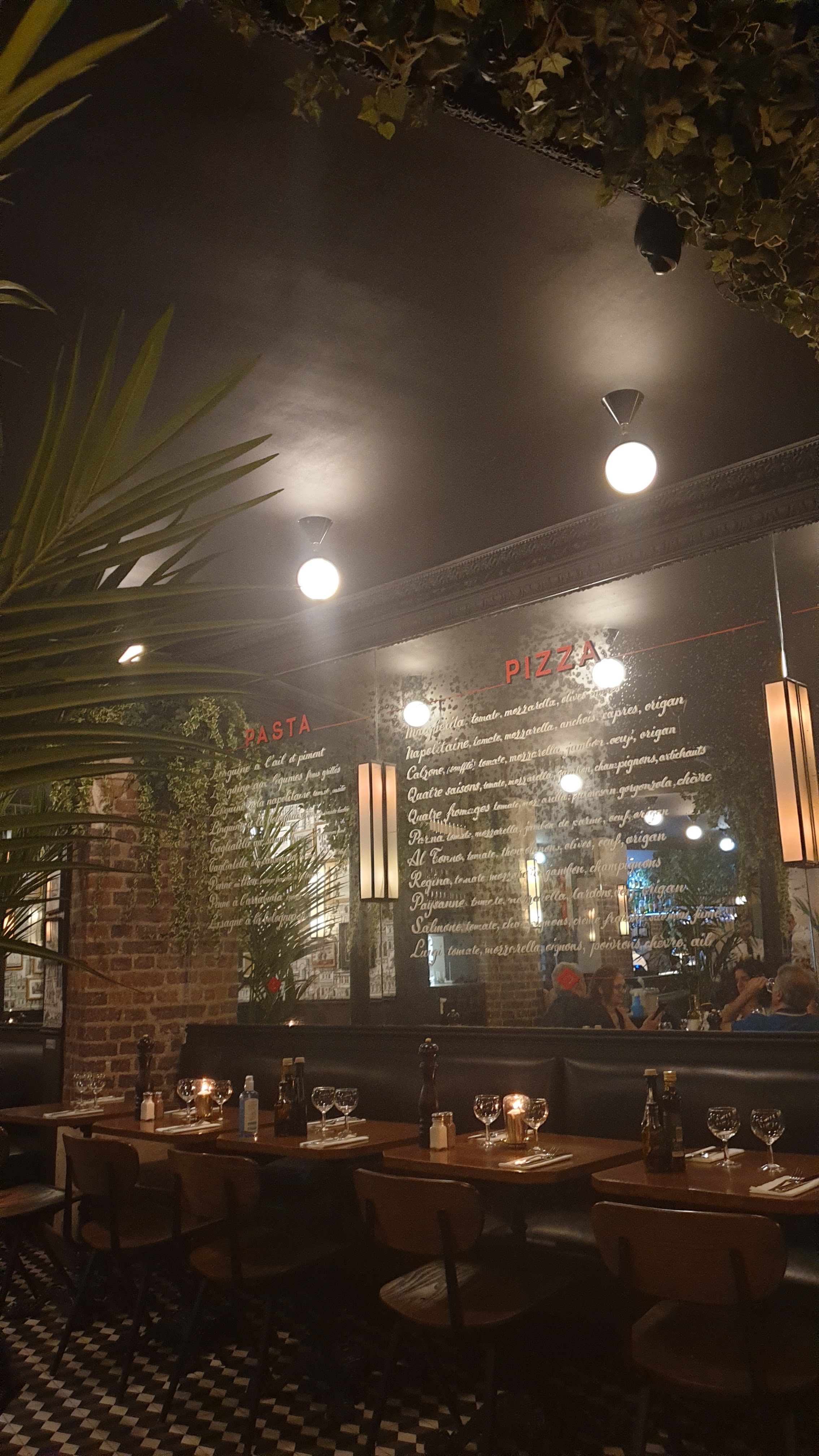 Pizza de quartier qui se prend ce qu'elle n'est pas. Que je paie 5-7EUR pour ma pizza à emporter qui n'est rien d'italienne, qui ne propose pas des produits de qualité, qui n'est pas une pâte italienne pas de soucis. Que je paie 17EUR pour la même chose et en plus d'une taille medium, on n'a même pas la joie de voir la pizza dépasser de l'assiette. On fait cuire le jambon de Parme (qu'on vient d'ailleurs disposé de manière vulgaire en 3 tranches pleine) sur la pizza. Pizza Palerma très grasse et huileuse. Une pâte de piètre qualité. Un service impersonnelle au possible. Seule l'ambiance feutré, un peu chic du restaurant est sympathique