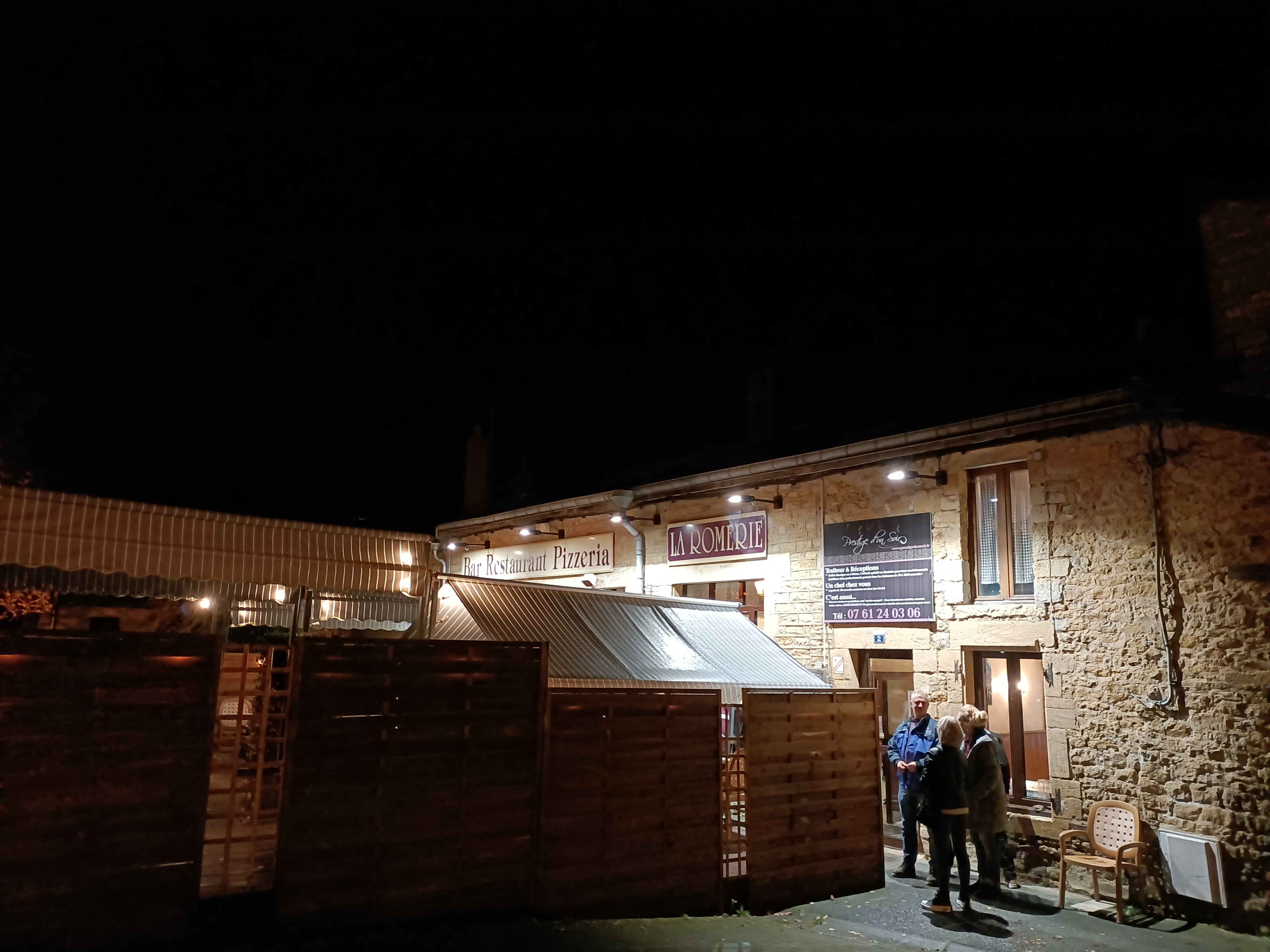 La Romerie impressionne à bien des égards. Les pizzas et les salades sont très bonnes. De même le vin de la maison. L'emplacement au pied de l'église est agréable et atmosphérique, surtout le soir. Le service est très attentionné, sympathique et rapide. Hautement recommandé. (Réservation conseillée)