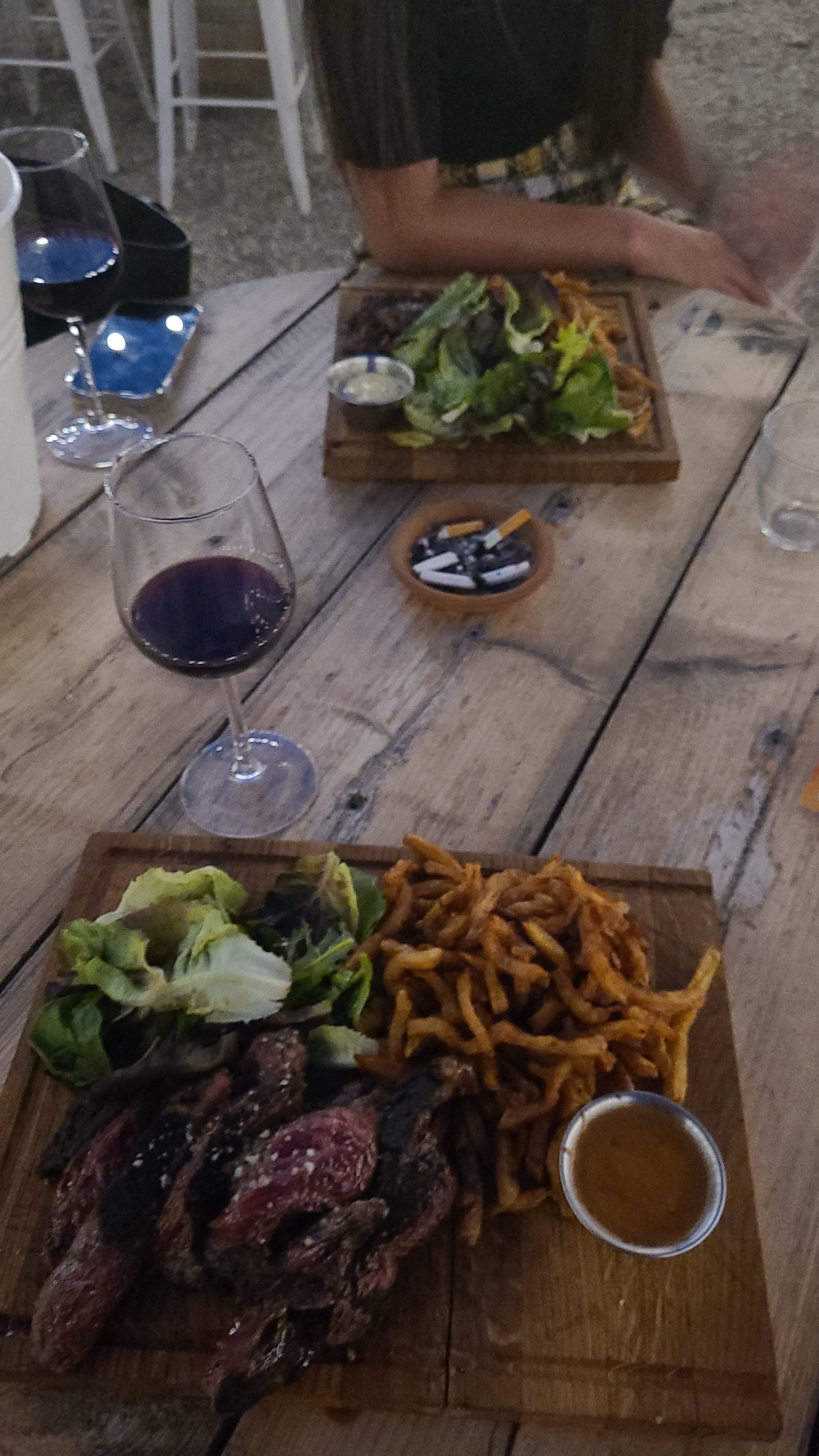 La réservation est conseillée, si vous n'êtes pas sûr du nombre de personnes, réserver plutôt à la hausse pour être sûr d'avoir des places et des chaises pour tous le monde . Nous avons réservé pour 4 et trois amis nous ont rejoint ce qui fait 7 au final. le gérant est sympathique et disponible. Pour ce qui est du repas: ma viande était un peu trop salée , les frites faites maison 👍 excellent vin rouge 🍷 cépage Syrah Grenache. Cadre et ambiance agréable