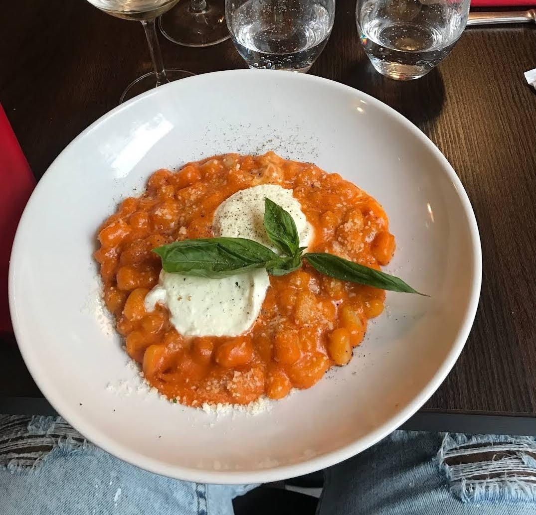 Un bon petit restaurant italien, la carte n'offre pas un vaste choix mais on se dit que les plats proposés sont du coup préparés avec plus de soins... Nous avons partagé une planche d'antispasti qui était très copieus : légumes grillés (champignons, courgettes, poivrons, tomates, artichauts), des formages (parmesan, mozzarella au lait de bufflone) et de la charcuterie (jambon de parme, saucisson et mortadelle). Nous avons continué avec des plats de pâtes et des risotti du jour qui étaient également bons. Pour finir nous avons testé le Favoloso du chef une crème fouettée à la pistache avec de la meringue et le café gourmand. J'étais ravie de mon Favoloso, mes amis un peu mois du café gourmand qui proposait une tarte au citron et des biscuits italiens. Côté service, de vrais italiens aux commandes, ils sont tous très agréables et nous avons beaucoup apprécié que le chef aille voir l'ensemble des tables à la fin du repas pour avoir les avis. Juste un bémol côté décoration, les roses séchées pendues à l'envers par la tige font un peu halloween... Pour les prix, c'est pas donné mais on peut alléger l'addition en réservant avec la fourchette.
