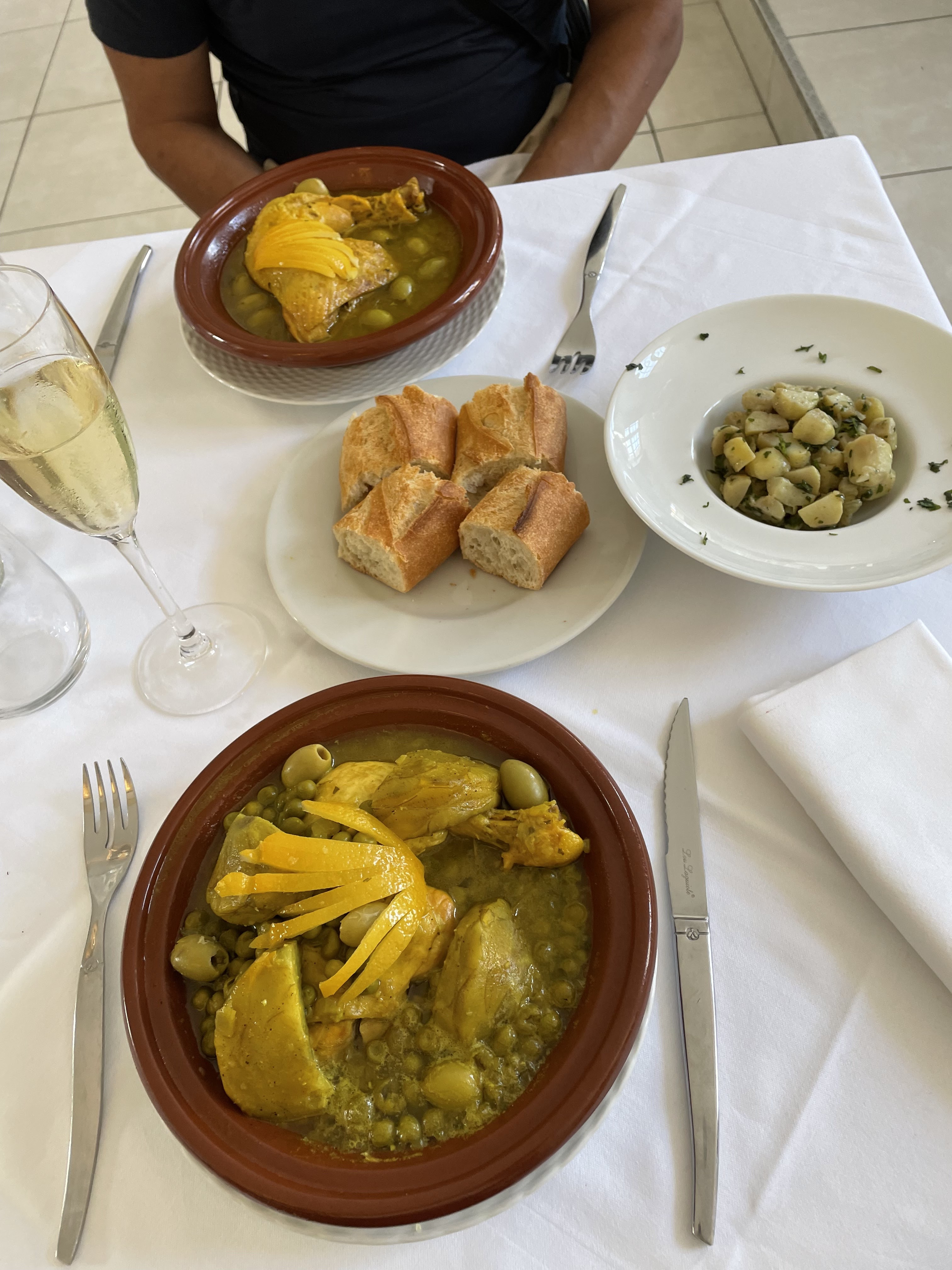 Repas à 5 sur réservation à notre arrivée accueil immédiat par la serveuse avec une courtoisie des plus agréables pour ce qui est du repas un moment de plaisir total pour nos papille avec un vin marocain qui passe comme une lettre à la poste. Un rapport qualité prix des plus acceptable en content revenir prochainement essayé d autre plat qui j espère nous ferons voyager par leurs goût tout autant....