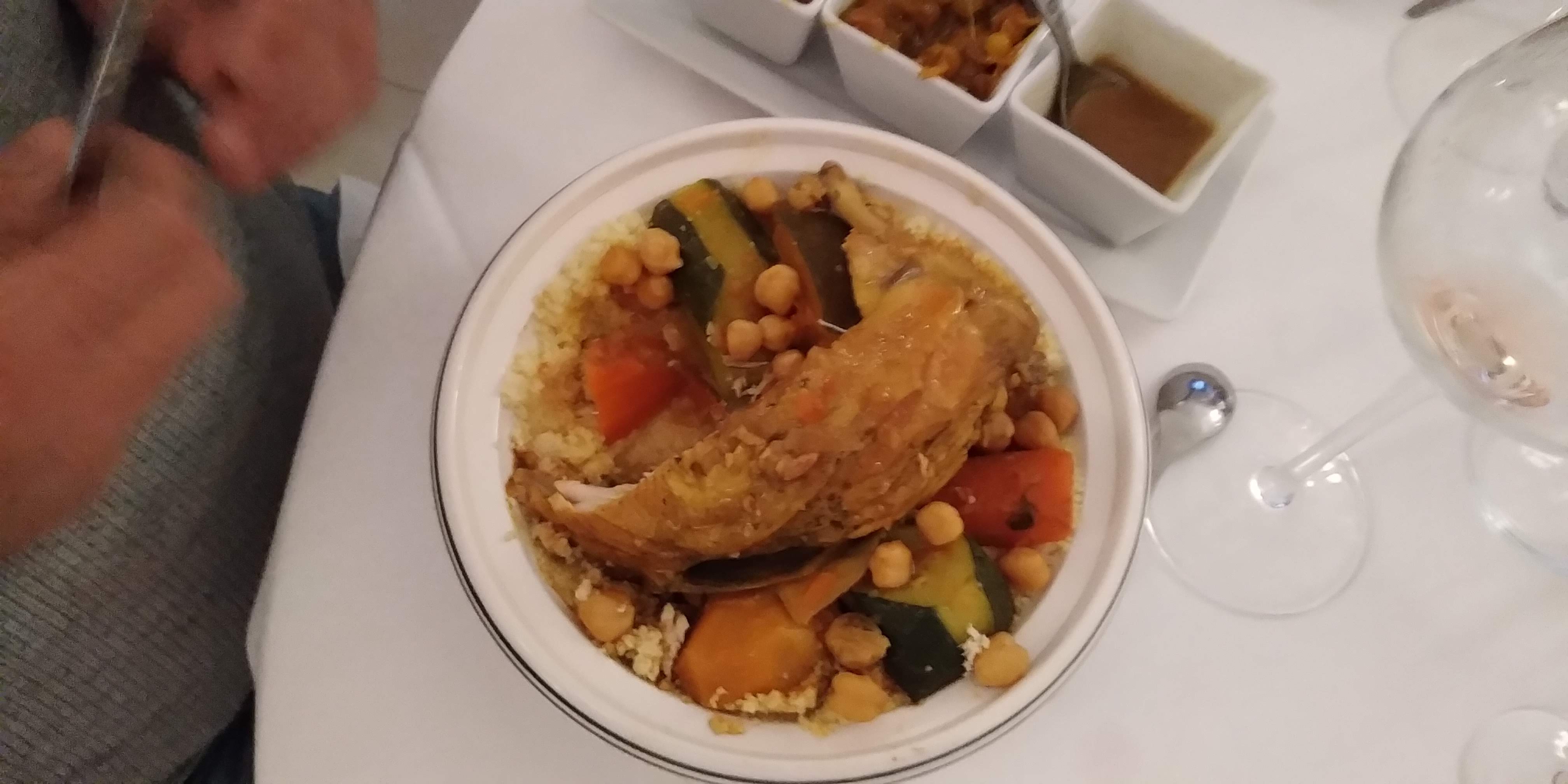 Très belle découverte culinaire , déjeuner en semaine , menu du midi de très bon rapport qualité prix. Couscous succulent ainsi que le thé à la menthe et les desserts . Service très agréable. Nous reviendrons.
