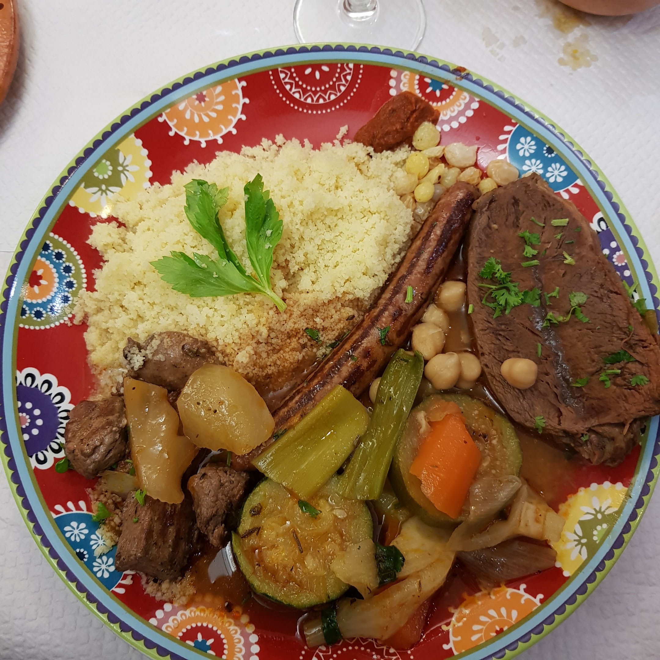 Nous sommes allés dans ce restaurant très bien noté. Très déçue le couscous était très fade pas de goût d épices.impression de manger un plat avec le goût d eau. La viande pas terrible bas de gamme. Par contre nous avons aimé les pâtisseries et le thé ainsi que la gentillesse du patron. Mais nous ne reviendrons pas j ai été très déçue moi qui me régalait à l avance. Toute ma famille n a pas pas aimé.