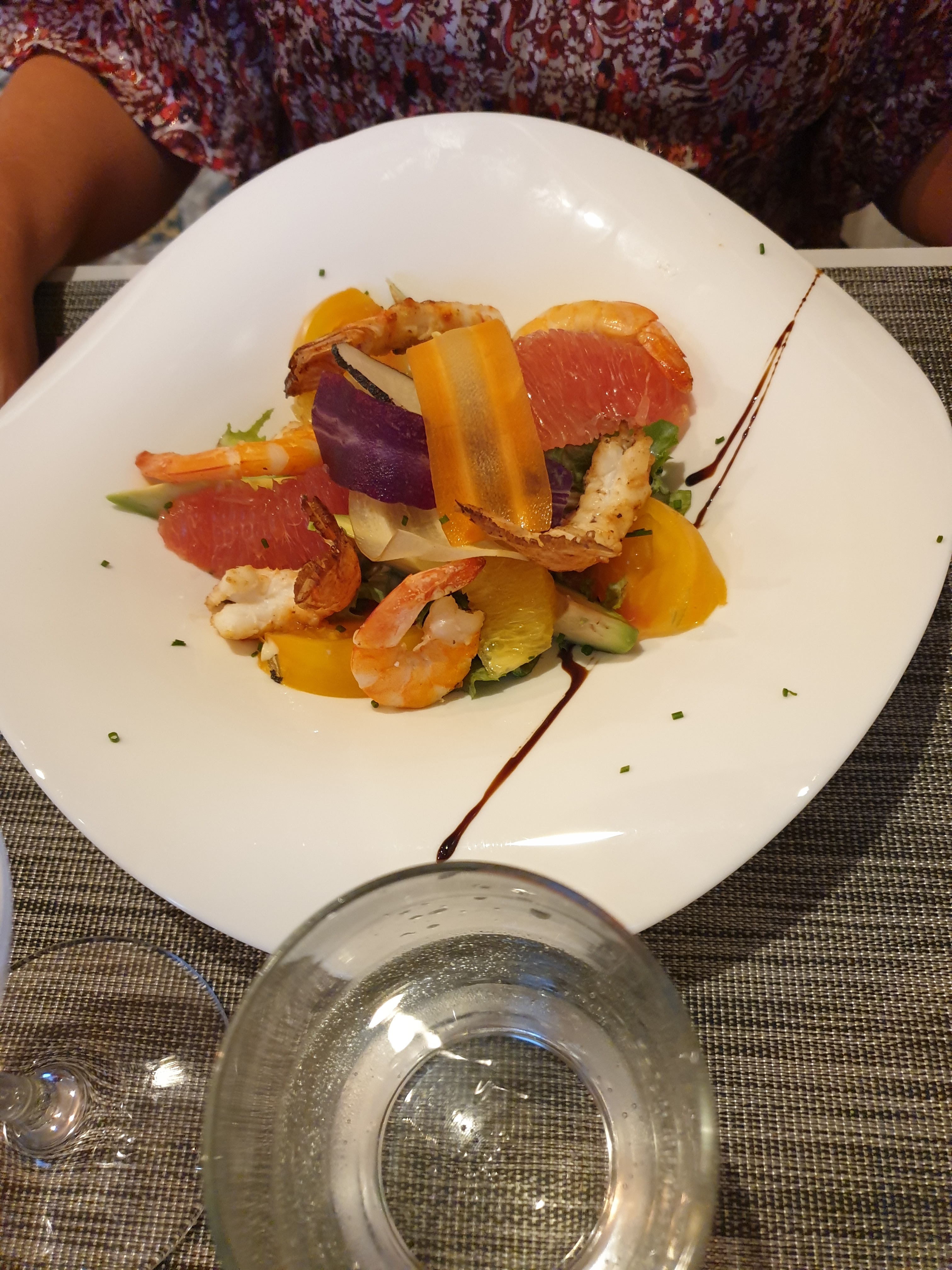 Nous avons pris un menus à choix multiples ; salade de langoustines aux agrumes, choucroute de la mer. Un régal depuis mon séjour à Ouistreham, c'est le meilleur !
