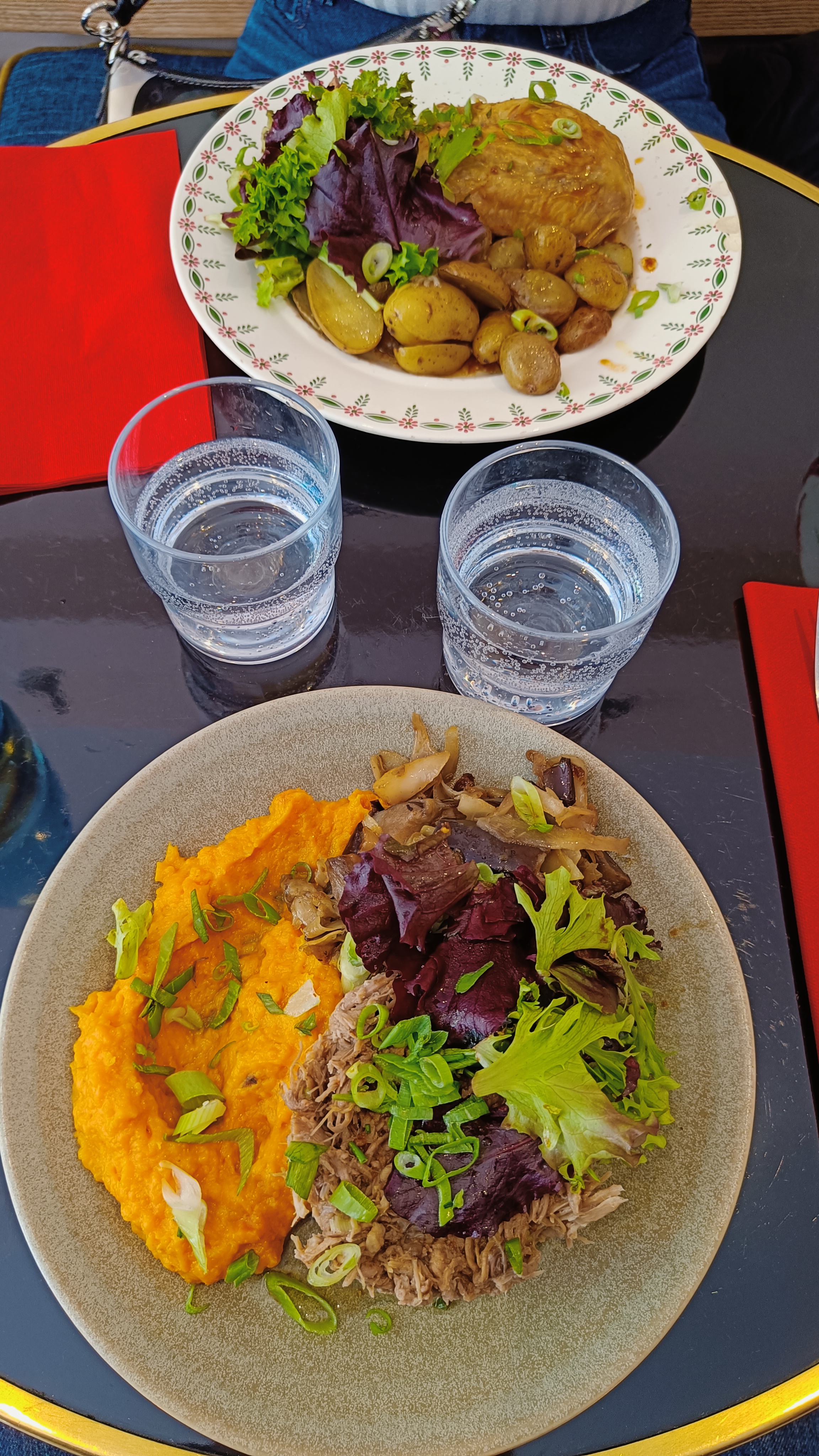 Belle découverte ! L'épaule d'agneau confite était tendre, cuisinée aux épices servie avec une purée butternut au gingembre, des butternut rôties et des chanterelles (pas sûre!) qui pour le coup étaient un chouïa salées mais l'agneau a pris le dessus. En entrée, on a pris les rillettes de cochon, un régal ! Avec les petits oignons frits et oignons crus assaisonnés, un délice.