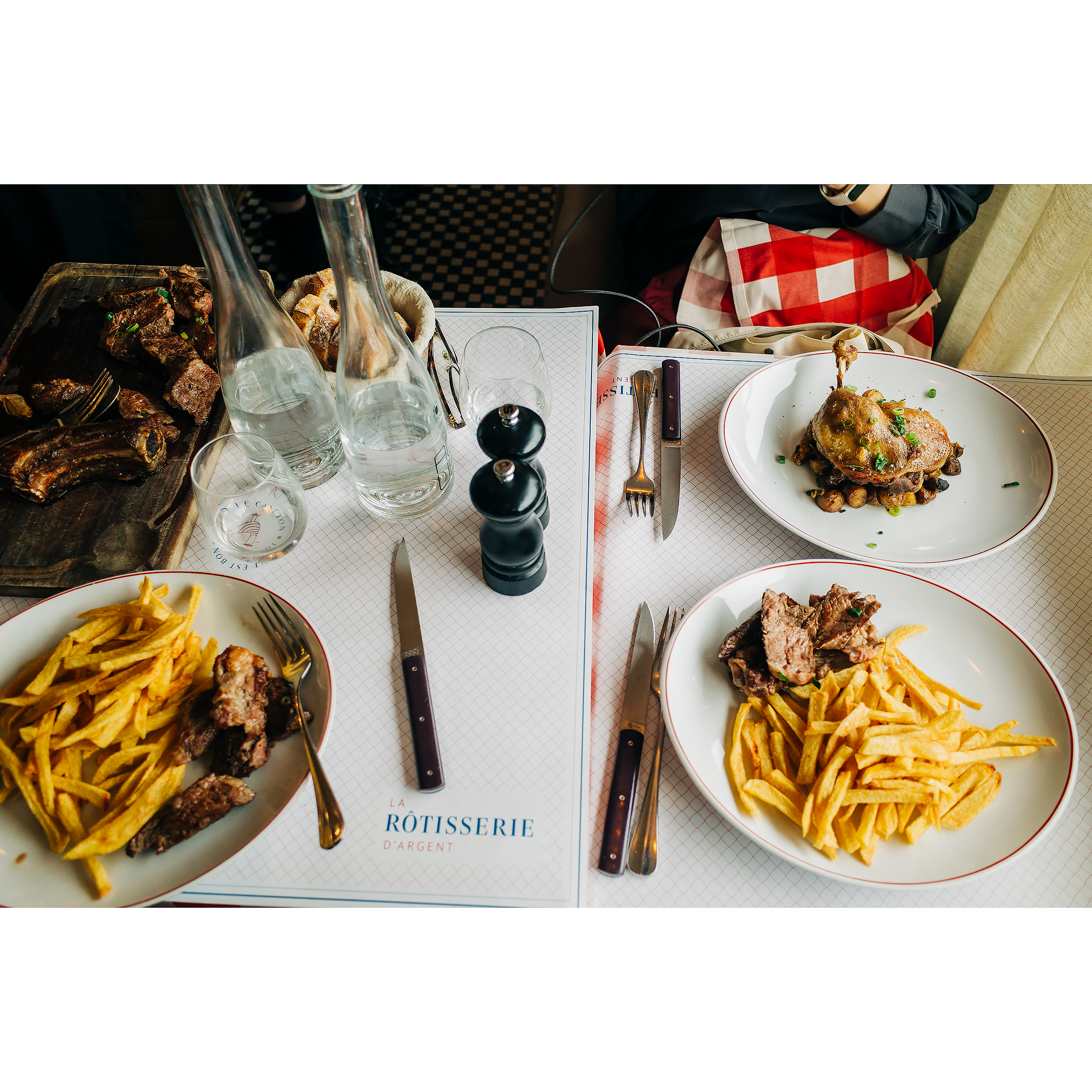 Mon fiancé et moi avons choisi La Rôtisserie d’Argent pour célébrer nos fiançailles et l’expérience n’aurait pas pu se dérouler mieux. C'était aussi ma première fois en France. Tout d'abord, nous étions en retard et ils ont quand même honoré notre réservation et nous ont assis juste à côté de l'endroit où se trouvent les cuisiniers, nous avons donc pu regarder la nourriture préparée, ce qui était vraiment cool. Après avoir reçu nos entrées et notre champagne, ils nous ont proposé de nous asseoir à une table plus intime et calme dans le coin près de la fenêtre car ils savaient que nous célébrions nos fiançailles. Nous avons mangé une côte de bœuf avec des frites et laissez-moi vous dire que les frites en France sont des frites américaines hors de l'eau. Le personnel était sympathique et le service était superbe. La côte de bœuf était énorme et cuite à la perfection également. Je n’aurais pas pu rêver d’une meilleure expérience avec ma première cuisine gastronomique à Paris. Je recommande ce restaurant aussi bien pour les dîners décontractés que pour les occasions spéciales. Ils ont également été très patients avec nous sachant que nous ne parlions pas bien français. 5 étoiles sur 5. Bien joué!