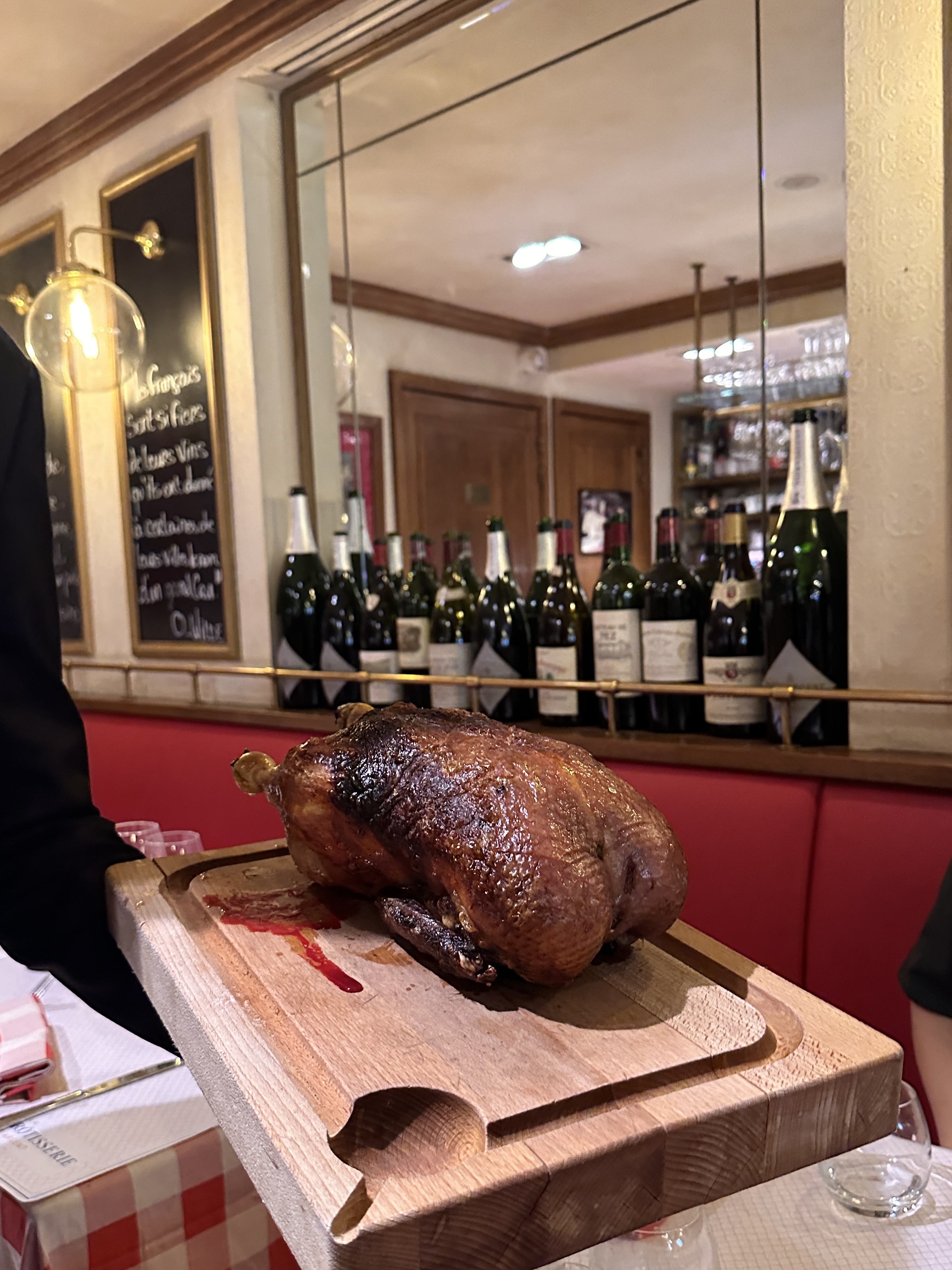 Mon restaurant préféré pour manger du canard à Paris. Le canard rôti en deux services est une signature incontournable de cet établissement. Hocine, Anton et Oualid, les serveurs, sont très professionnels et chaleureux. On nous a gracieusement offert un délicieux cocktail de la maison et je recommande vivement leur mousse au chocolat pour terminer le repas en beauté.