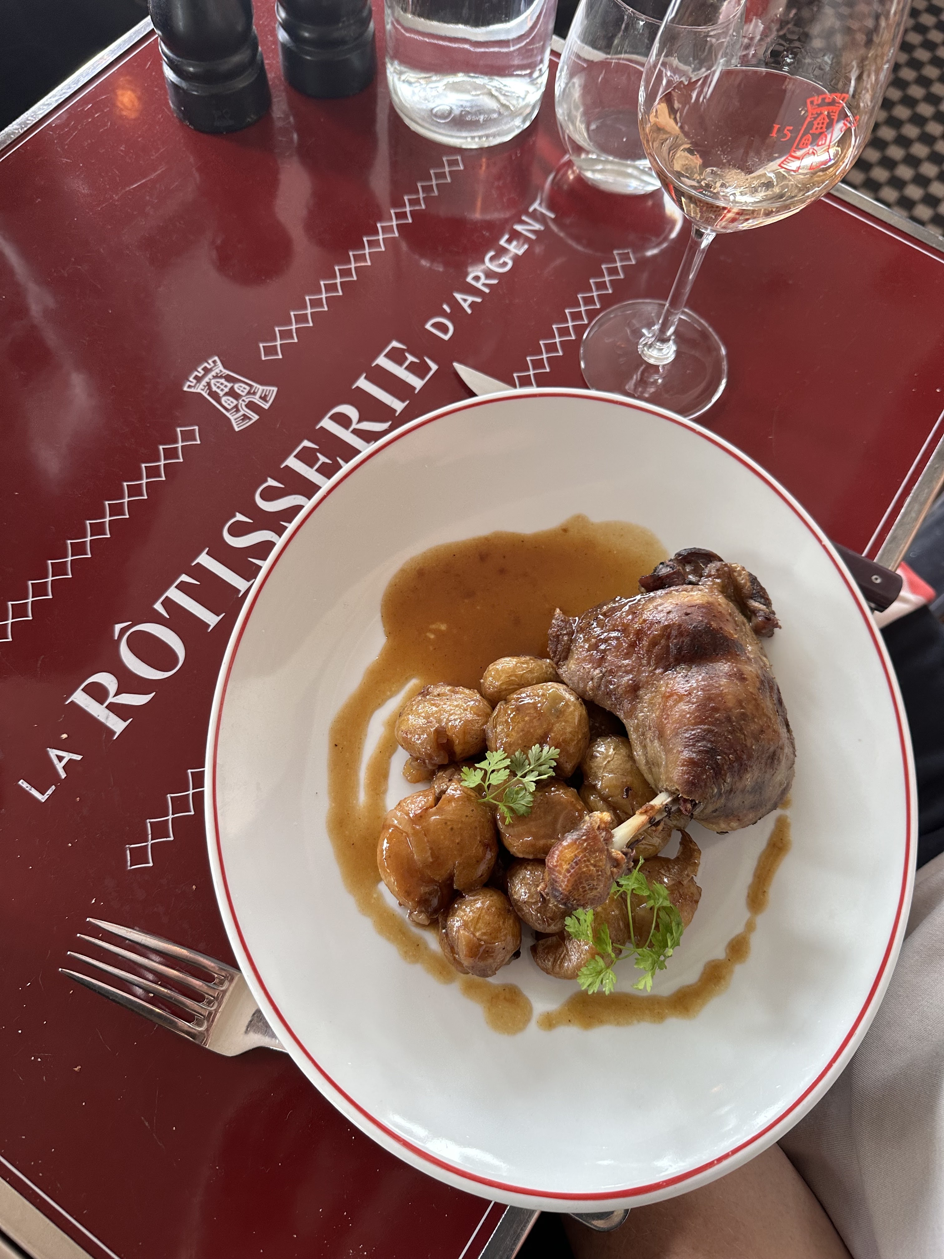 Nous avons adoré notre expérience culinaire en plein air à la Rôtisserie Tour D’Argent. Le service était merveilleux et le canard était inoubliable.