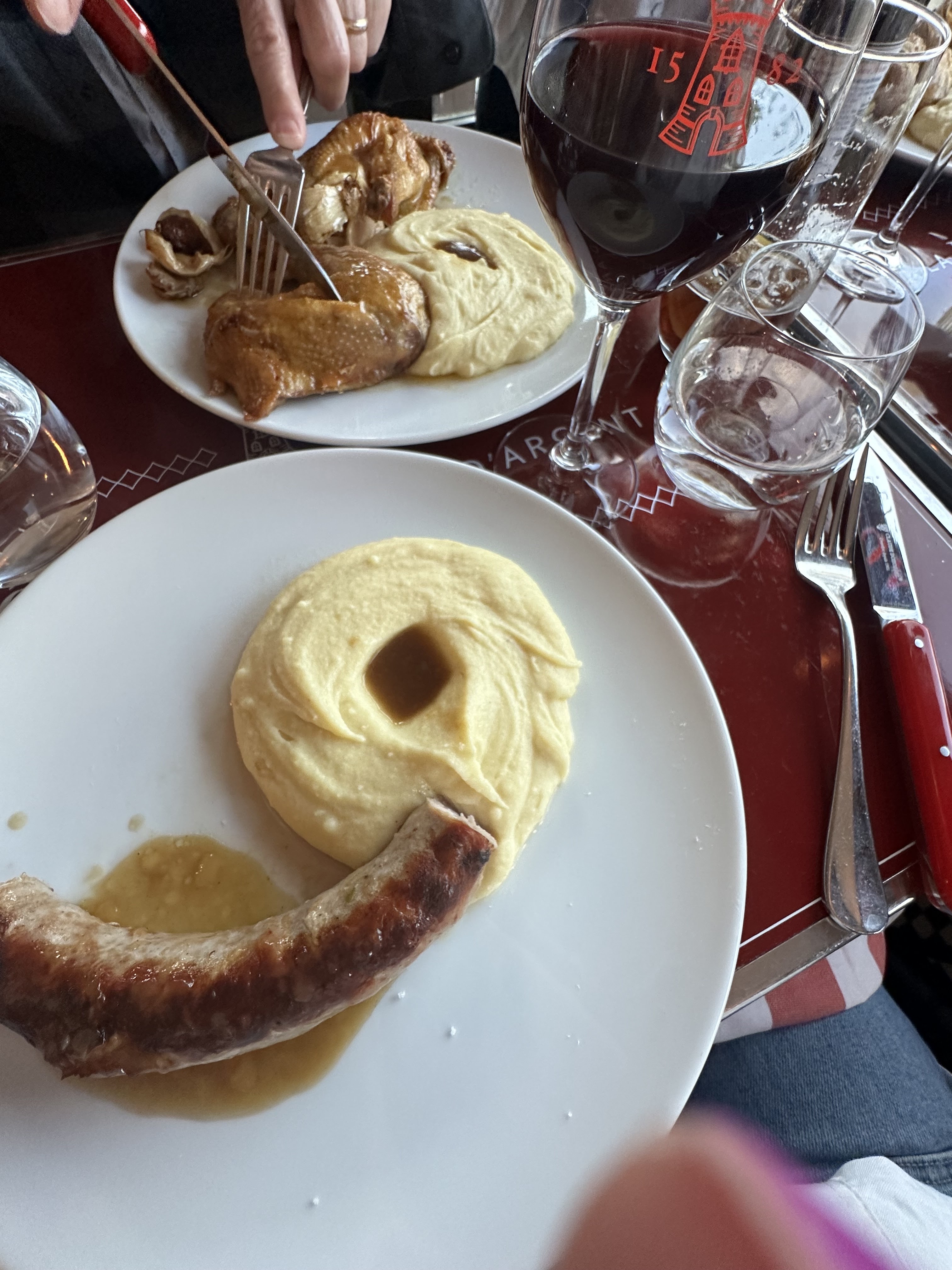 Le meilleur poulet rôti que nous ayons jamais mangé de toute notre vie ! La sauce qui l'accompagne est divine et la purée de pommes de terre se marie parfaitement. Un incontournable si vous êtes à Paris !