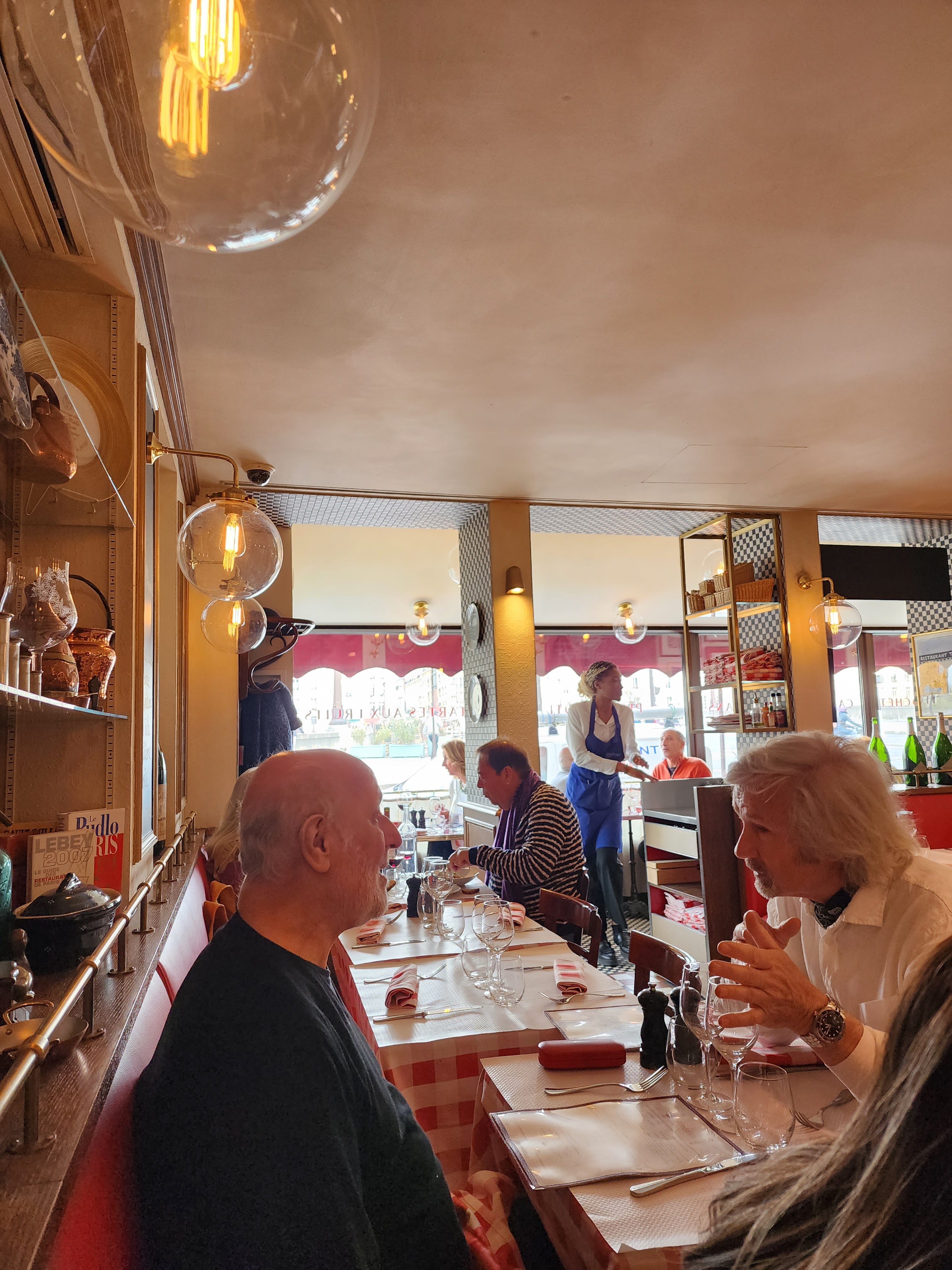 La nourriture était bonne mais pas exceptionnelle par rapport aux autres bistrots où nous avons mangé. Les portions sont beaucoup plus grandes que nécessaire, ce qui peut paraître bien, mais nous avons eu le sentiment de gaspiller de la nourriture ou de trop manger - cela semblait inhabituel pour un restaurant français. Ce qui a gâché le repas, c'est que le serveur a insisté à la fin sur le fait que le pourboire n'était pas inclus, alors qu'il était clairement indiqué sur le menu. En supposant qu'ils l'aient fait parce que nous ne parlions pas français. J'ai dit que j'avais compris que le pourboire était inclus et il a insisté sur le non, puis a ajouté lui-même 20% à la facture et a utilisé ma carte. C'était comme une arnaque touristique. Nous avons apprécié d'autres bistros et plusieurs restaurants étoilés Michelin proposant tous une meilleure nourriture et un meilleur service. Intéressant d'aller manger dans un restaurant historique mais ça n'en vaut pas la peine. Nous avions l'impression d'avoir été arnaqués.