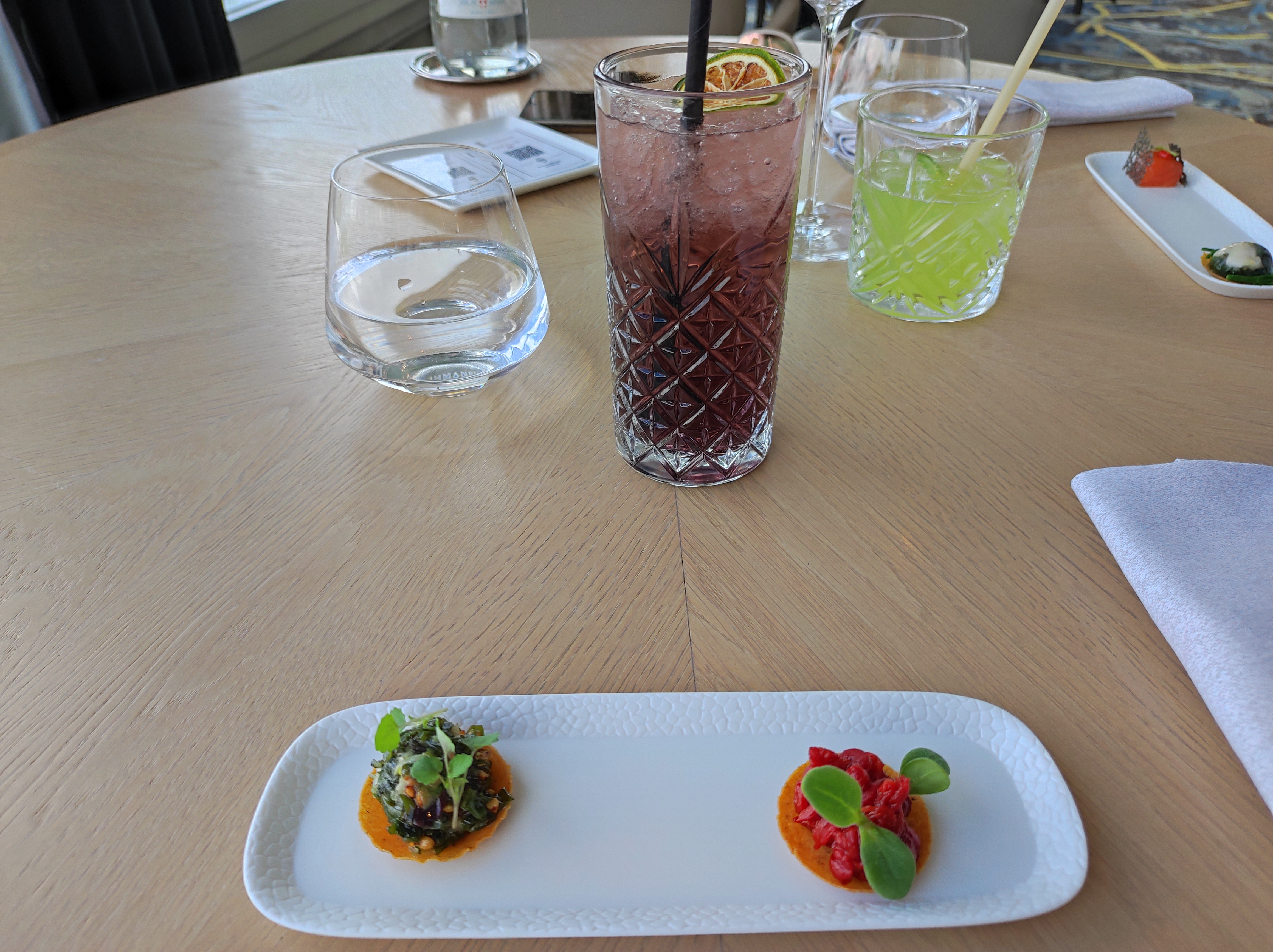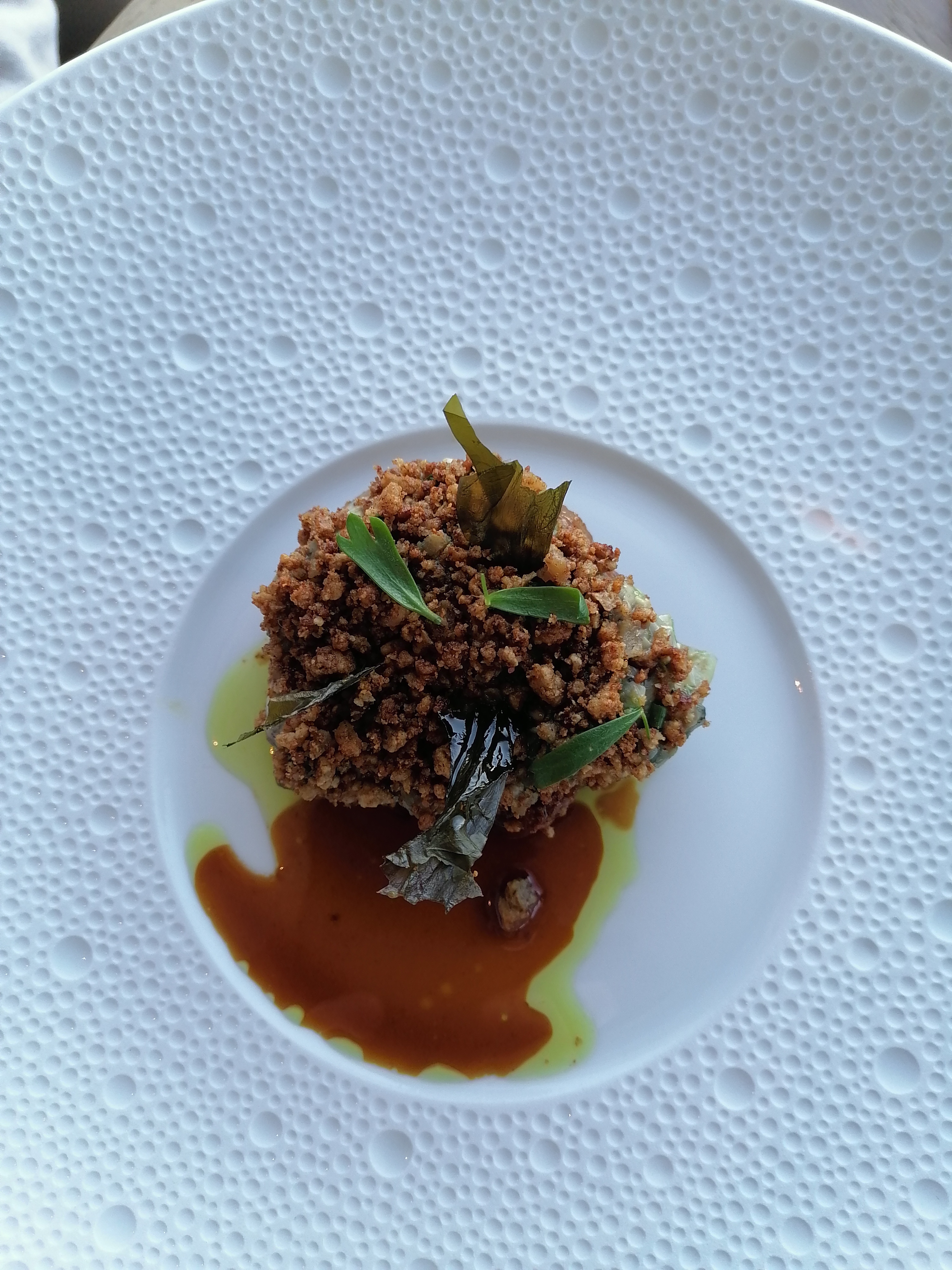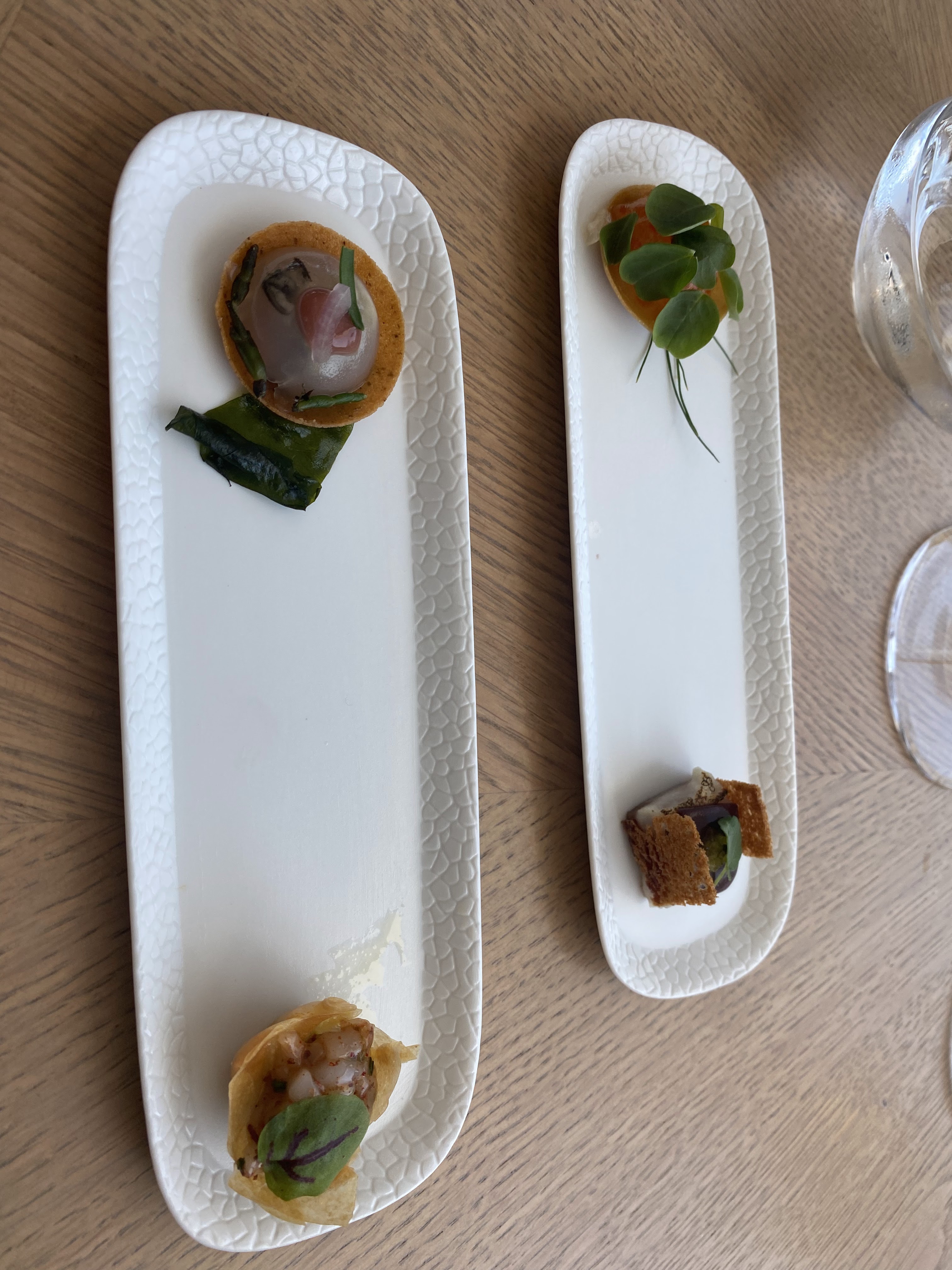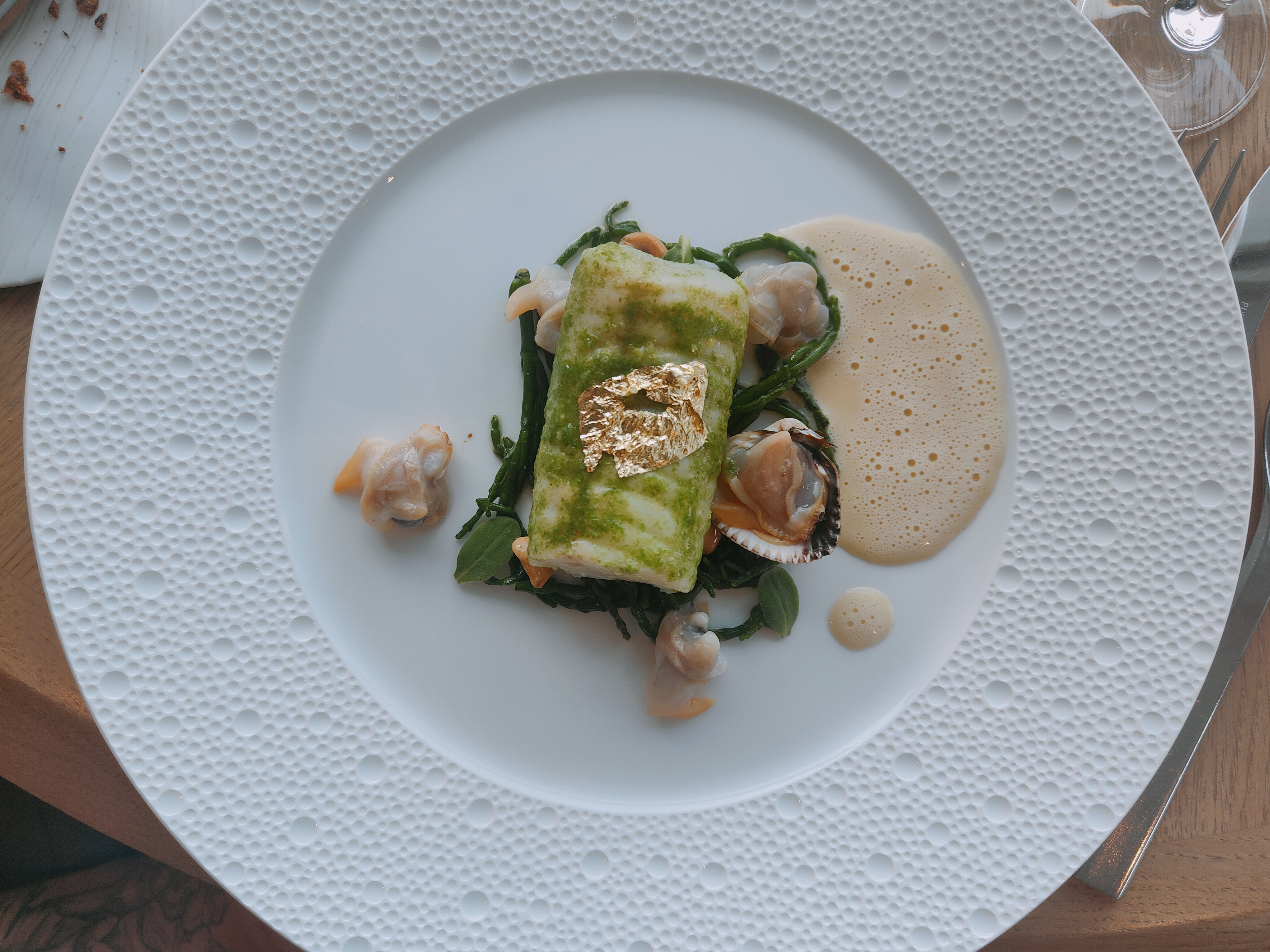 De l'entrée au dessert nos papilles étaient en extasent 😋 Seul les amuses bouches ne m'ont pas plu mais ça c'est moi côté trop iodé je ne suis pas très fan 😉😕 Seul gros bémol on n'a eu hyper chaud dans la salle 🥵 Service lent entre l'entrée et le plat mais on nous offert les cafés pour le temps d'attente et se sont excusés ! On reviendra sans souci pour le plaisir des papilles et de la vue magnifique !!! Mais arrêtez le chauffage 😅surtout quand il fait bon à l'extérieur !