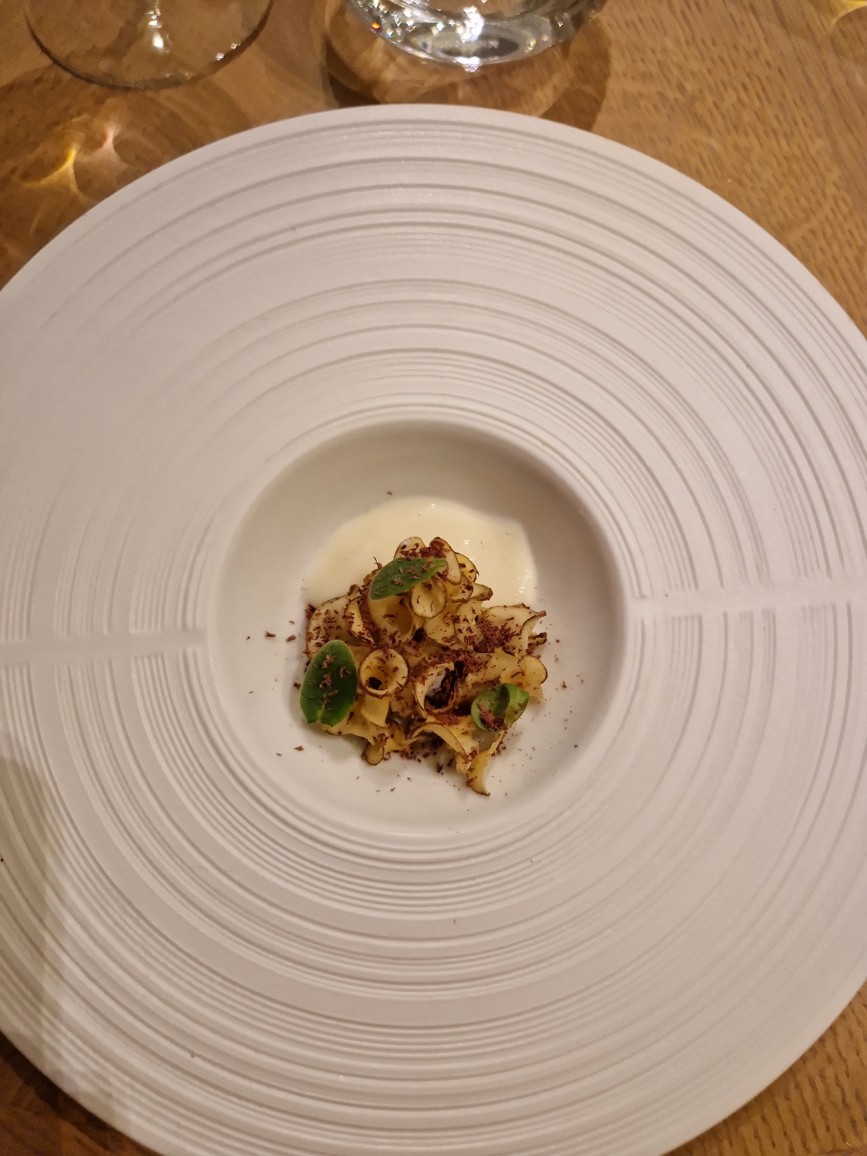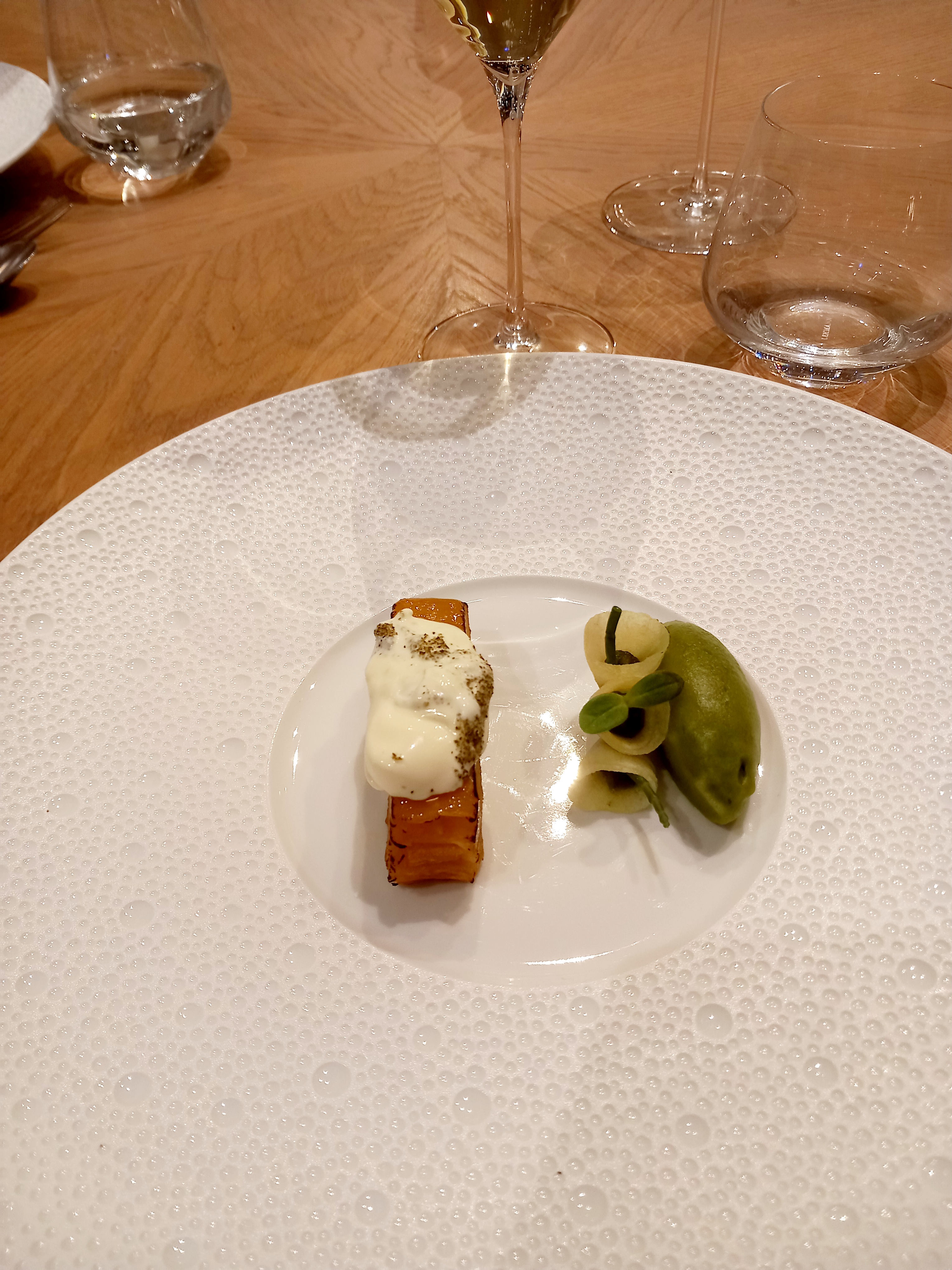 Parfait si vous n’avez pas très faim. C’est très bon même si le céleri dans le chocolat n’était pas trop à mon goût. Tout le reste était excellent par contre j’en suis sorti avec le ventre à moitié plein (le seul dans ce cas sur 4 pour être honnête donc j’étais peut-être anormalement affamé 😅) j’ai donc fini par dévorer qqs gâteaux en rentrant après le resto. A plus de 100€ par personne c’est quand même embêtant. Dans tous les cas je reste persuadé qu’en 2021 on peut avoir une ⭐️ et offrir une nourriture de qualité et en qualité suffisante. A bon entendeur.. (ne vous fiez pas trop aux photos qui sont très trompeuses car prises d’extrêmement près! 🧐 par ex la petite purée de couleur verte devait faire 2cm de diamètre…) menu pris en photo ci dessous