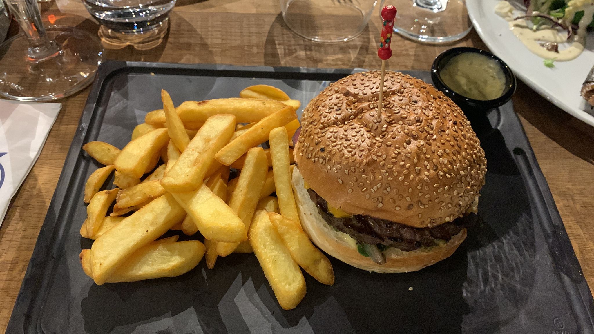 Nous avons hésité entre 2 burgers et avons finalement choisis le burger rotonde avec un steak et du bœuf séché. Les burgers servis ne correspondaient pas au menu et même la cuisson n’était pas la bonne, il n’y avait pas de bœuf séché et le steak trop cuit. La serveuse nous a indiqué que la carte avait changé mais qu’ils auraient les nouvelles cartes modifiés que dans 10 jours. Nous lui avions expliqué que nous avions porté notre choix sur ce burger pour le bœuf séché. Cette dernière s’est excusée mais elle ne nous a même pas demandé si nous souhaitions changer la commande. De plus, les accompagnements mentionnés sur la carte ne correspondent pas à ce qui est servis. Je ne renouvellerai pas l’expérience.