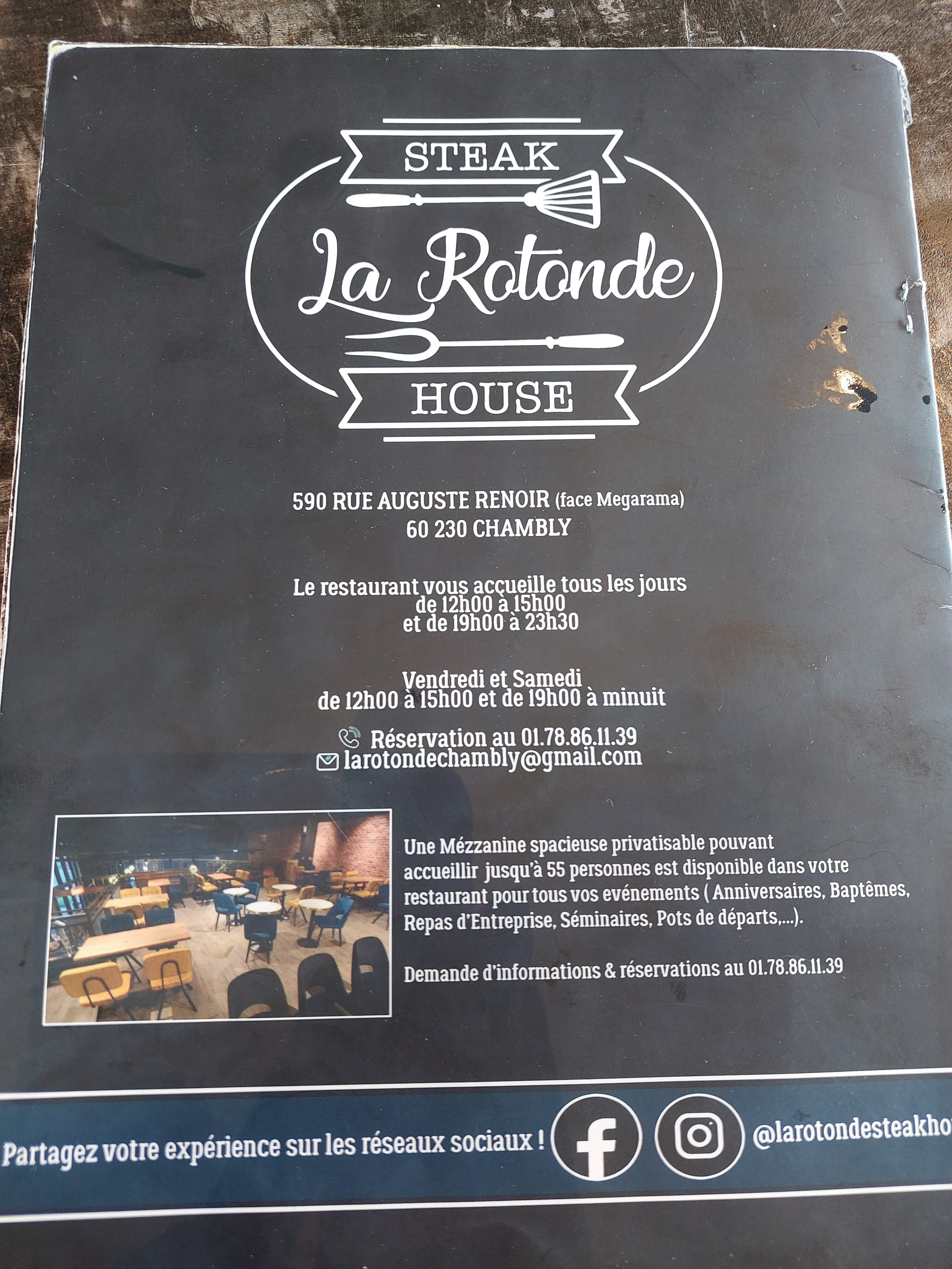 Voici toutes les informations sur le Restaurant La Rotonde Steak House qui ce trouve au 590 Rue Jean Renoir, 60230 Chambly (60). Sur cette fiche vous trouverez les photos, l'adresse, les horaires d'ouverture, le numero de téléphone et les avis clients.Vous pouvez églement rédiger un avis si vous le souhaitez en bas de page.