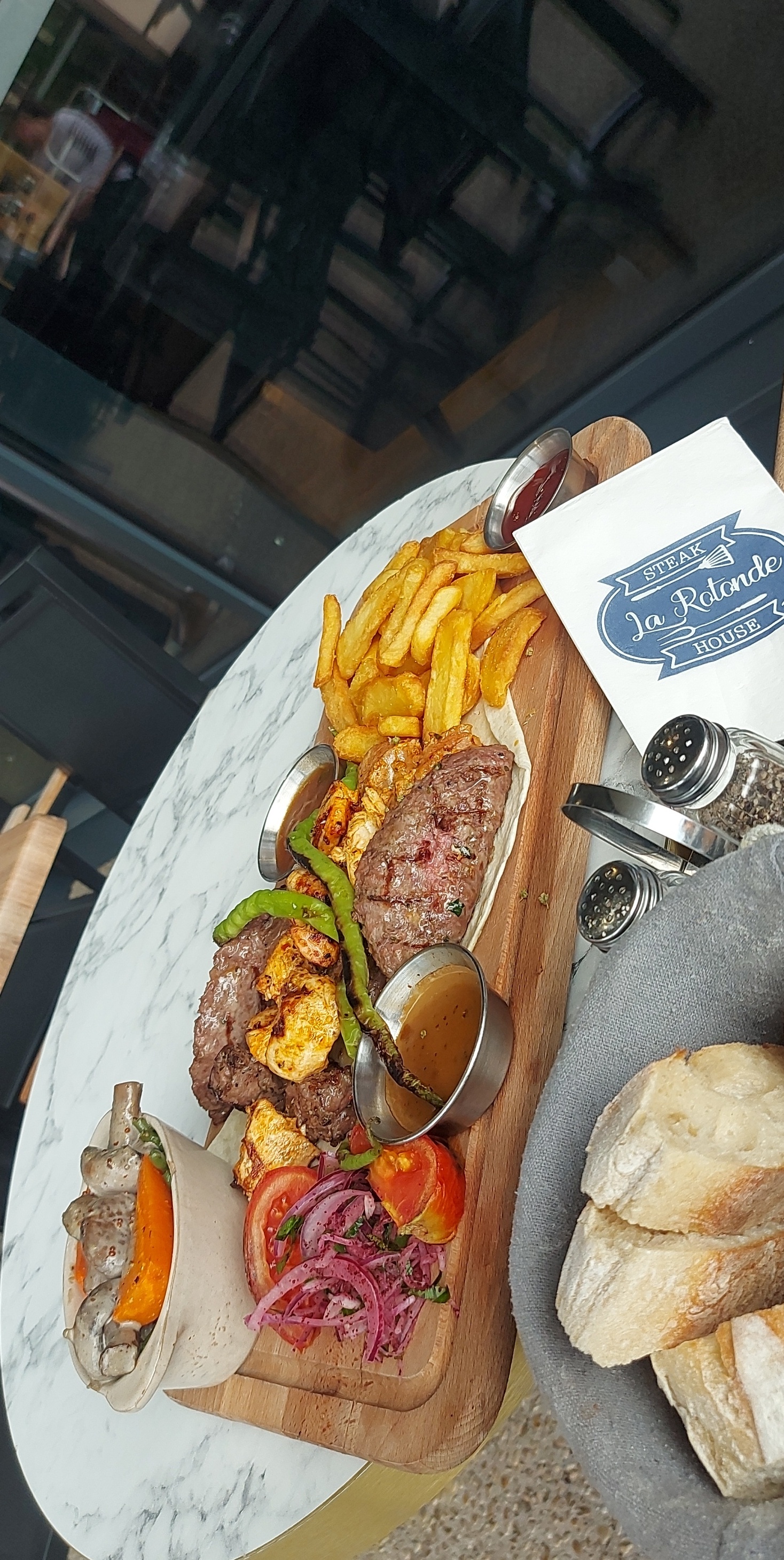 Je suis venu hier avec mes deux copines et notre choix c’est porté sur ce restaurant Accueil chaleureux, nous avons décidé d’aller à l’intérieur mais nous avions voulu changer de place pour profité de la température de dehors et sans hésiter nous avons été placé à l’extérieur. Nous avons prit une planche à partagé, les frites et les légumes sont super bon, et ne parlons même pas de la viande... miam ! Serveur très agréable et marrant ! Je recommande ☺️