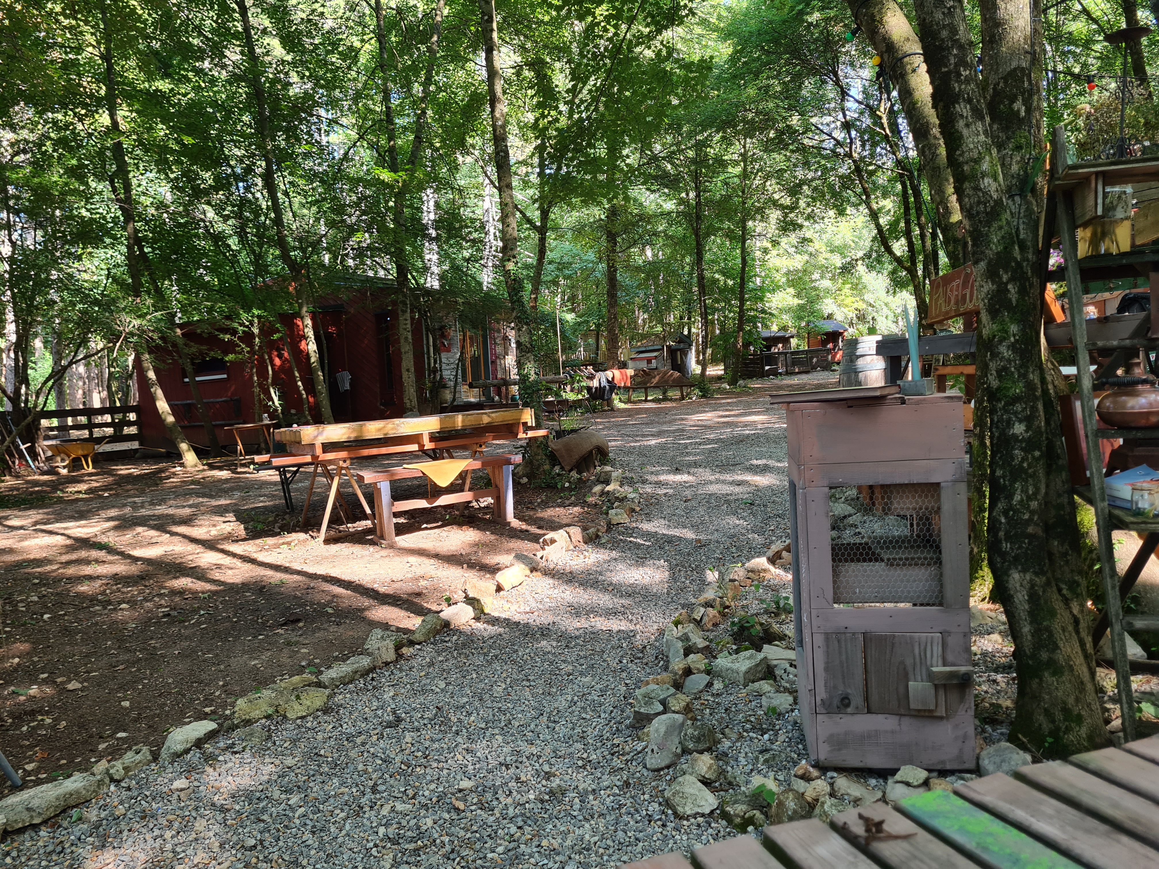 A la fraîcheur de la forêt,entourés d'animaux divers qui se baladent : Un endroit totalement atypique où on oublie le reste du monde. Un accueil sympathique et détendu,une cuisine 100% maison comme on en déguste plus beaucoup .