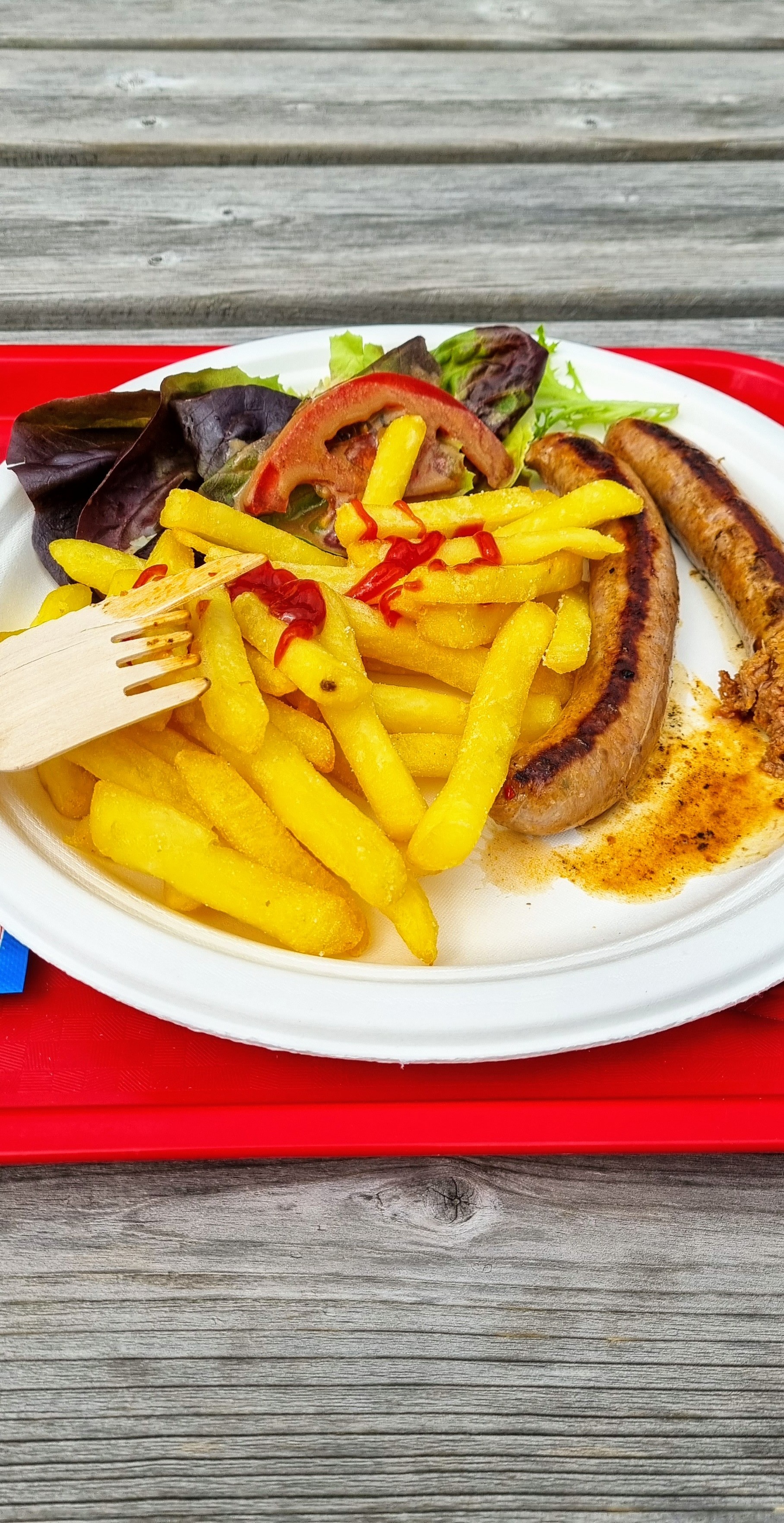 Produits locaux ...mon œil ! Saucisse aux choux trop sèche, accompagnée de frites surgelées, de salade en sachet et d'une demi tomate sans goût...le tout avec un soda pour presque 15€. Je me suis fait avoir par l'affichage régional 🫤