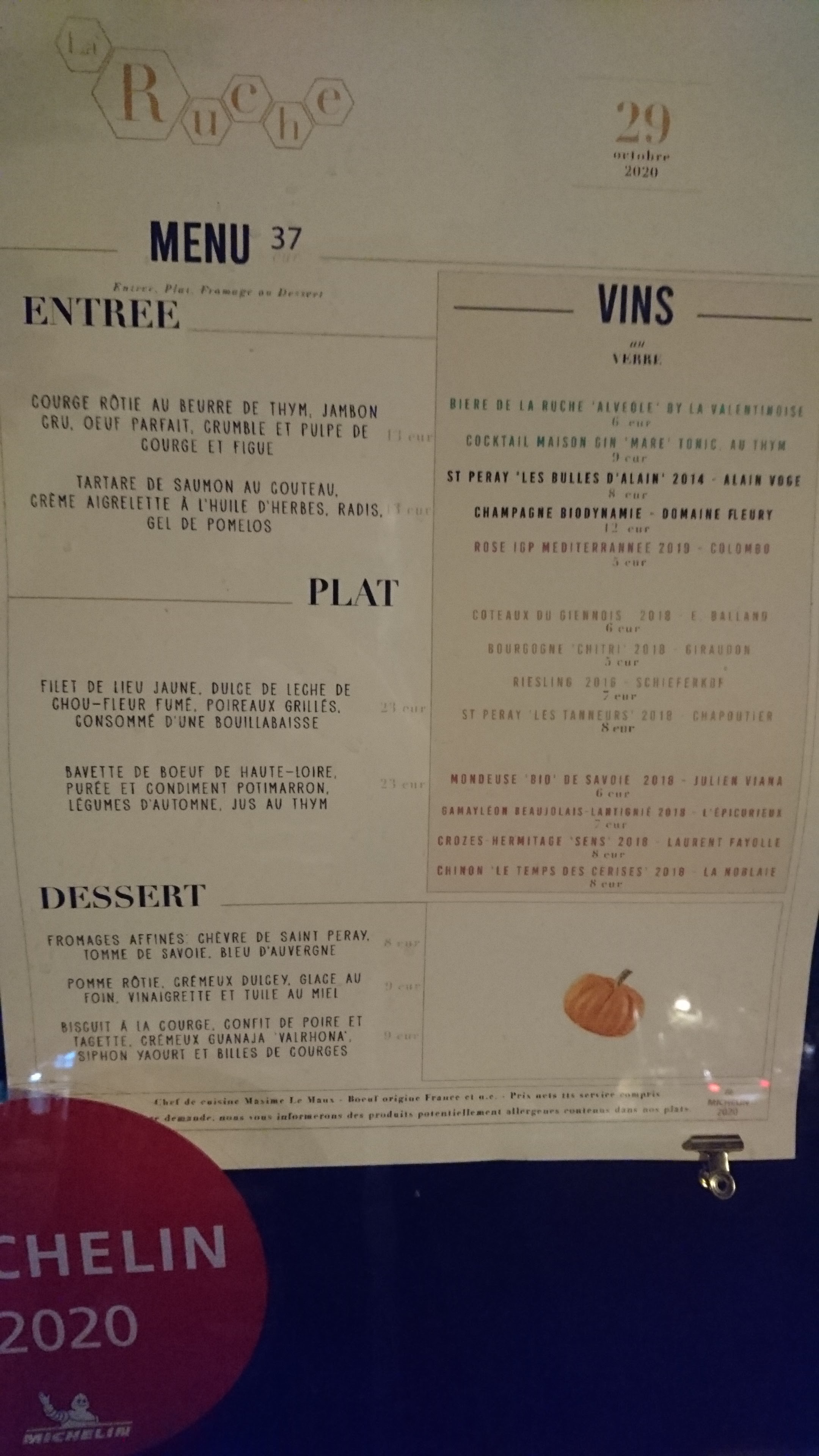 Pour un repas en tête à tête nous avons pris le menu à 39€ et une bouteille de vin. Rien a redire sur les saveurs ainsi que sur le vin proposé par le serveur qui était vraiment parfait. Les plats étaient très bon, bien cuisinés ! je mettrais un seul petit bémol sur les quantités qui peuvent être un peu légères pour un bon mangeur. La ruche reste néanmoins un très bon restaurant que je recommanderais sans hésiter !