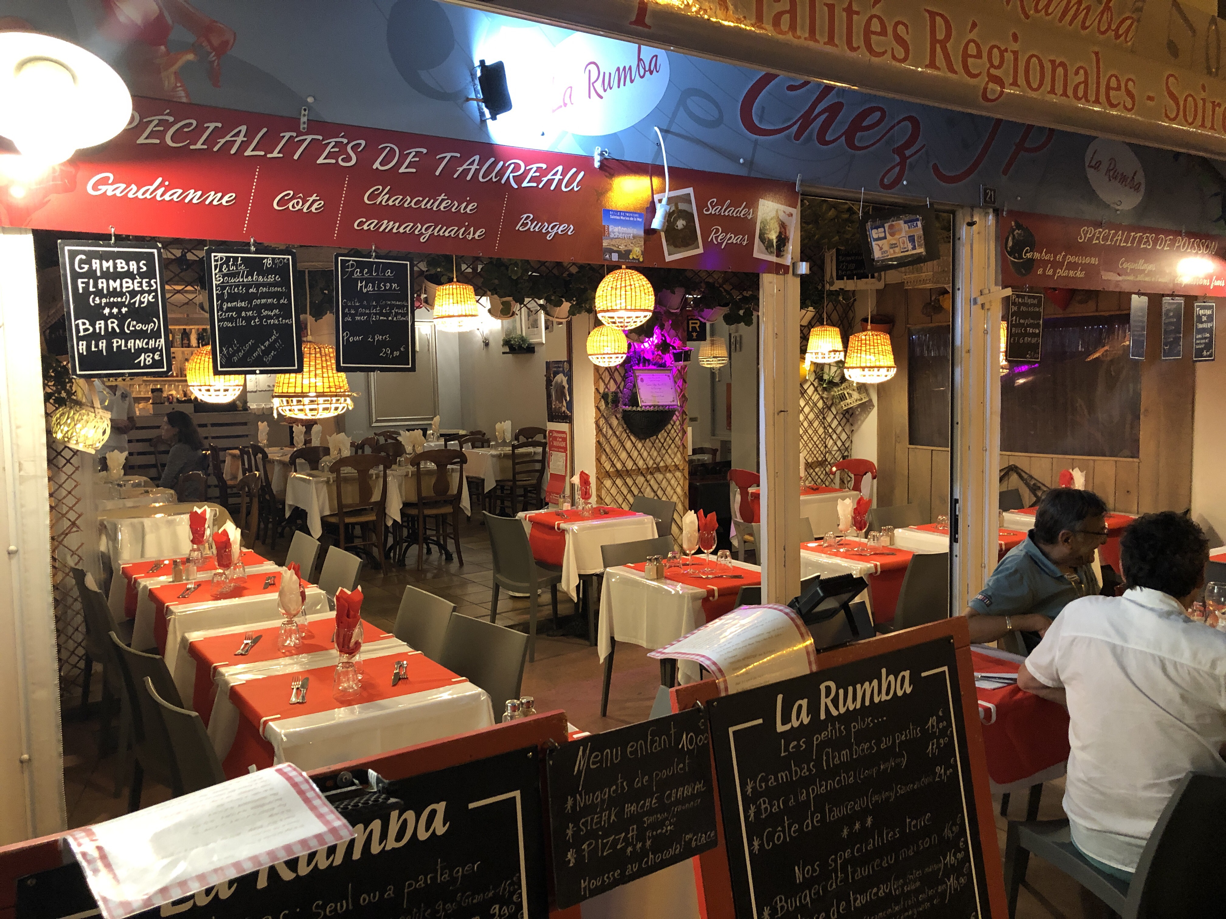 Bonjour Voilà un restaurant à ne pas louper aux Saintes-Maries-de-la-Mer On est reçu avec une extrême gentillesse les plats sont très bon Tarif raisonnable..... Il y a des soirs où il y a des ambiance Gipsy à faire la fête jusqu'à la fermeture.. Je vous conseille de réserver à l'avance bonne continuation à bientôt merci Vive le Camargue Vive les Saintes-Maries-de-la-Mer