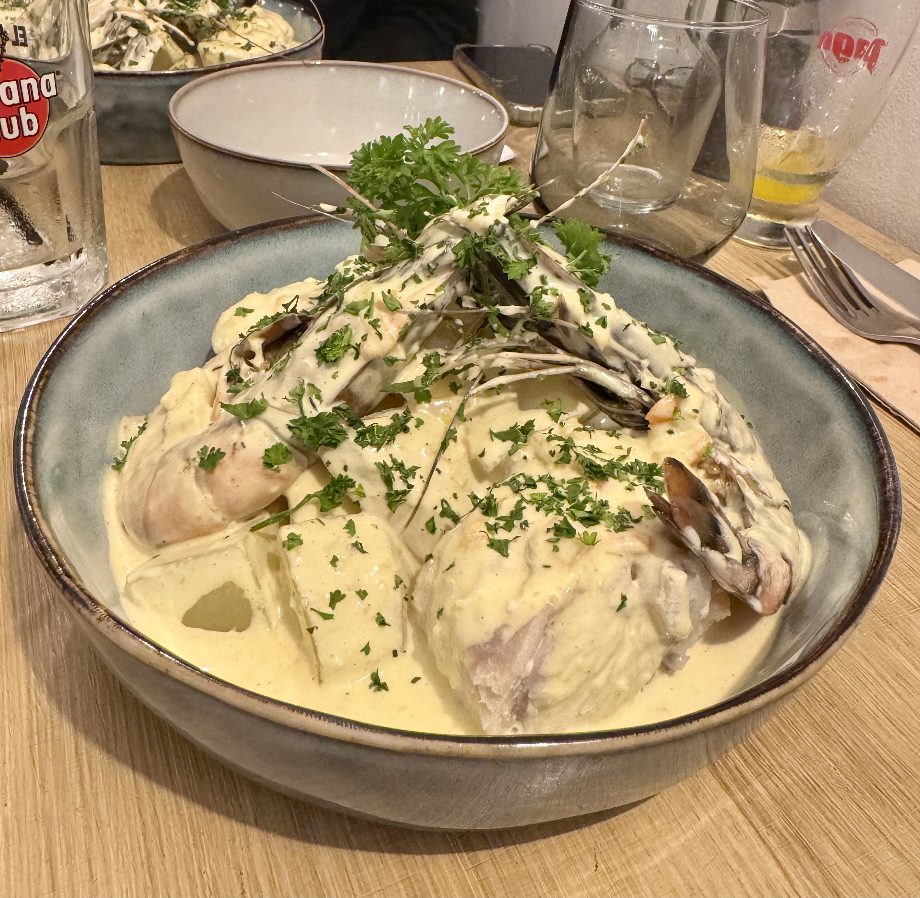 Serveuse au top ,entré super salade aux fruits de mer , plat principal rouillé du pêcheur présentation pas top DSL pour moi à changer qualité prix très bien