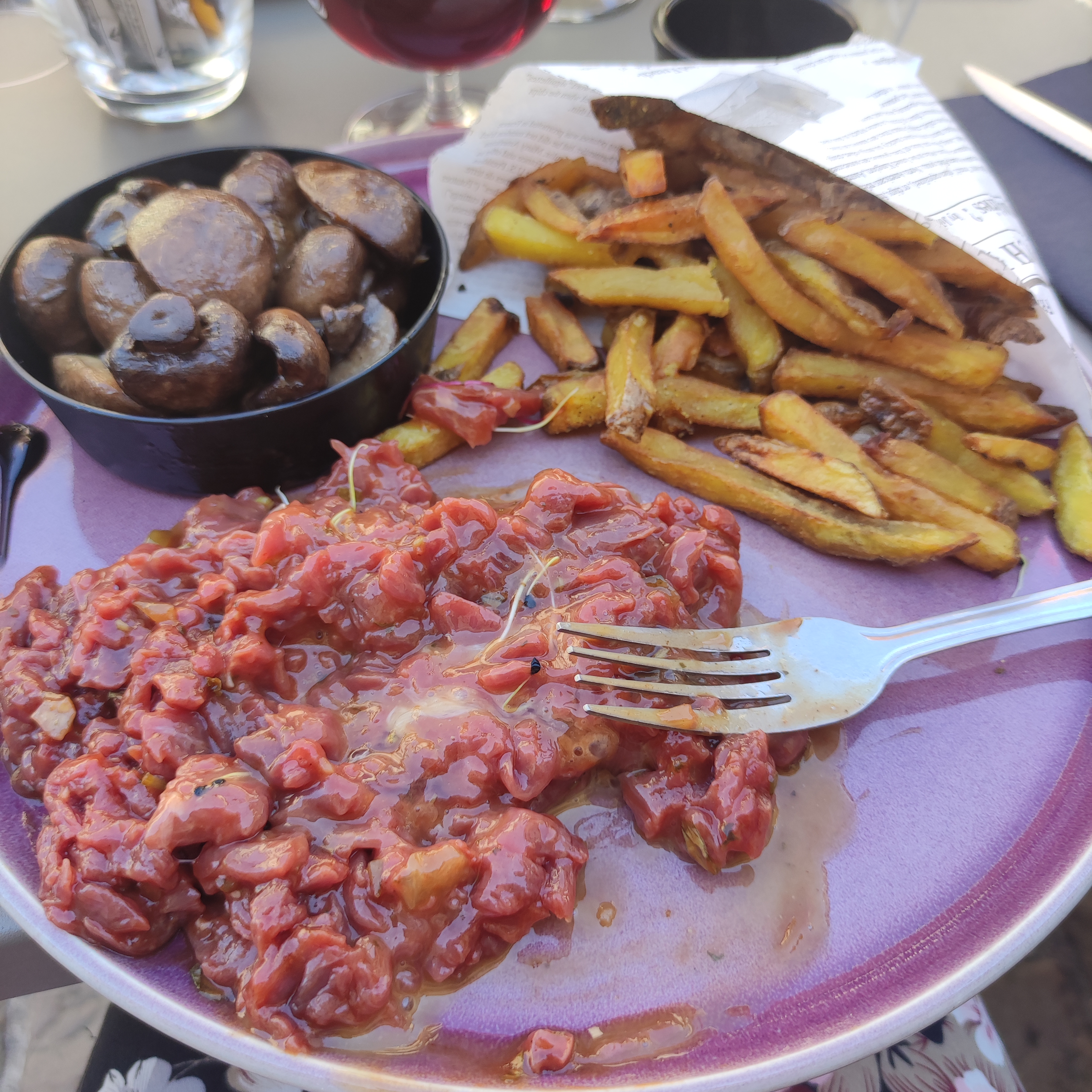 Tartare miam très bon ( j avais mélangé le tartare) repas excellent peu d attend . Que du fais maison on adore .seule bémol tartare avec trop de ketchup mais très bon quand même :) . Je recommande fortement