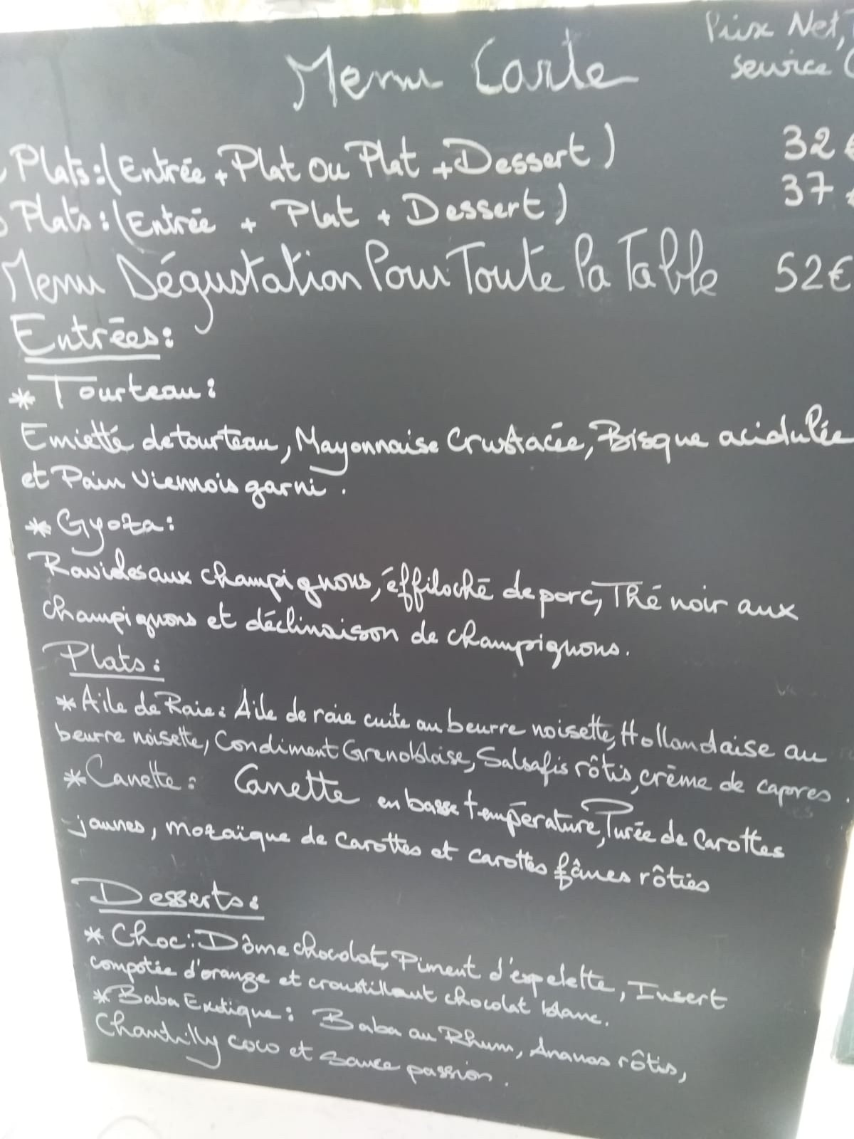 Nous avons pris 2 menus découverte avec ma femme, nous nous sommes régalés. Le patron est toujours souriant, et très agréable. PS: désolé d'avoir mangé tant de pain 🍞😉