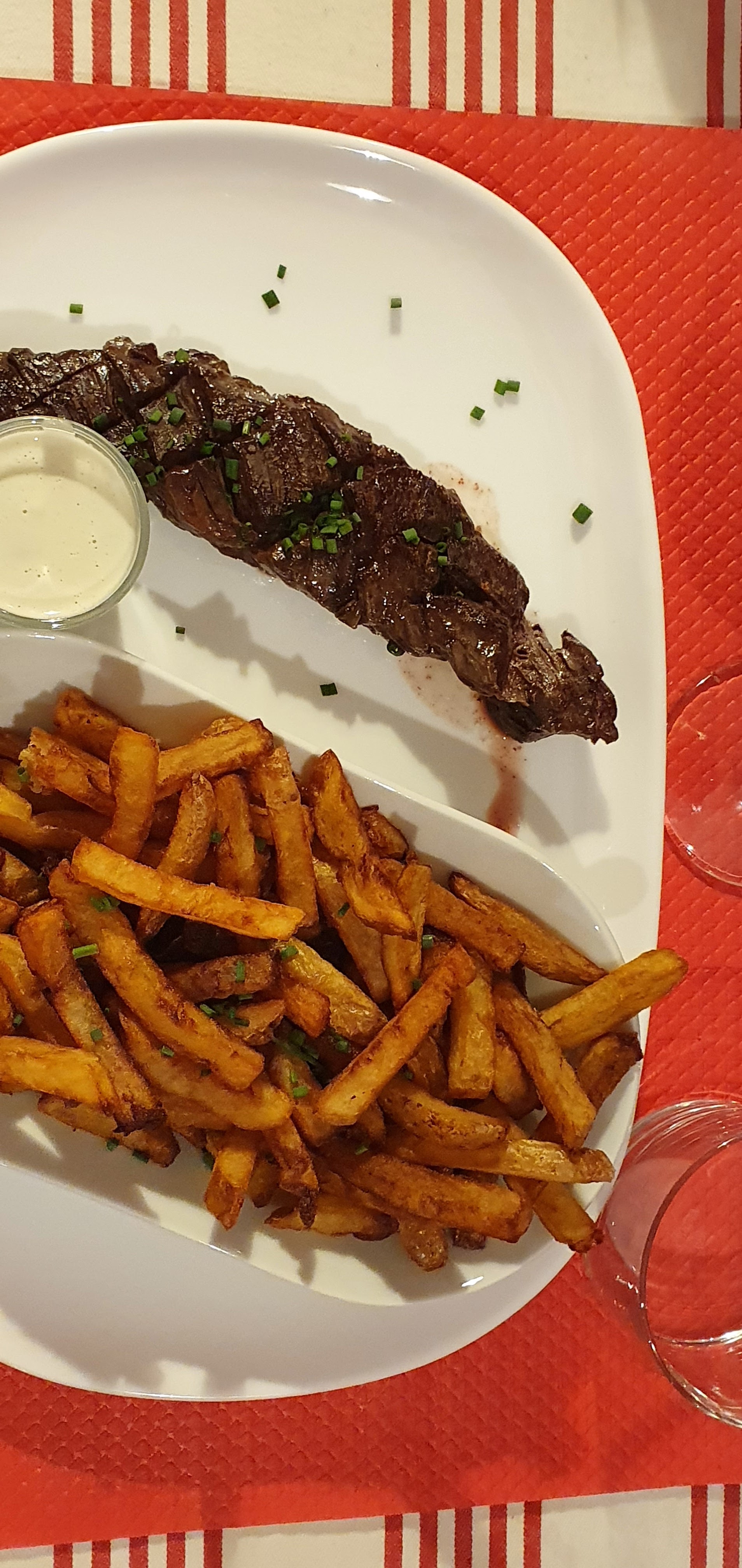 Patronne super sympa, côte de bœuf et frites maison impeccables, playlist de bon goût (et petit chien mignon) 😁 Nous avons passé une très bonne soirée, à recommander !