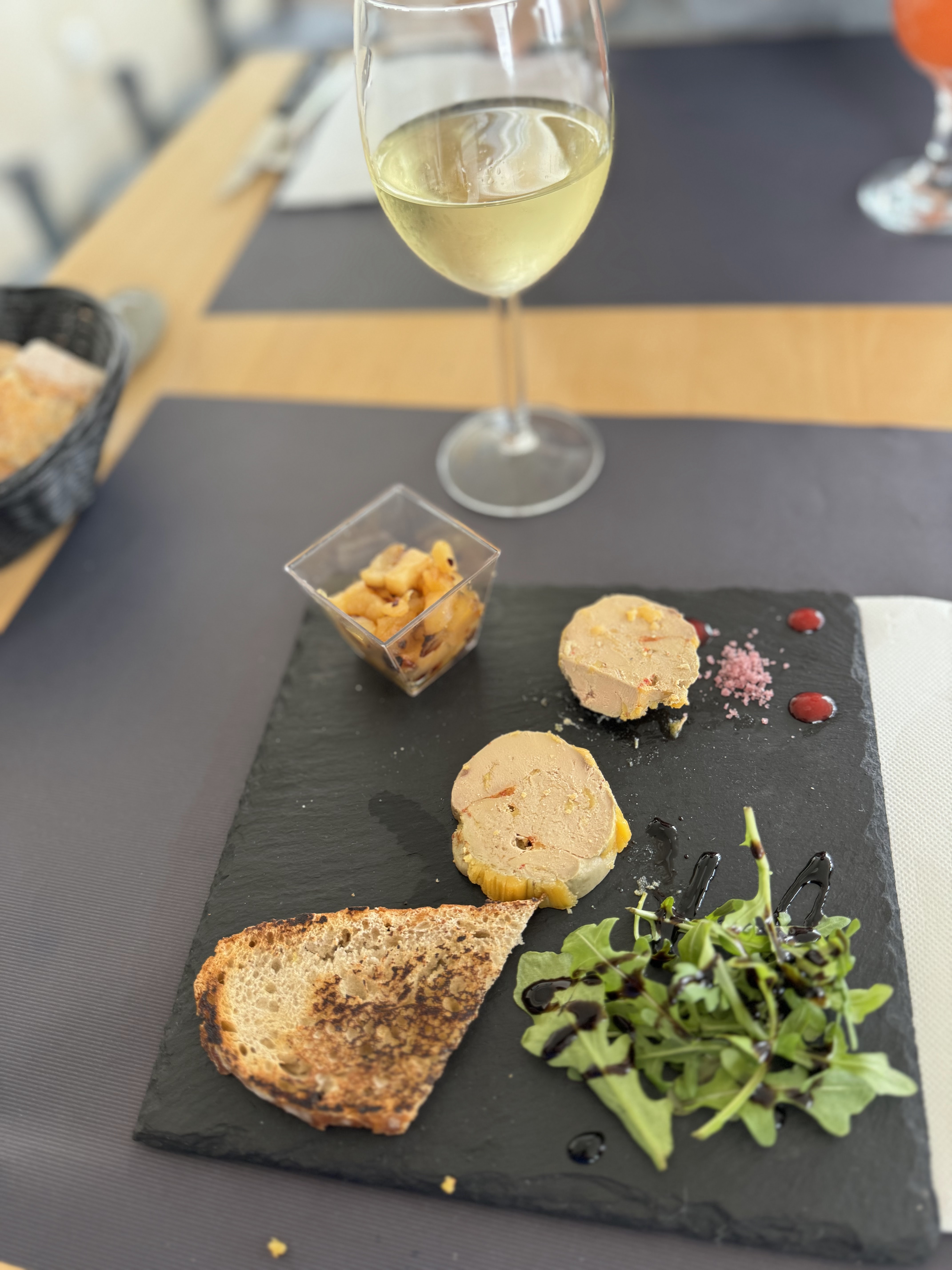 Bien mange. Terrasse bien place avec vue sur mer. Plats de terroirs Teste et aime : foie gras maison, moules marinieres, plateau dessert, rosotto asperges, salade cesar.