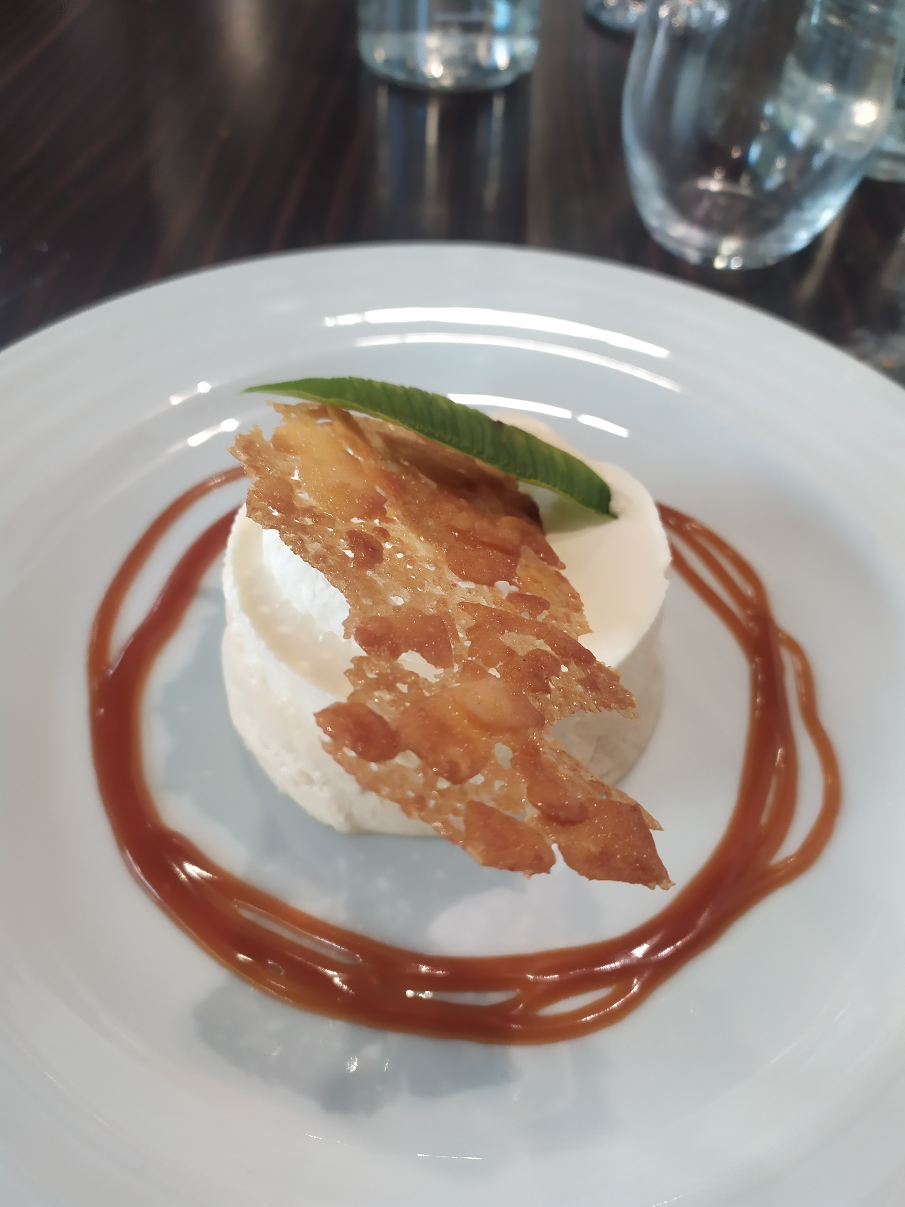 excellent repas de l' entrée au dessert dont nous avons particulièrement apprécié le goût pas masqué par un excès de sucre . le personnel présent et discret mérite nos félicitations