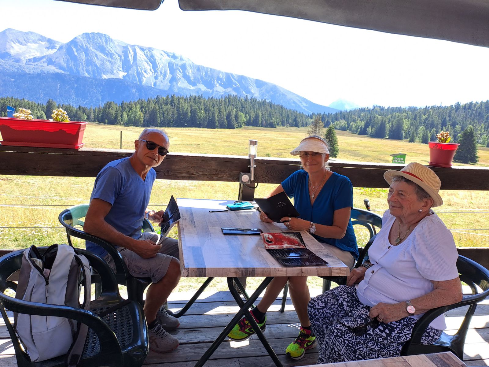 Nous y avons mangé entre amies sur la terrasse avec la vue magique sur le plateau d'Arselle.