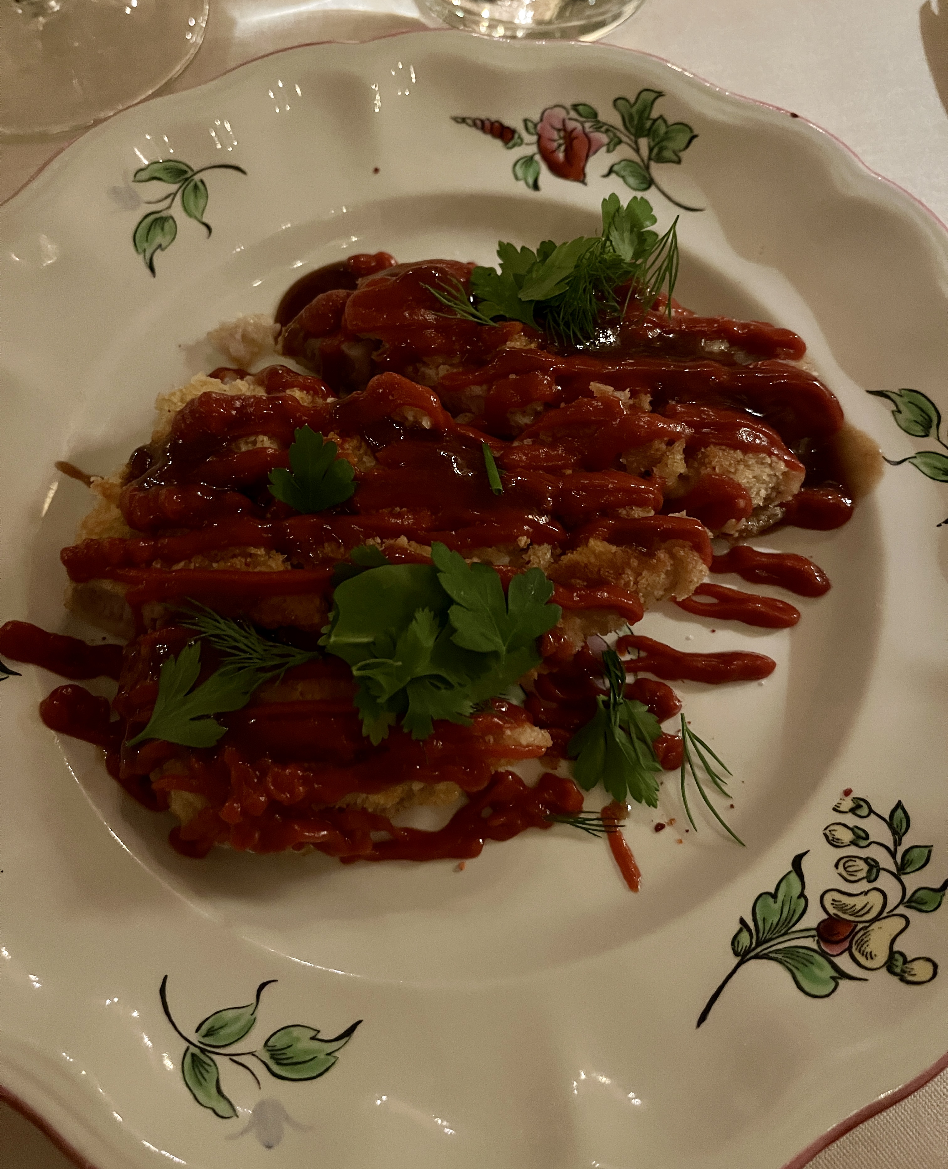 Un des restaurants mythique d’Avignon s’arme d’une version simple de ses propositions, pour le meilleur et aussi pour le moins bien. Le cadre et le service reste irréprochable. On se sent confortable, chouchouté dans un cadre qui invite aux retrouvailles intimes. Une entrée excellente (oeuf pané) qui annonce un bon moment. Un dessert très bon aussi. Tout cela était parfait sauf le plat principal. Qui indique bien son nom et sa fonction. Une escalope milanaise hélas noyée sous un ketchup (certes maison) dont il aurait été bon d’imaginer moins grossier son service. Un coin dans l’assiette aurait suffit. Tout comme l’escalope en elle même qui est déjà grossièrement coupée. Pas de lien entre les légumes et l’escalope. En vrai, un jus aurait surement mieux rempli sa fonction et élever le niveau de ce plat. Ma conjointe a aussi été déçue par les lasagnes dont la puissance du pesto recouvre les ingrédients (impossible de détecter du champignon la dedans en effet). Bref, quelques ajustements pourraient facilement remonter le niveau de cette partie de l’établissement. Si le but est de rendre la cuisine accessible avec une formule « hors étoilée » cela ne devrait pas desservir la maison entière. On peut comprendre la stratégie d’ouverture et non moins commerciale (il y a rien de mal à cela) de créer une partie non gastronomique .. pour autant cela devrait avoir le même niveau, sinon meilleur que les établissements proposant des menus entre 45 et 60 euros. Qqes détails ont fait la différence. En espérant vous retrouver meilleurs encore la prochaine fois. (Et big up le chat qui lui est toujours savoureux <3)
