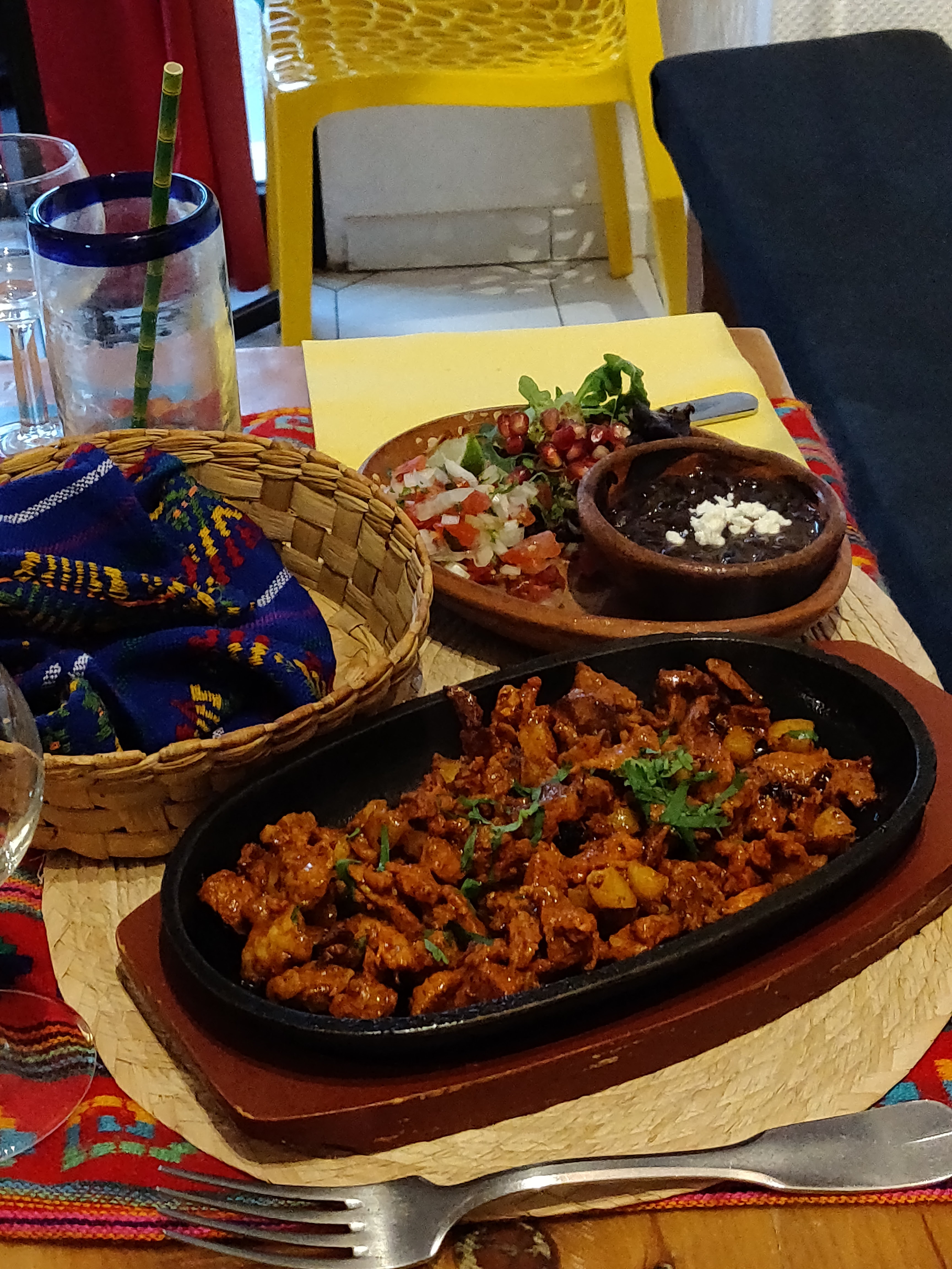 Restaurant mexicain bien décoré. La carte reprend les classiques de la cuisine mexicaine. Les plats sont bons et le service très sympathique