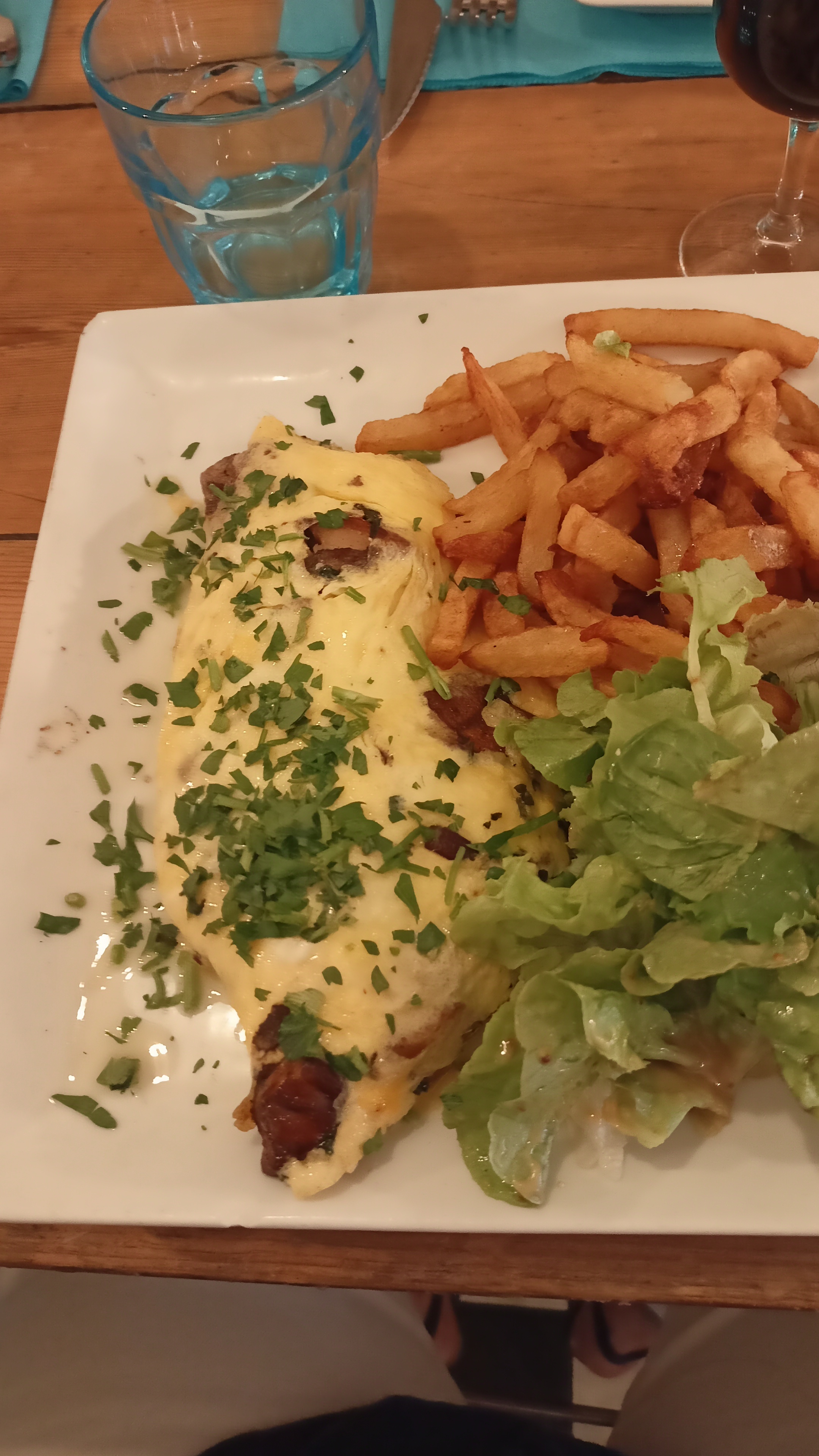 Bon accueil service un peu long mais beaucoup de monde donc indulgence ++, car c'était excellent !! Omelette baveuse aux cèpes un délice avec pleins de cèpes !! Le veau était bon la bavette bonne aussi et le demi magret excellent !! Les desserts très bon panacota pistache coulis de framboise miam et le cheesecake spéculos citron double miam !! On a passé un excellent moment a refaire car le cassoulet maison a l'air succulent !! On reviendra !! Merci !!