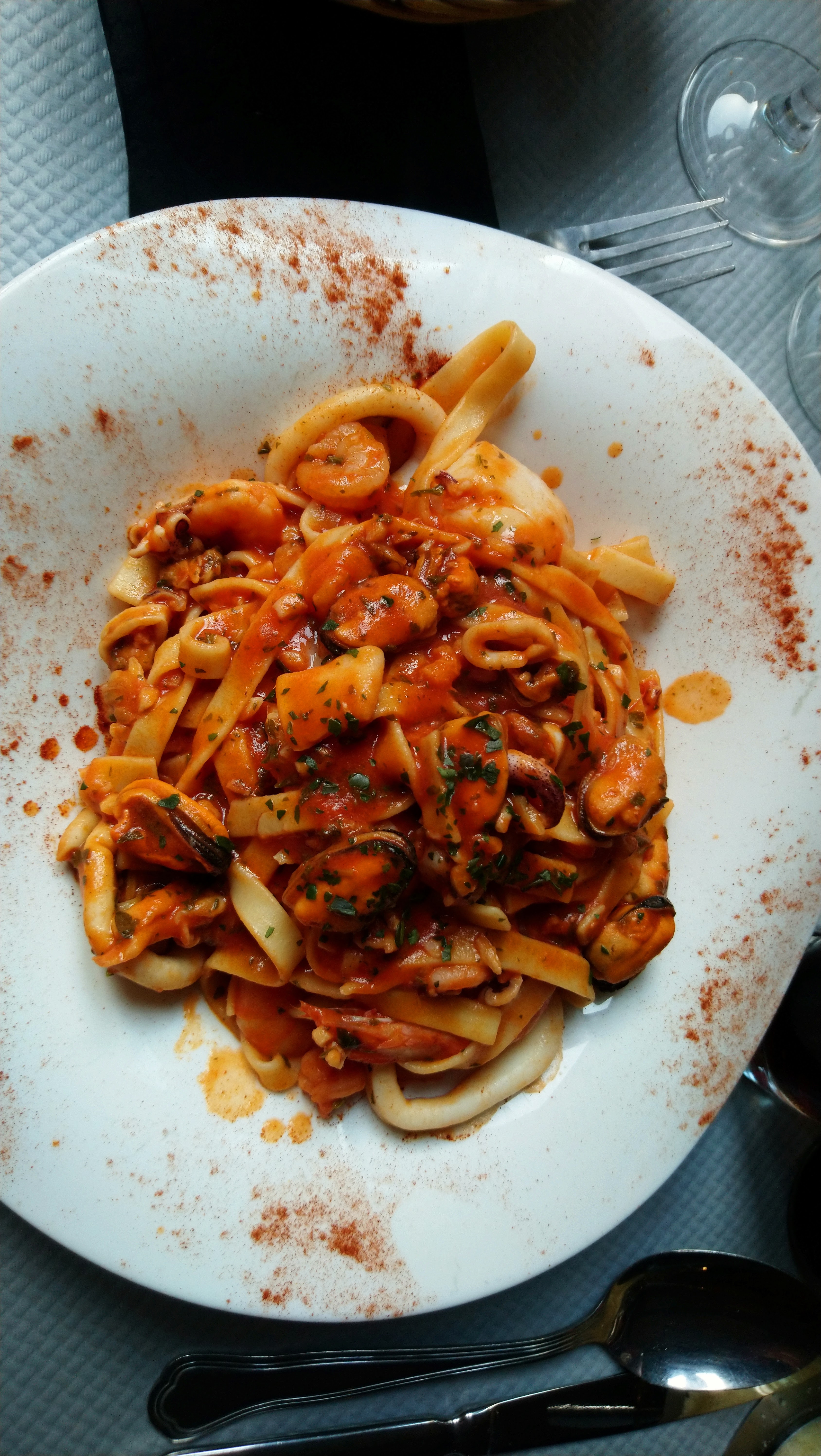 Je n’ai pas touchée à mon assiette. Nous avons déjà attendu un certain temps avant d’être servies, et de plus pas servies en même temps pour 2 assiettes. J’avais pris des tagliatelles aux fruits de mer, et mon amie des pennes 4 fromages. Les pennes étaient très bonnes mais moi je n’ai quasiment pas touchée à mon assiette les fruits de mer ne me paraissaient pas frais du tout, je n’ai préférée pas me rendre malade. Le responsable avait l’air assez agacé que je n’ai pas mangé mon assiette. J’ai du tout de même payé mon assiette à 18€ Pas très commercial, je déconseille Pour répondre au responsable, je n’avais pas l’intention de laisser d’avis négatif si seulement on s’était excusé rien qu’en me faisant un petit geste commercial. Je pense qu’en tant que professionnel de la restauration, il est préférable de savoir accepter les critiques qu’elles soient bonnes ou mauvaises. Pour ce qui est des produits, travaillant moi même en cuisine depuis plusieurs années dans différents pays, je sais reconnaître un produit frais. je vous remercie de nous avoir rajeunies d’une dizaine d’années, c’est toujours plaisant :)