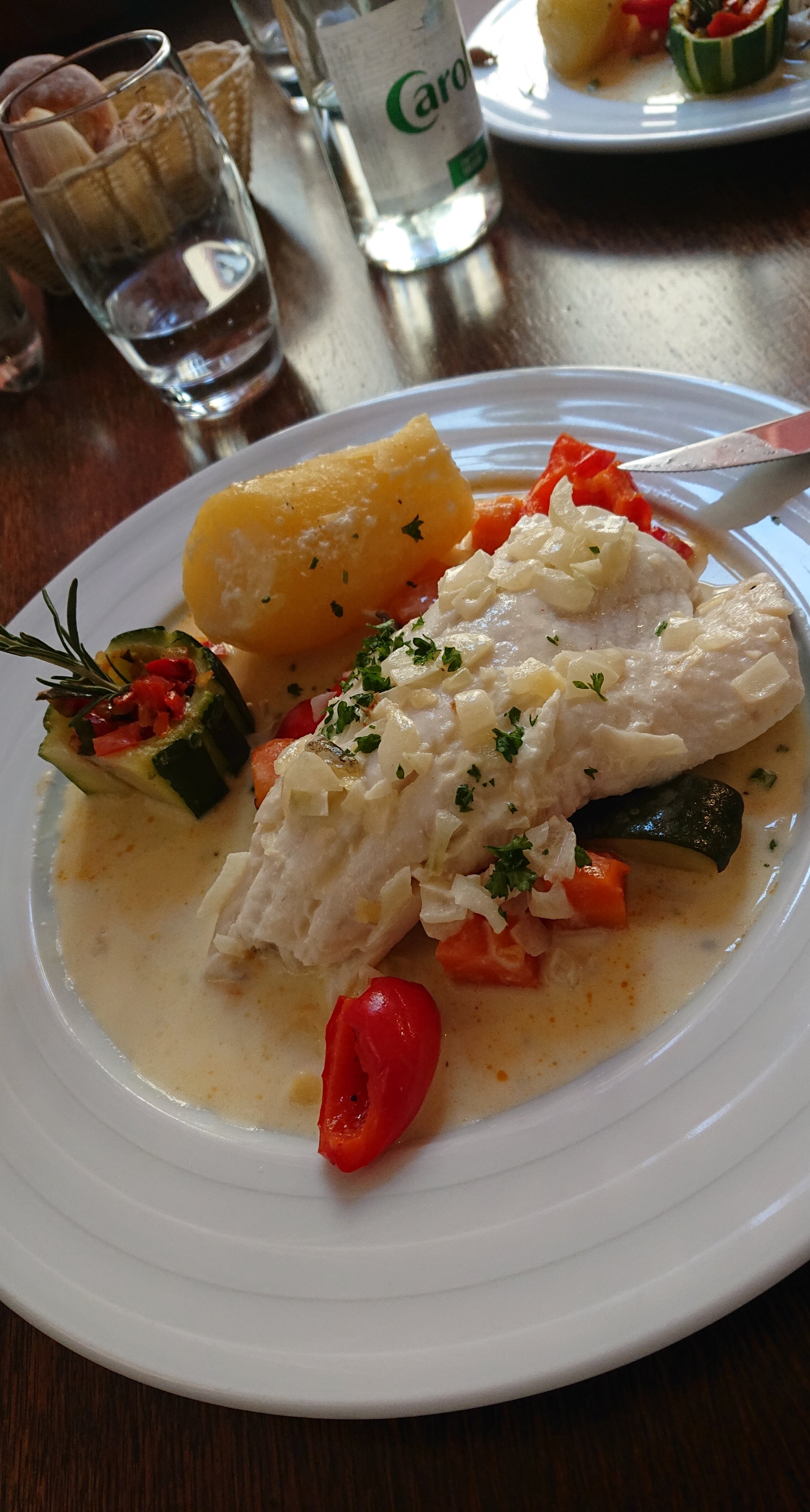 Un peu cher pour un plat de poisson et des patates à l'eau. D'autant que tous les poissons n'étaient pas là !