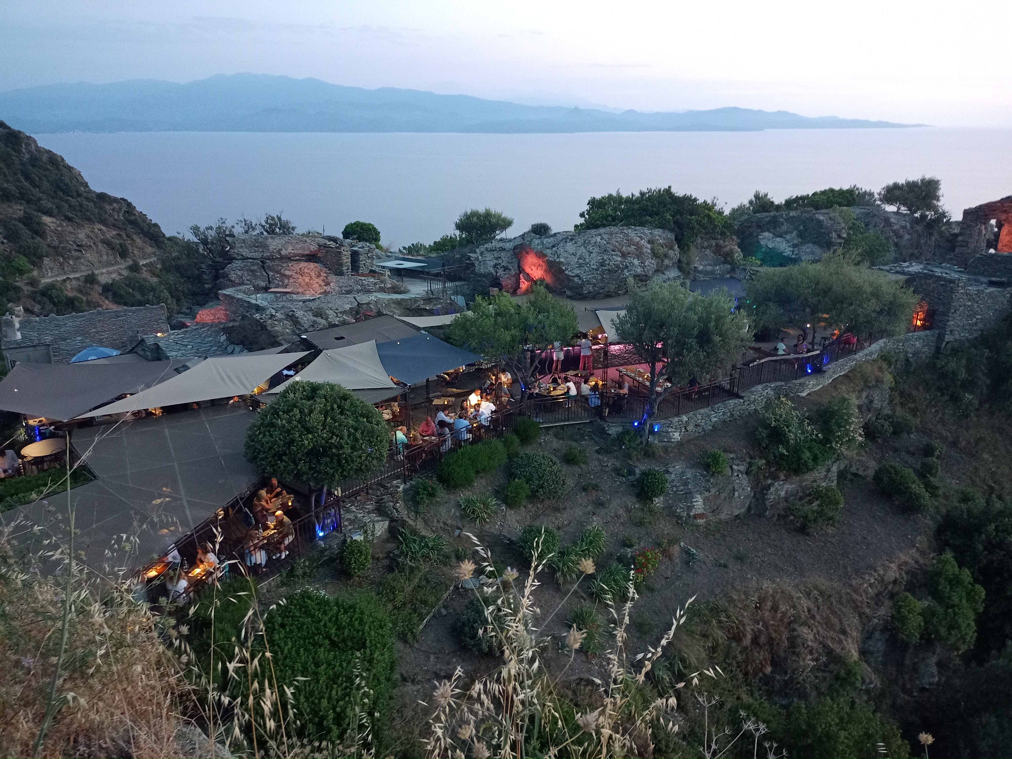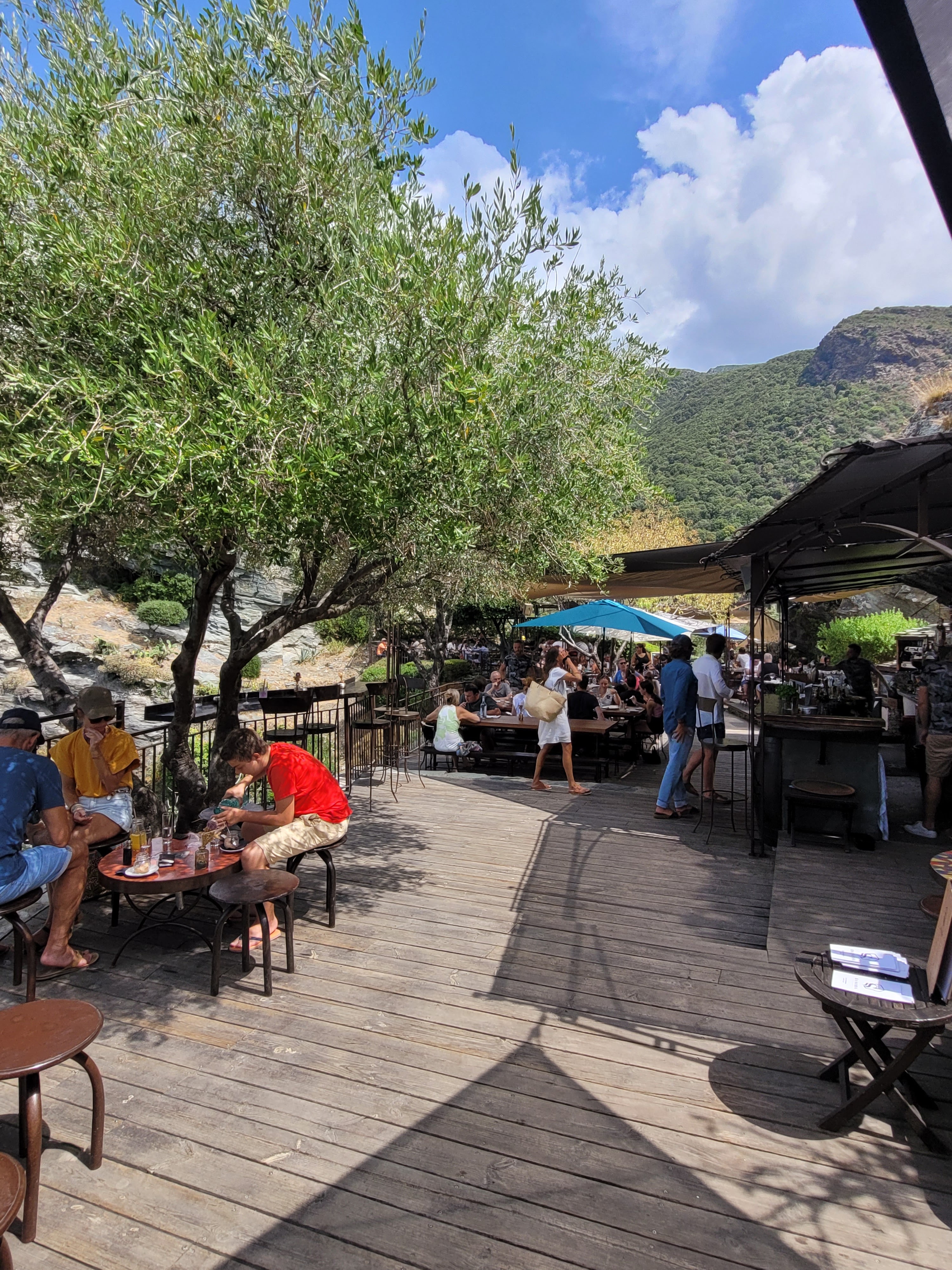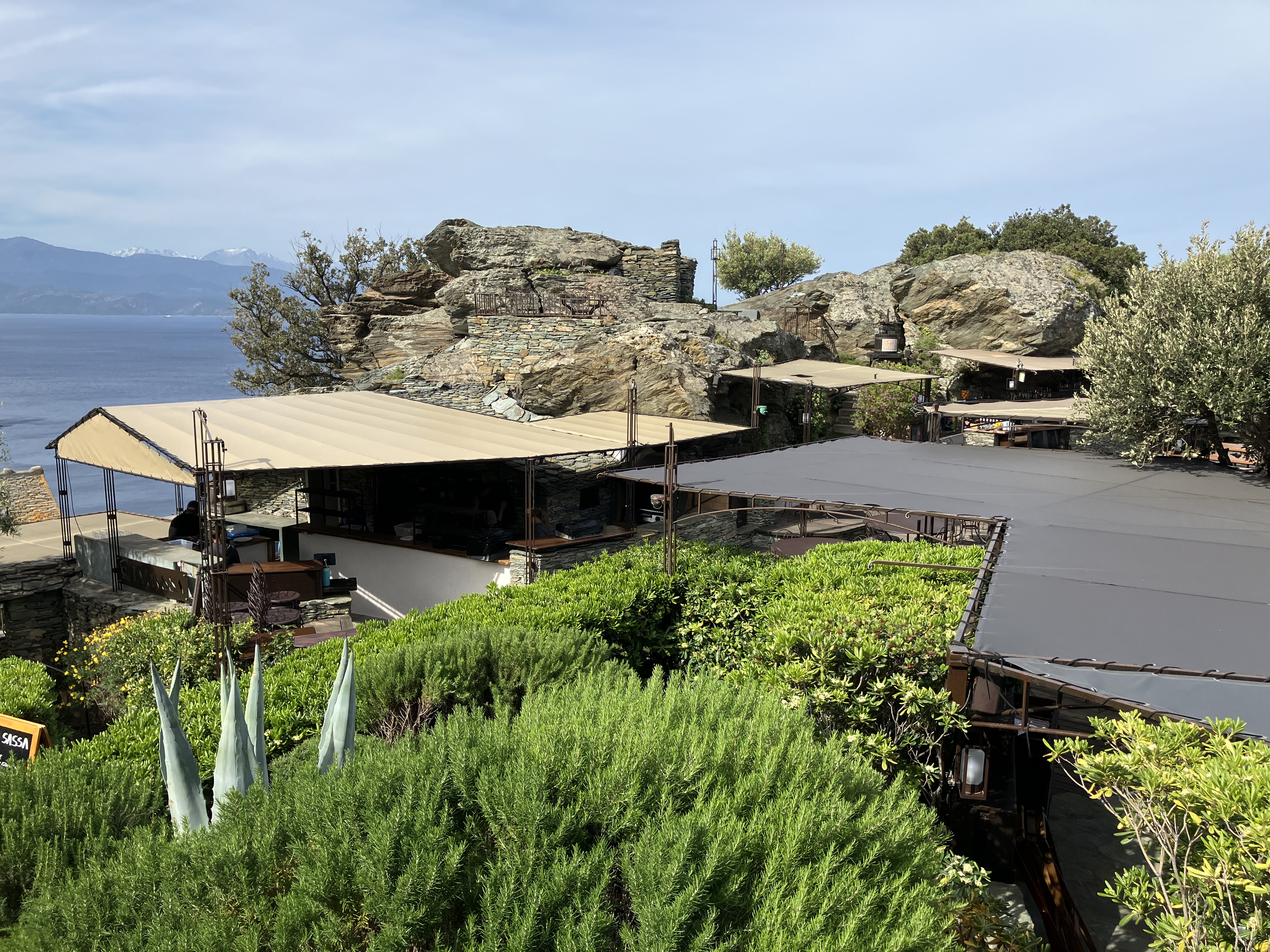 Quelle belle découverte ! Superbe endroit, magnifiquement situé bien sûr mais également très bien agencé avec plusieurs terrasses ombragées. Nous sommes arrivés dégoulinants après notre marche et habillés en tenue de sport, et pourtant nous avons été très bien accueillis. Nous n’avions pas réservé mais avons quand même pu y prendre un verre. Et quels cocktails ! Sur les conseils du serveur très sympathique, nous avons pris des cocktails aux saveurs de la région (notamment le mojito agrémenté de myrte !). Délicieux. On reviendra (en réservant, cette fois, pour dîner).