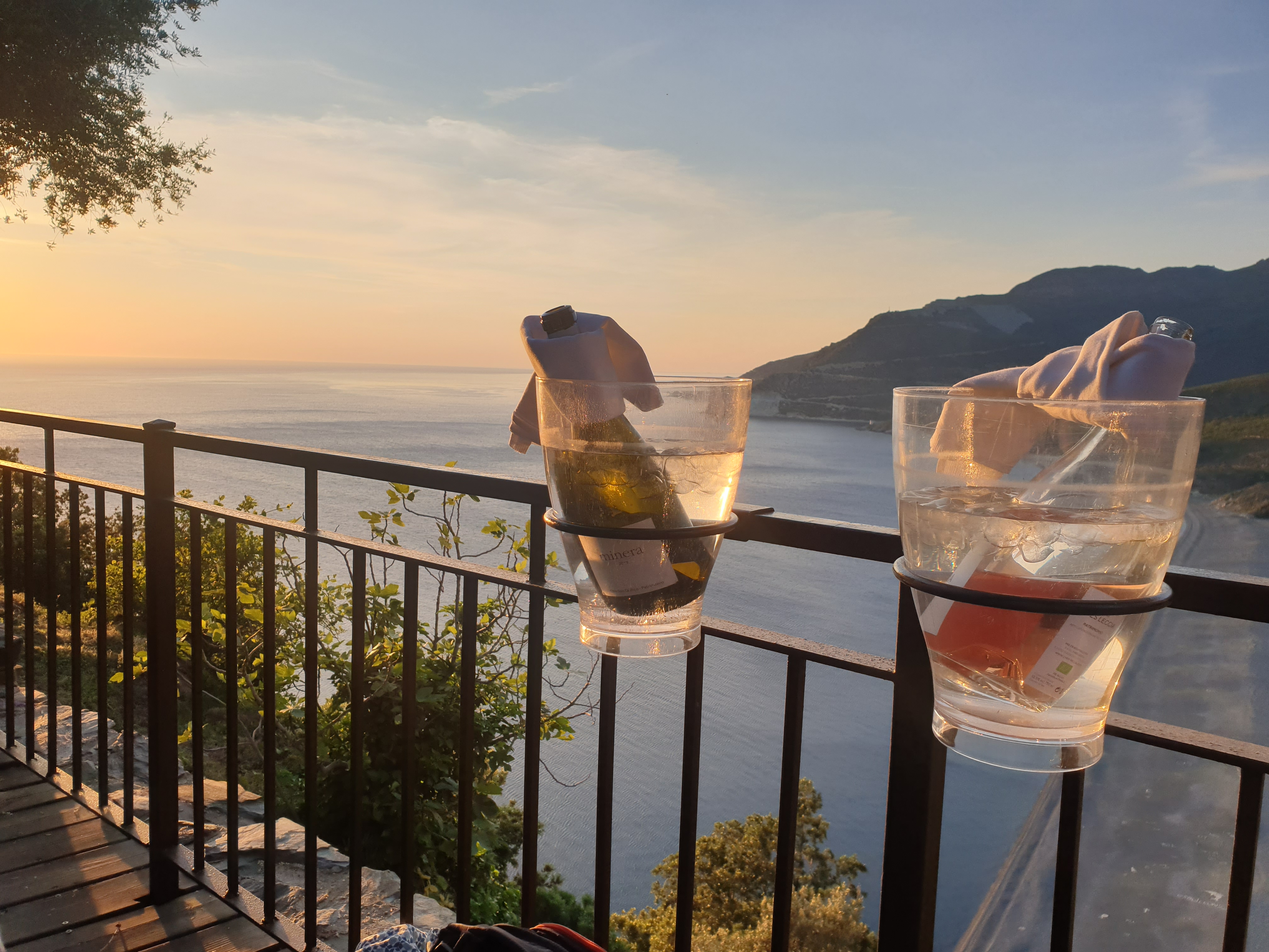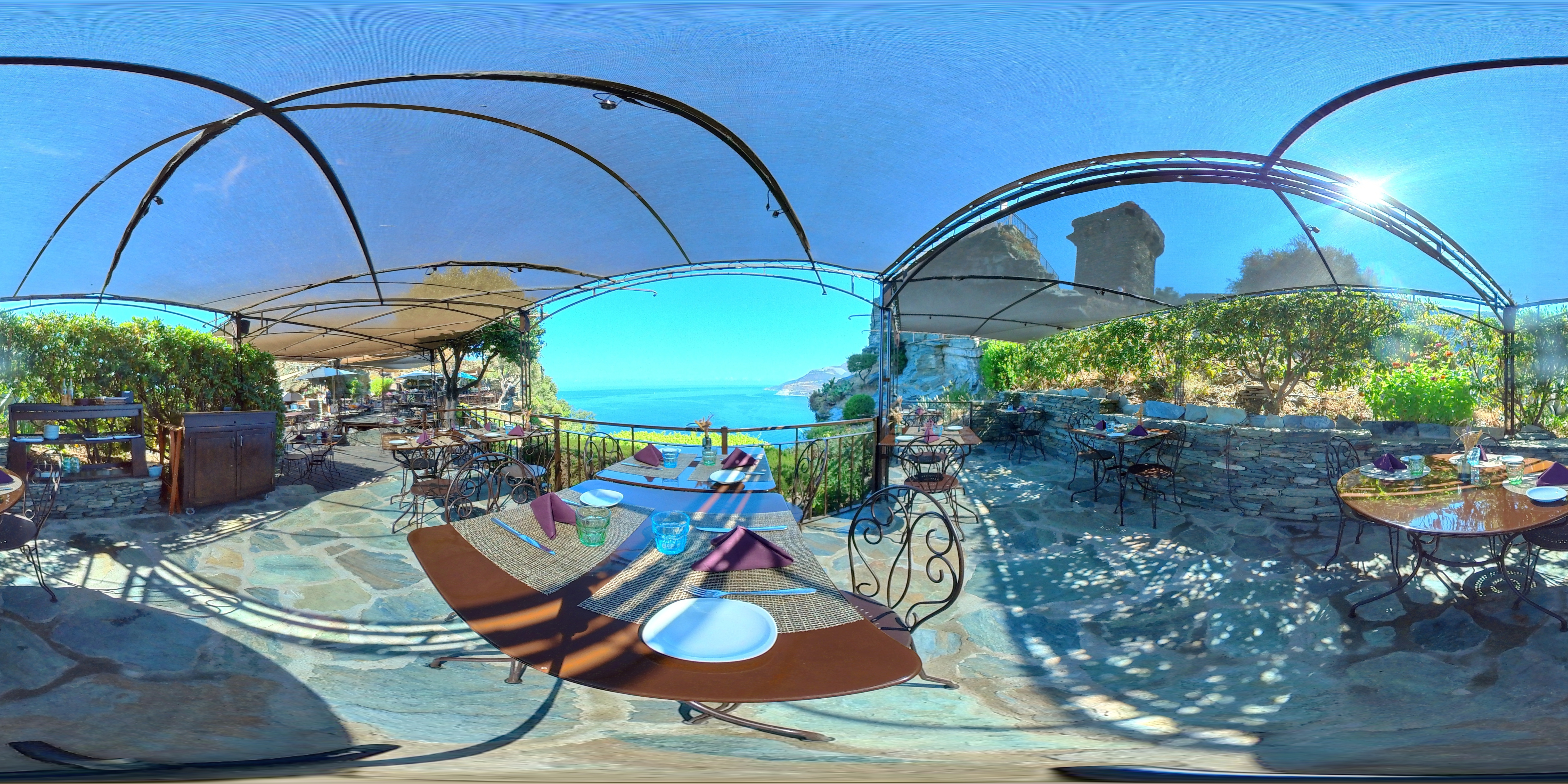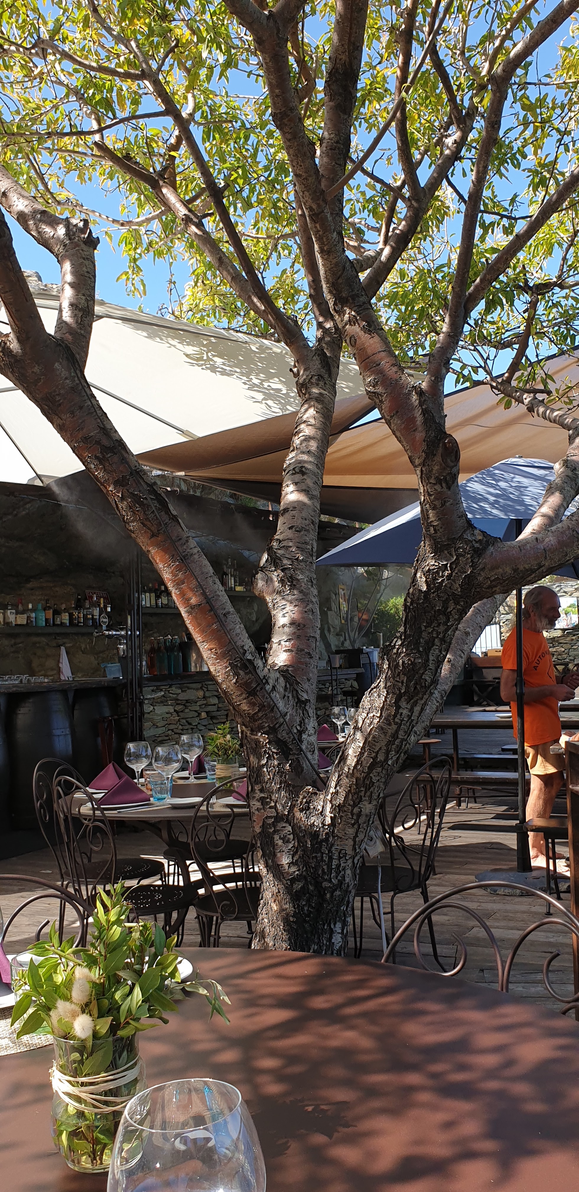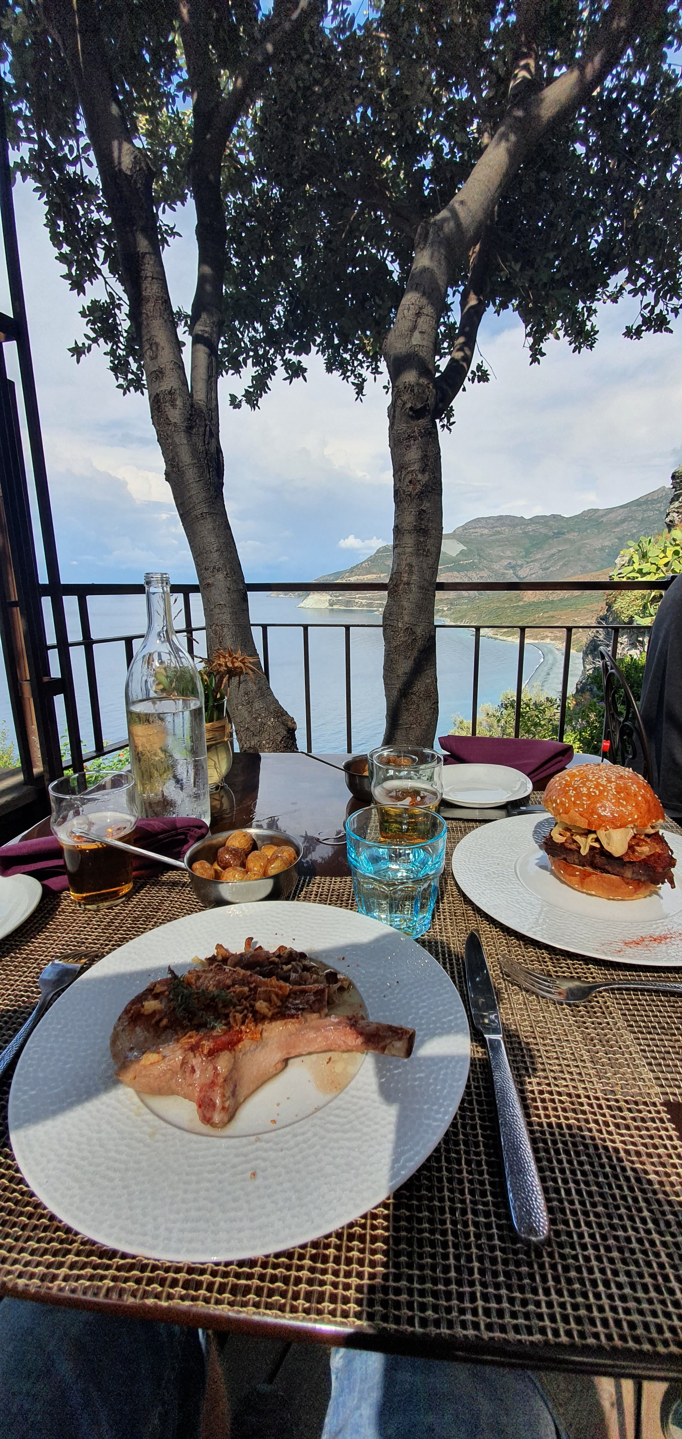 Quelle belle découverte ! Superbe endroit, magnifiquement situé bien sûr mais également très bien agencé avec plusieurs terrasses ombragées. Nous sommes arrivés dégoulinants après notre marche et habillés en tenue de sport, et pourtant nous avons été très bien accueillis. Nous n’avions pas réservé mais avons quand même pu y prendre un verre. Et quels cocktails ! Sur les conseils du serveur très sympathique, nous avons pris des cocktails aux saveurs de la région (notamment le mojito agrémenté de myrte !). Délicieux. On reviendra (en réservant, cette fois, pour dîner).