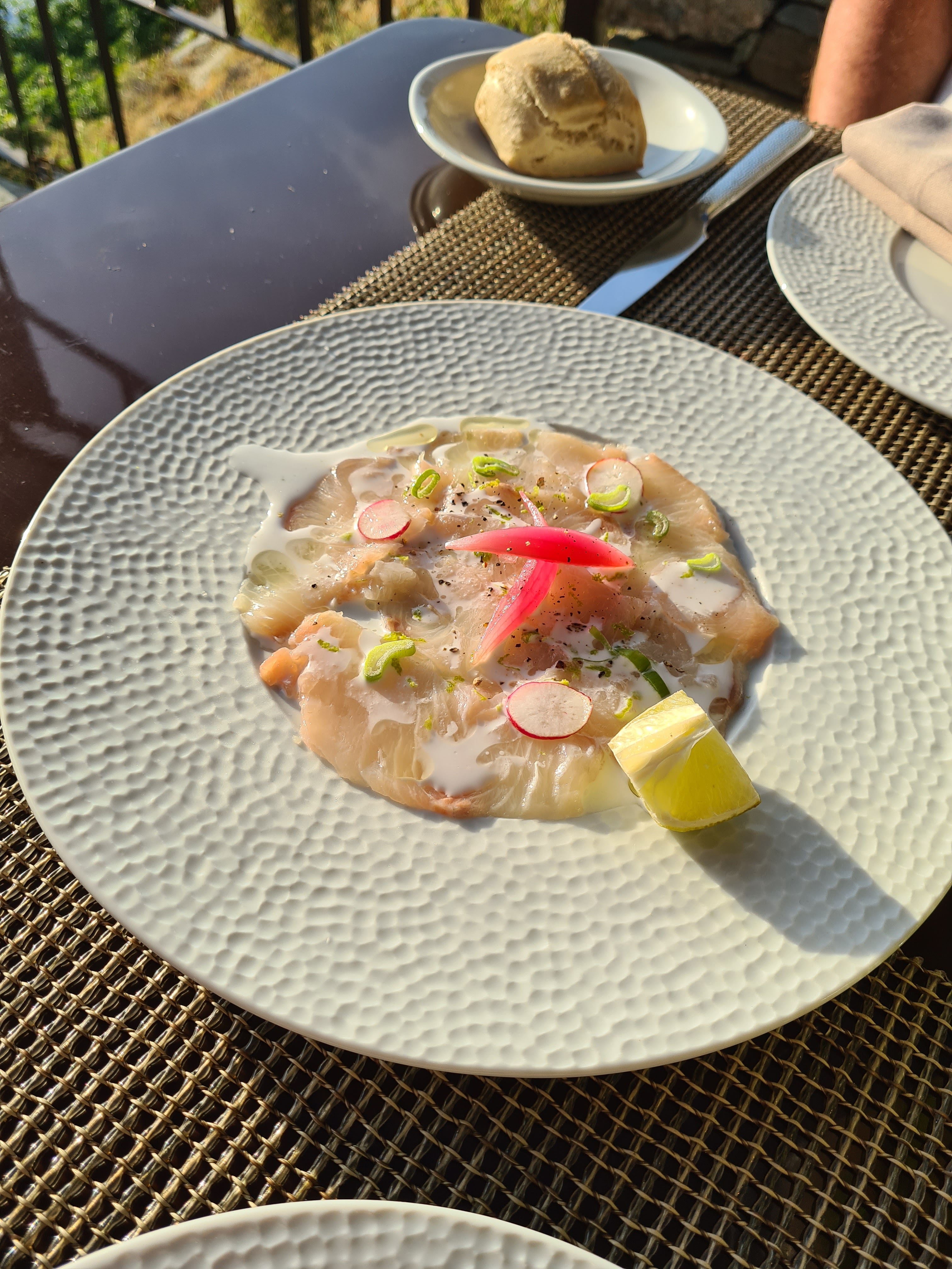 Le cadre est superbe, le personnel professionnel (merci encore Raphaëlle!) en revanche la cuisine est assez classique bien que bonne. Le scénario idéal serait pour nous : un verre à la Sassa (la vue est d’ailleurs plus belle côté drinks) et un hors d’œuvre en prime mais le dîner peut se faire ailleurs.
