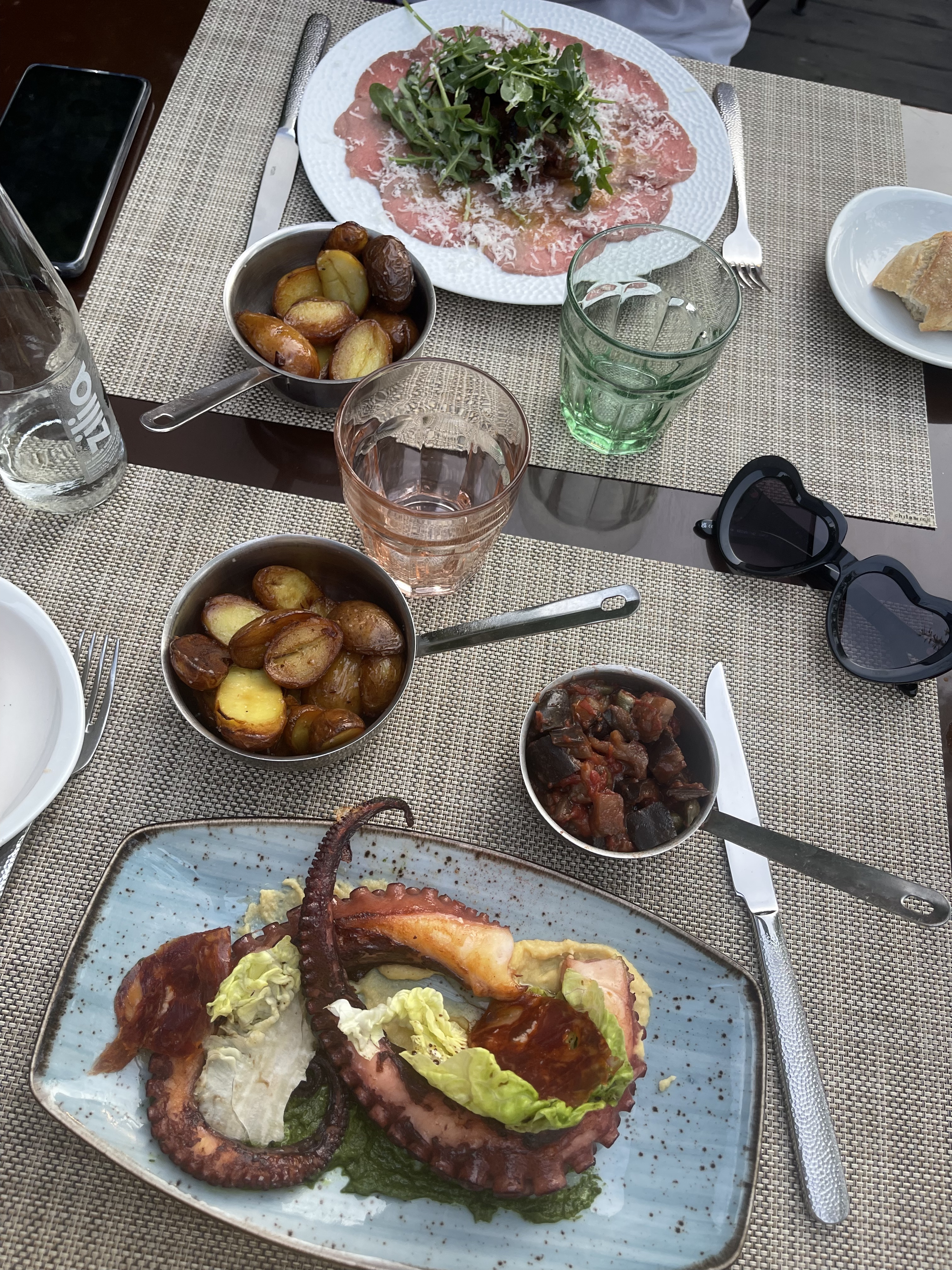 Pas des photos des plats, mais rien que pour la vue c'est endroit mérite le déplacement, attention pas mal d'escaliers, donc prévoyez des hommes forts pour porter des poussettes ! Sinon plat correct, prix un chouilla plus cheros que ailleurs mais cela reste abordable