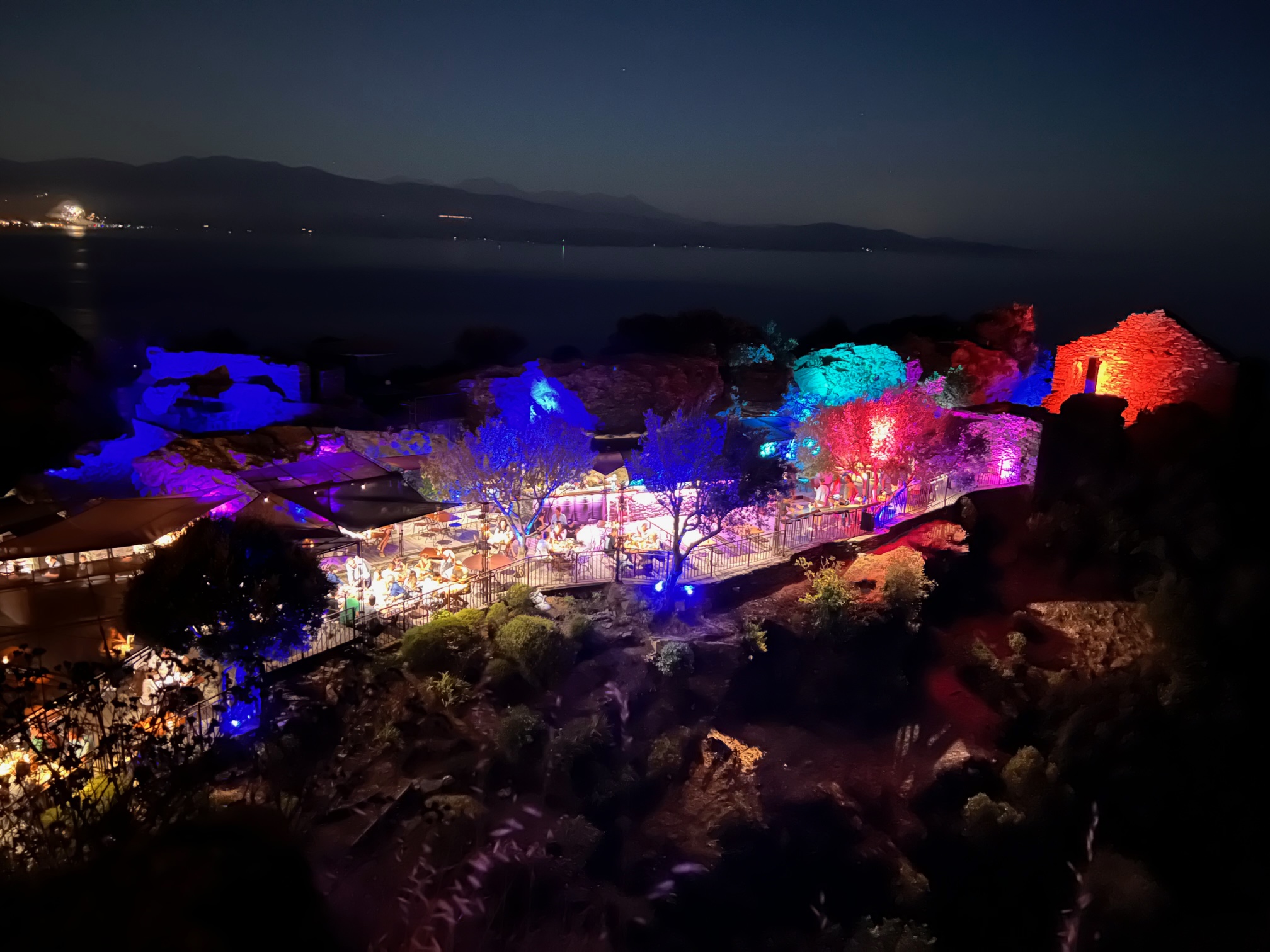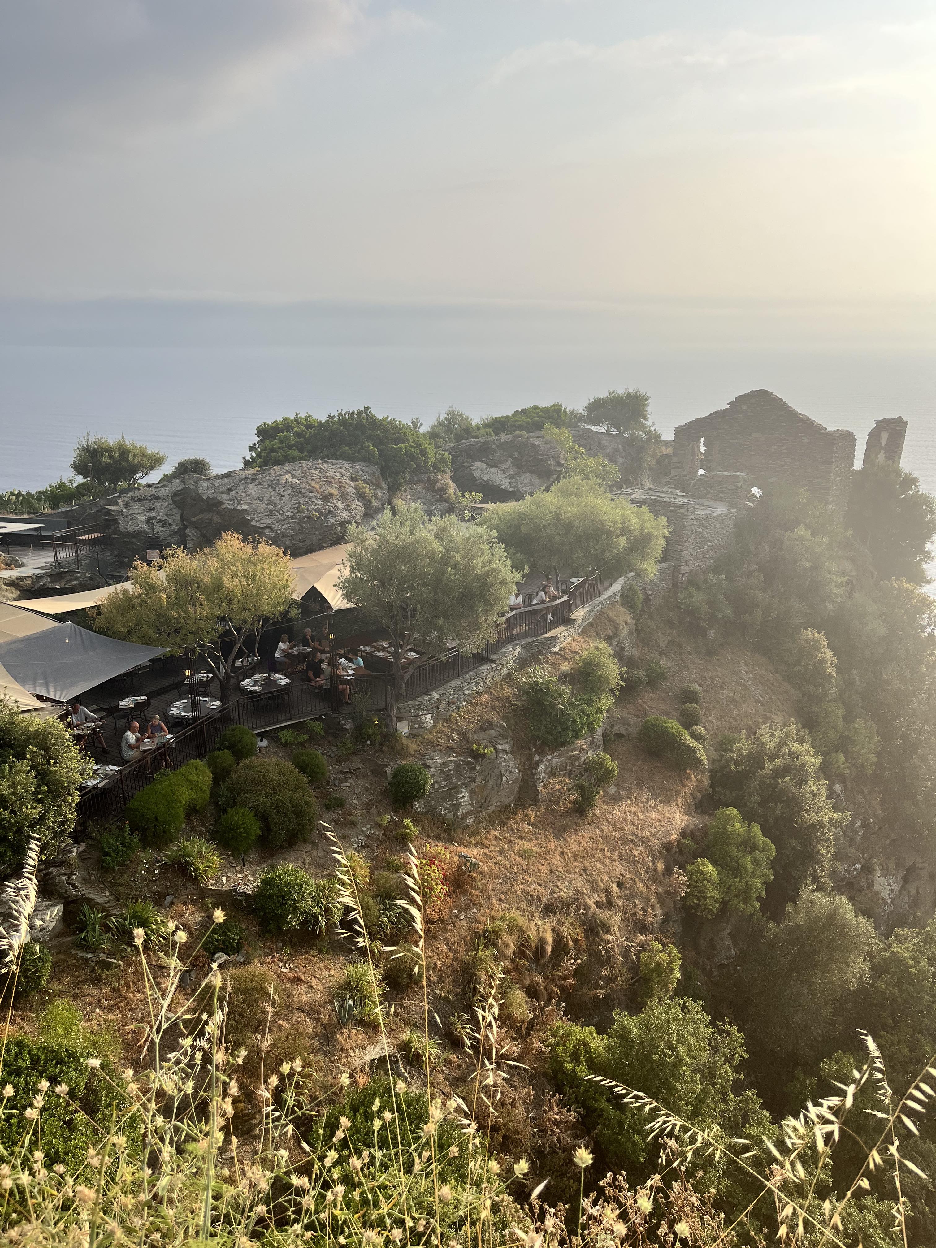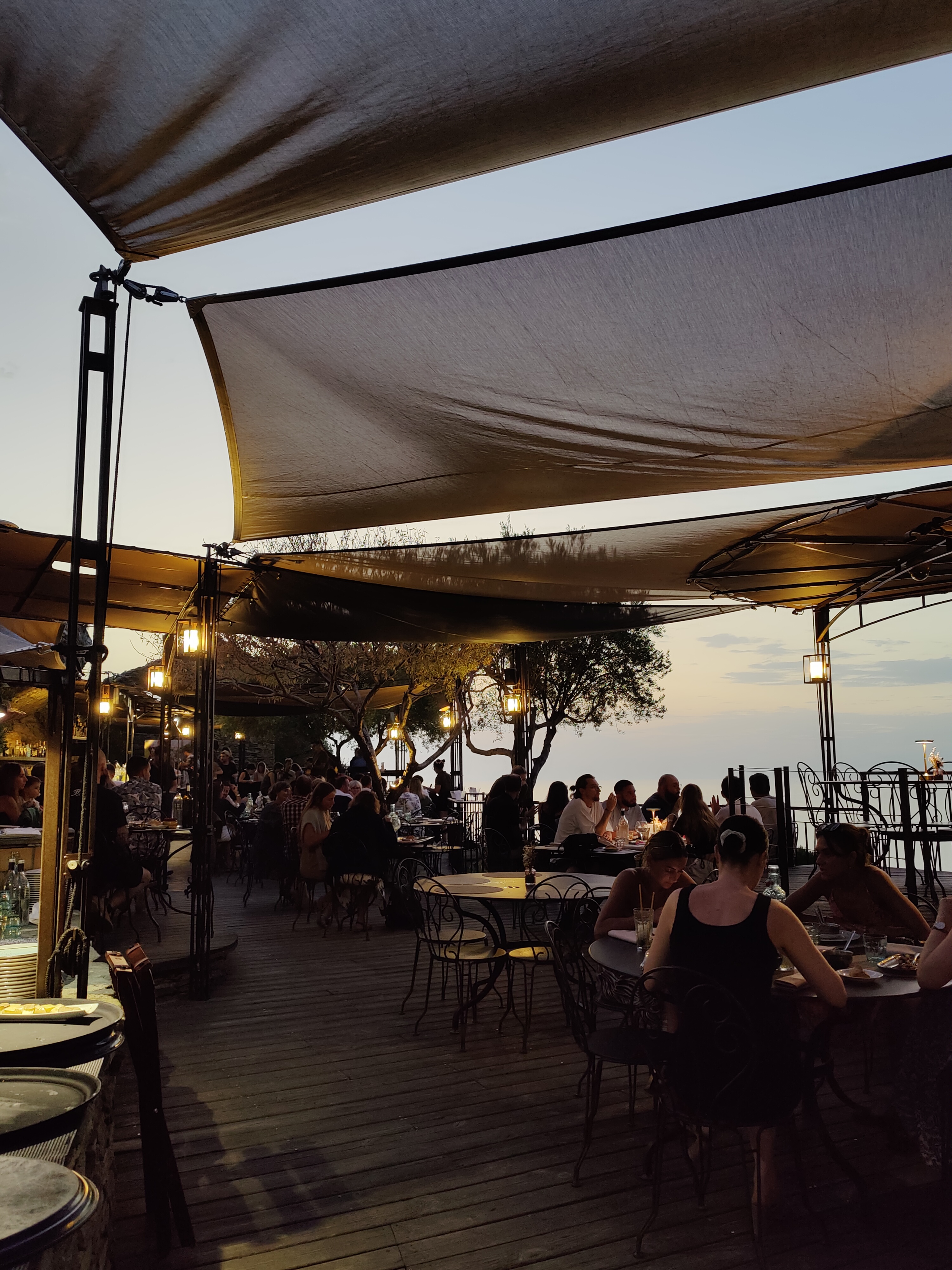 Restaurant très bien situé, sur les hauteurs avec une vue magnifique sur la mer. Je conseille d'y aller le soir pour voir le coucher du soleil (c'est magnifique !) Peu de plats présents sur la carte mais ils sont bons. Par contre les prix sont très élevés (vous acheter clairement le cadre) ! Attention on vous proposera directement de l'eau en bouteille (6€ la bouteille.....), on nous a même imposé une deuxième bouteille alors que la première n'était pas finie.. demandez l'eau en carafe
