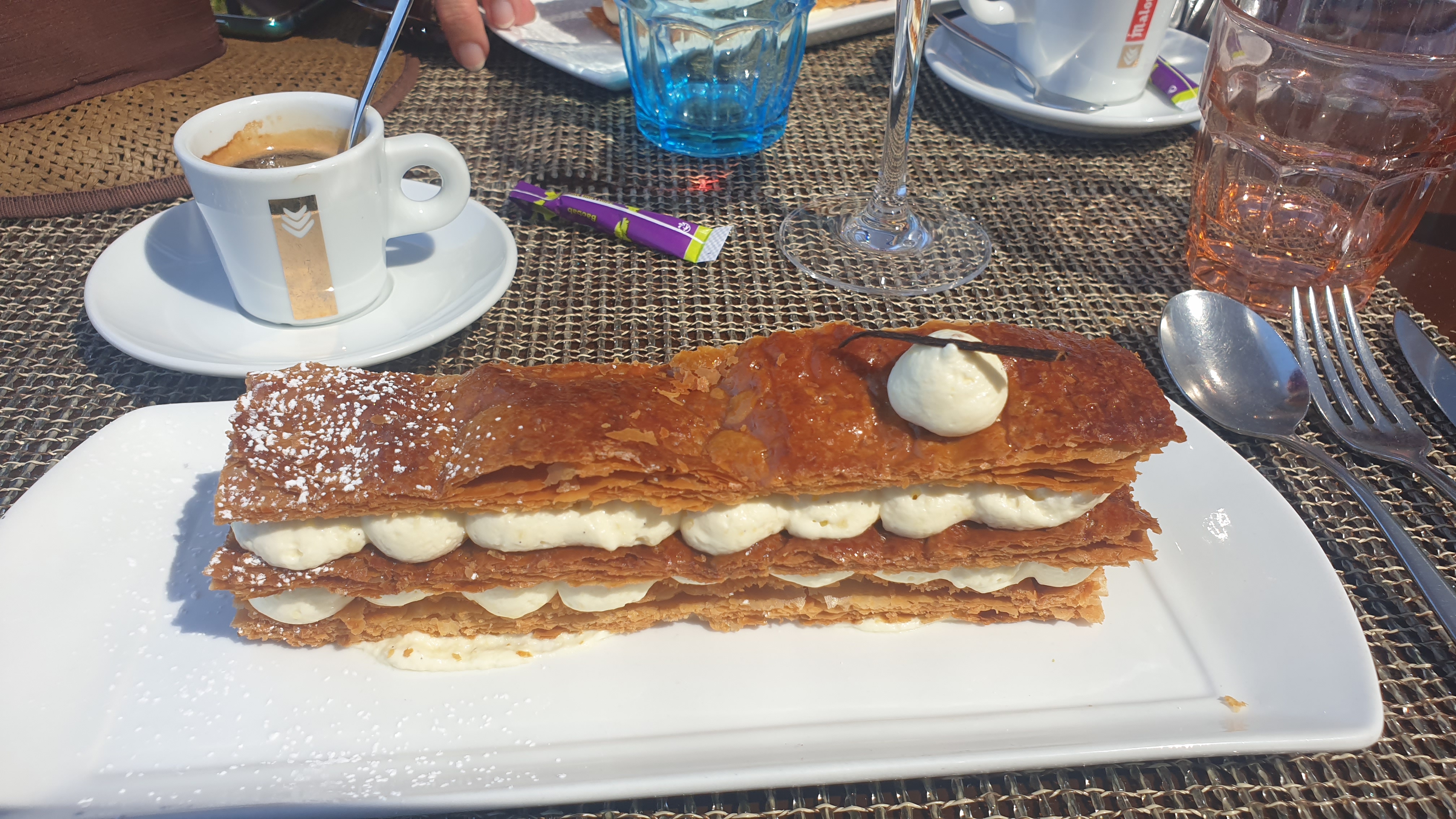 Vue incroyable plat super dessert pas bon pour le prix (milles feuilles vanille bourbon sans doute un caramel brûlé qui donnait se gout amer) Serveur très aimable