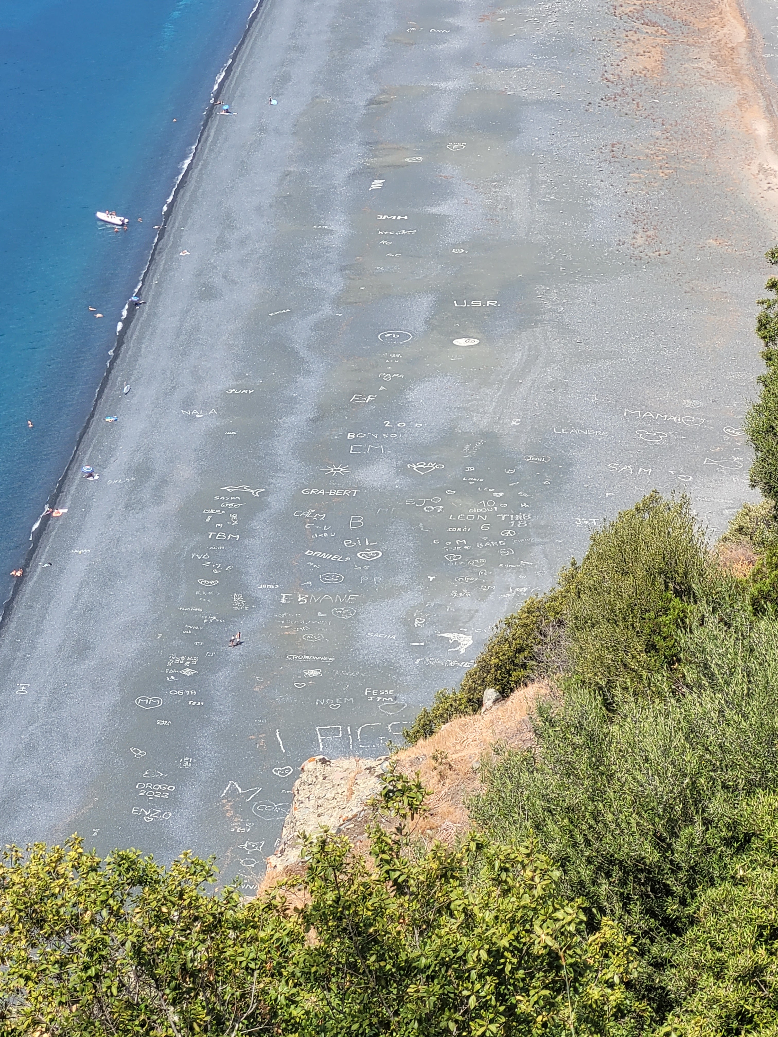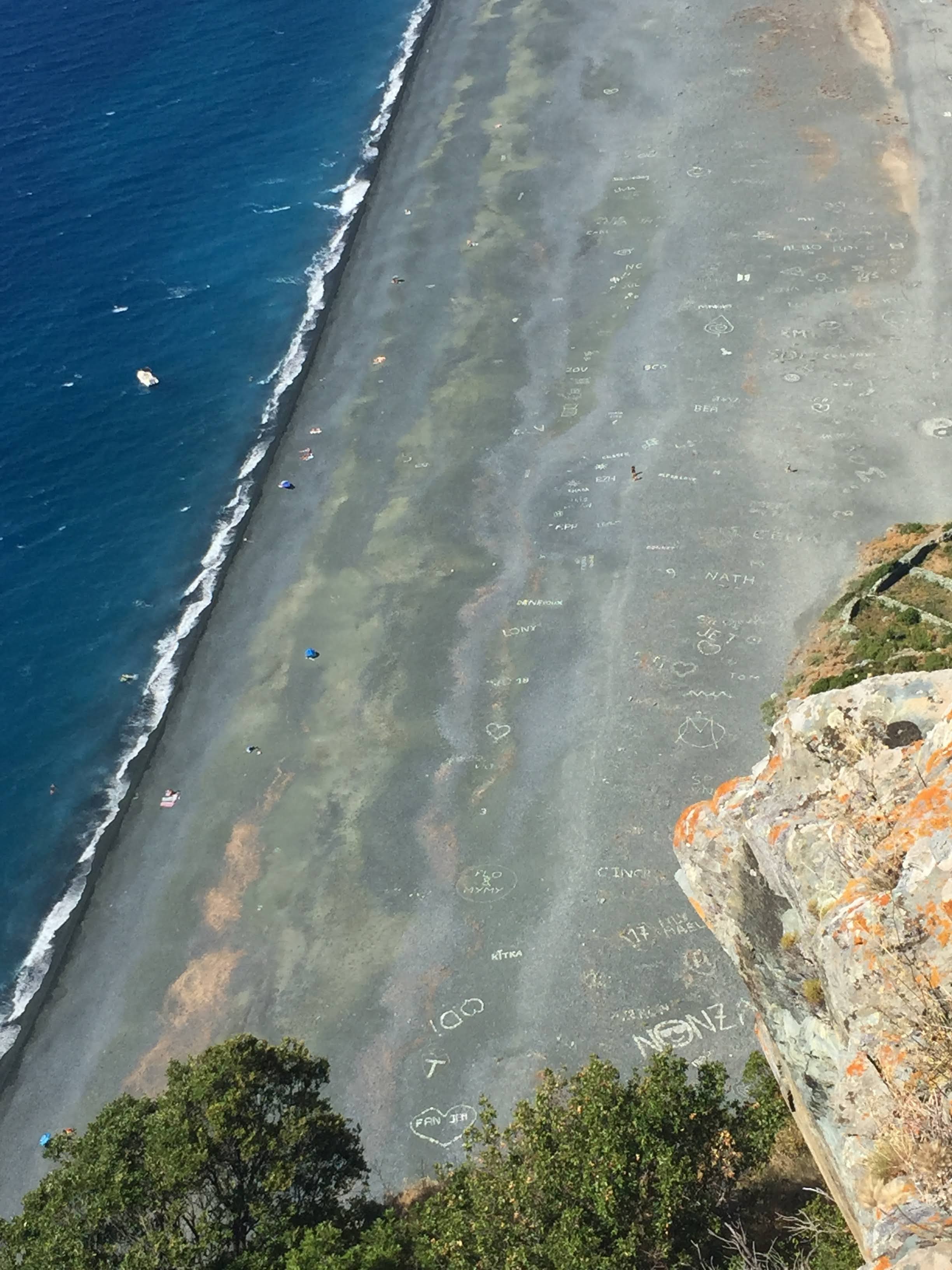 Vue sans aucune comparaison sur la plage de Nonza Sur laquelle il est possible d’apercevoir les créations en galets blancs des plagistes sur la plage de Nonza plus bas L’accueil y est chaleureux et individuel Bar tendance qui applique des prix les plus corrects Pour 7 boissons type piètra coca ou jus de fruit 28€ Possibilité de s’y restaurer soit en yaps soit en restaurant Je recommande d’y faire une halte en rentrant sur la place en face de l’église et de gravir les quelques marches afin d’atteindre le promontoire Le souci est de s’y garer car le village est étroit et ne dispose d’aucun parking
