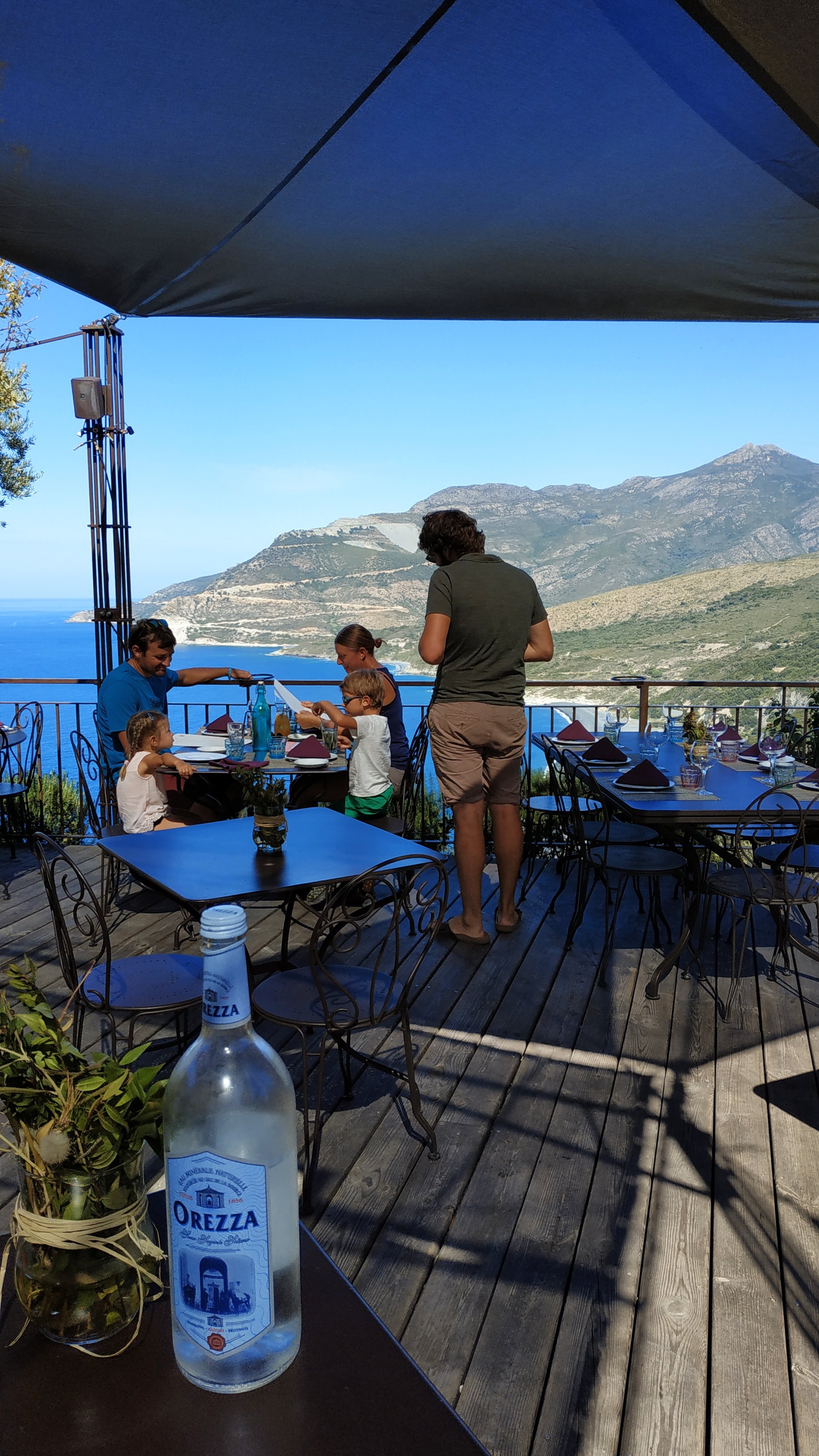 un des plus beaux resto que nous ayons fait en Corse! superbe vue sur la plage noire de Nonza et bonne cuisine. évidemment ceci ce paye mais cela vaut le coup