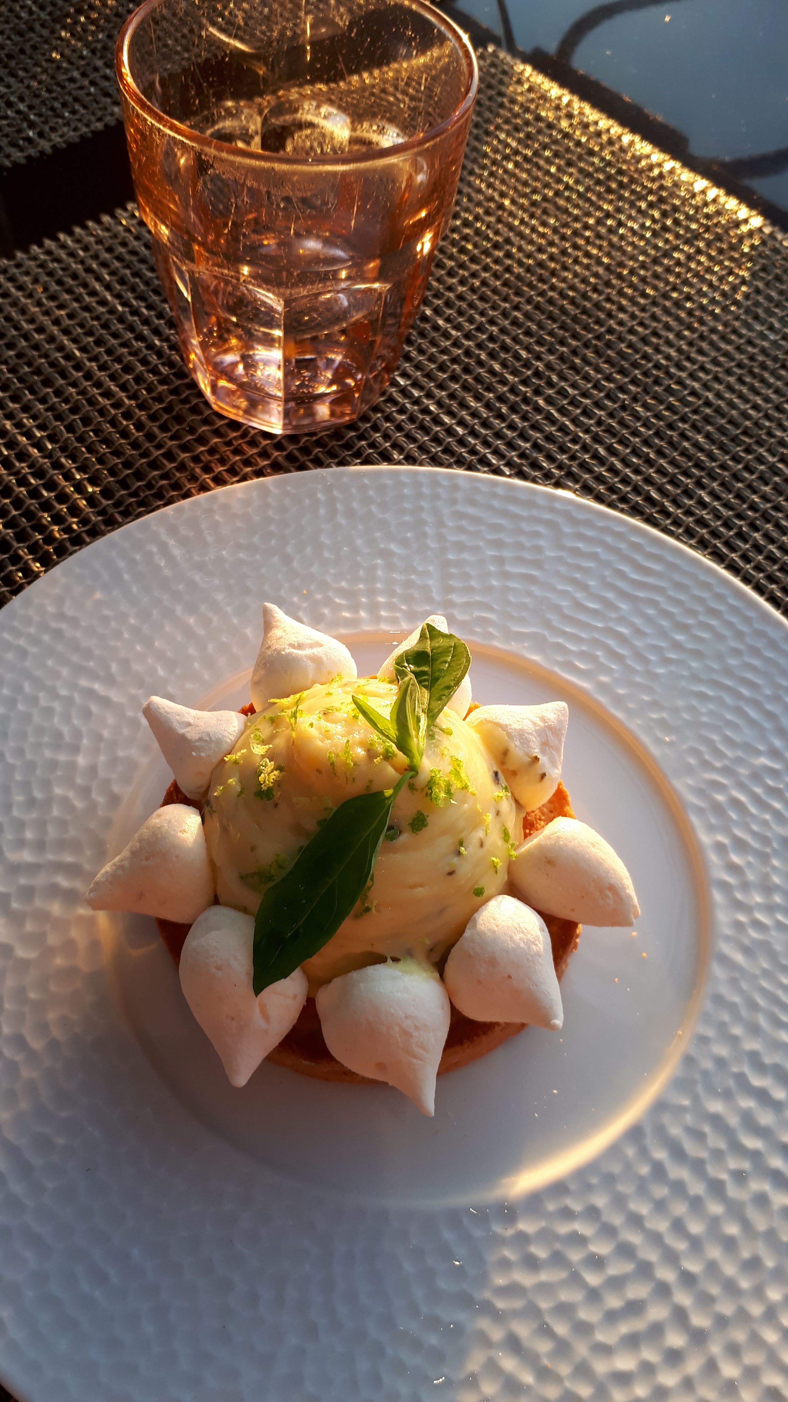 Excellent dîner au coucher du soleil. Terrasse et table très chic et élégantes. Musique d'ambiance parfaite. Cadre splendide, personnel très sympa et pro. Bravo pour la carte élaborée par le Chef Burlot. Le choix est cornélien. Nous nous régalons avec les gambas croustillantes, le tataki de thon et le burger au bœuf braisé basse température. Assiettes très copieuses. Un délice. Service impeccable. Petite caresse à Apollina qui sait se faire discrète...Pour ne pas monopoliser la table pour un second service, on nous invite avec courtoisie à passer côté bar pour terminer sans précipitation nos verres et continuer la soirée. Les prix sont raisonnables pour la qualité et la fraîcheur des plats. Génial, nous reviendrons prendre un verre et/ou manger sans aucun doute. Merci pour cette charmante soirée. Seul bémol indépendant de leur volonté nous avons failli annuler à la dernière minute après avoir tourné 40 min pour trouver une place...ouf!