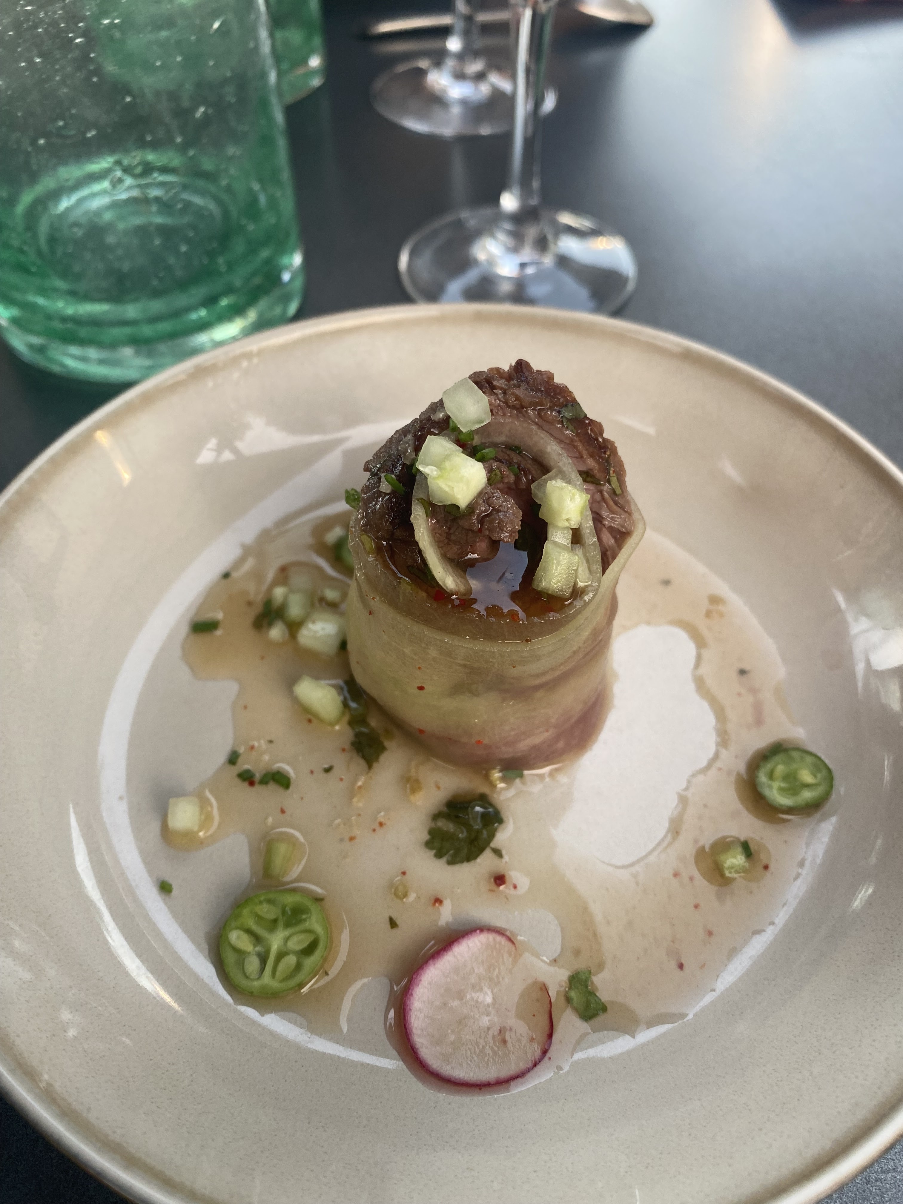 J'adore l'utilisation d'ingrédients locaux et de belles assiettes - un excellent amuse-bouche avec de superbes vues, un personnel agréable
