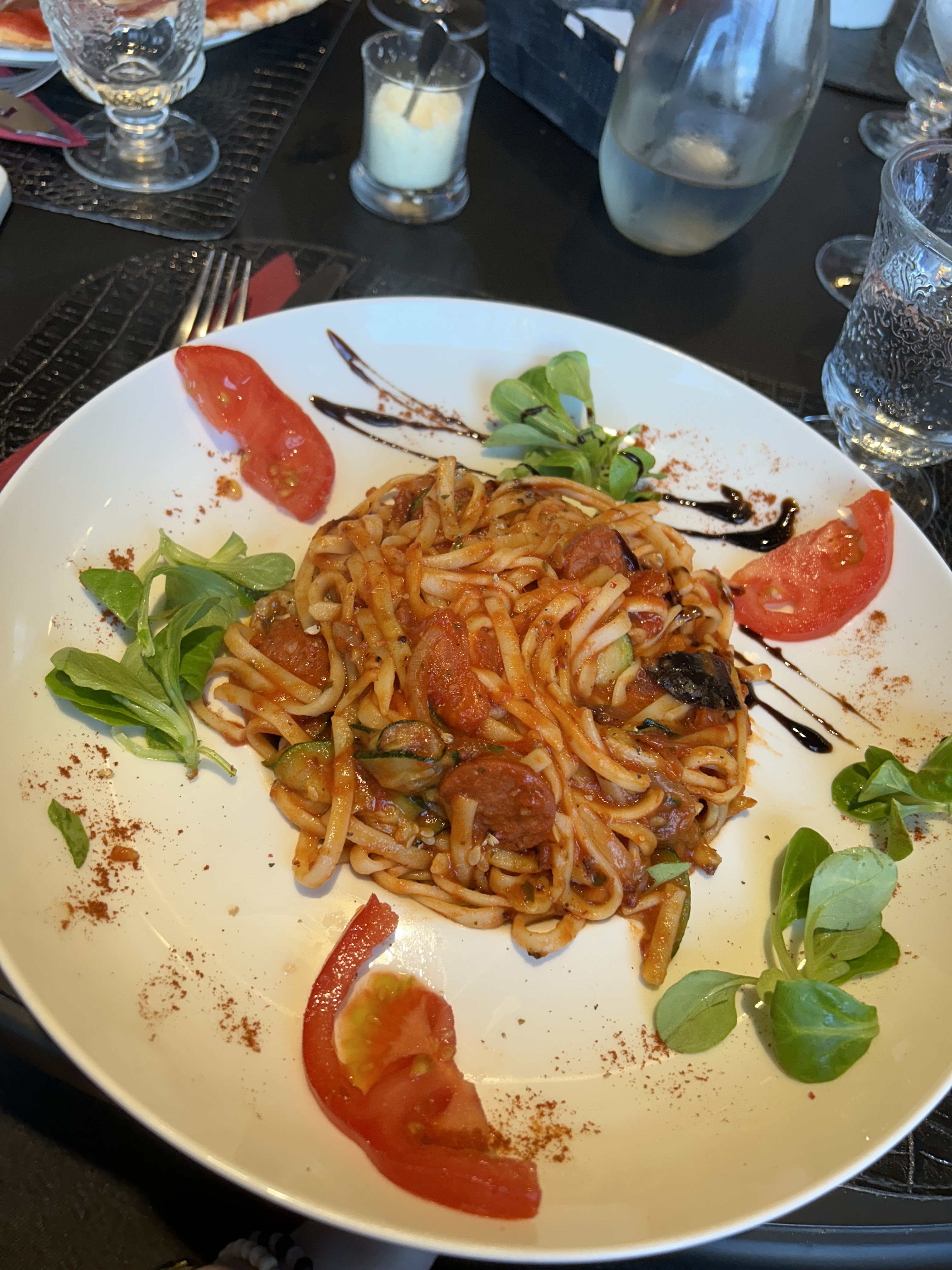 Dans ce restaurant il y a l'assiette et de ce côté les pizzas sont vraiment très au dessus de la meilleure moyenne : pâtes fines, parfaitement cuites, garnitures avec des produits frais de très bonne qualité. PAs de chichis si vous souhaitez une composition arrangée, c'est facile et avec le sourire. Et puis il y a le service, accueillant, très attentif et soucieux de votre confort sans être pesant et des attentions généreuses aussi avec le sourire. Vraiment un lieu très au dessus de ce que j'expérimente au fil de mes déplacements.